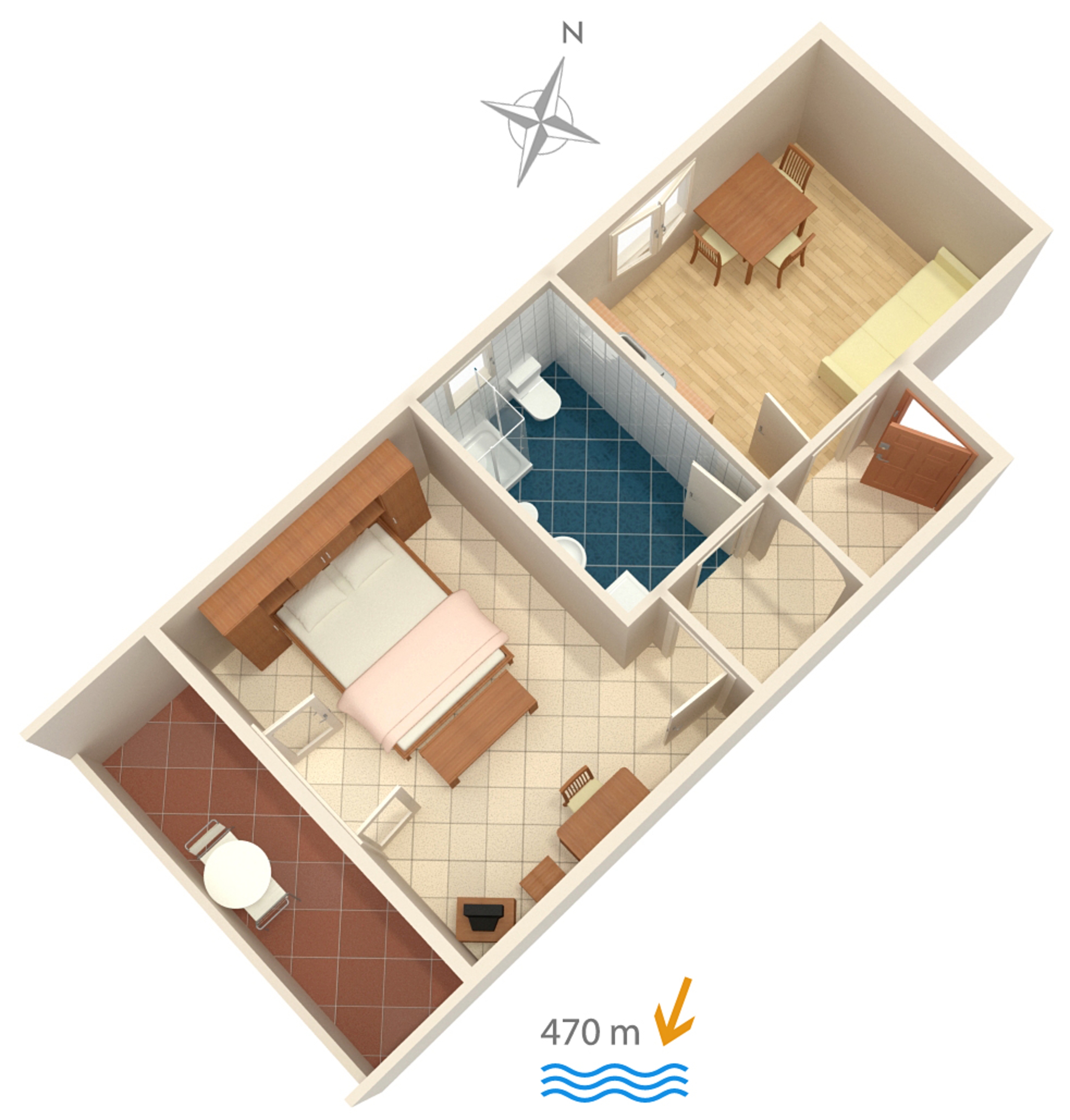 Apartament może przyjąć 2 gości. Łóżka znajdują się w sypialniach, których jest 1, na powierzchni 26m2. Goście mają dostęp do balkonu, by korzystać z ciepłych, letnich wieczorów. Z apartamentu roztacza się widok na morze. Możliwość przygotowywania posiłków poprzez korzystanie ze wspólnego grilla. WLICZONE W CENĘ: taksa pobytowa, sprzątanie końcowe, klimatyzacja, parking, internet. OBOWIĄZKOWE KOSZTY DODATKOWE: dopłata za krótki termin (procent dopłaty w zalezności od liczby noclegów: 30% - 1, 20% - 2, 10% - 3). NIEOBOWIĄZKOWE KOSZTY DODATKOWE: pranie bielizny (5,00 € pranie). Dostępność dodatkowych usług w rezerwowanym terminie oraz ich cenę (jeśli nie jest podana) należy sprawdzić wcześniej. Za dodatowe usługi, które nie zostały uwzględnione w kalkulacji ceny, płaci się bezpośrednio właścicielowi obiektu, pod warunkiem śe gość korzysta z tych usług.