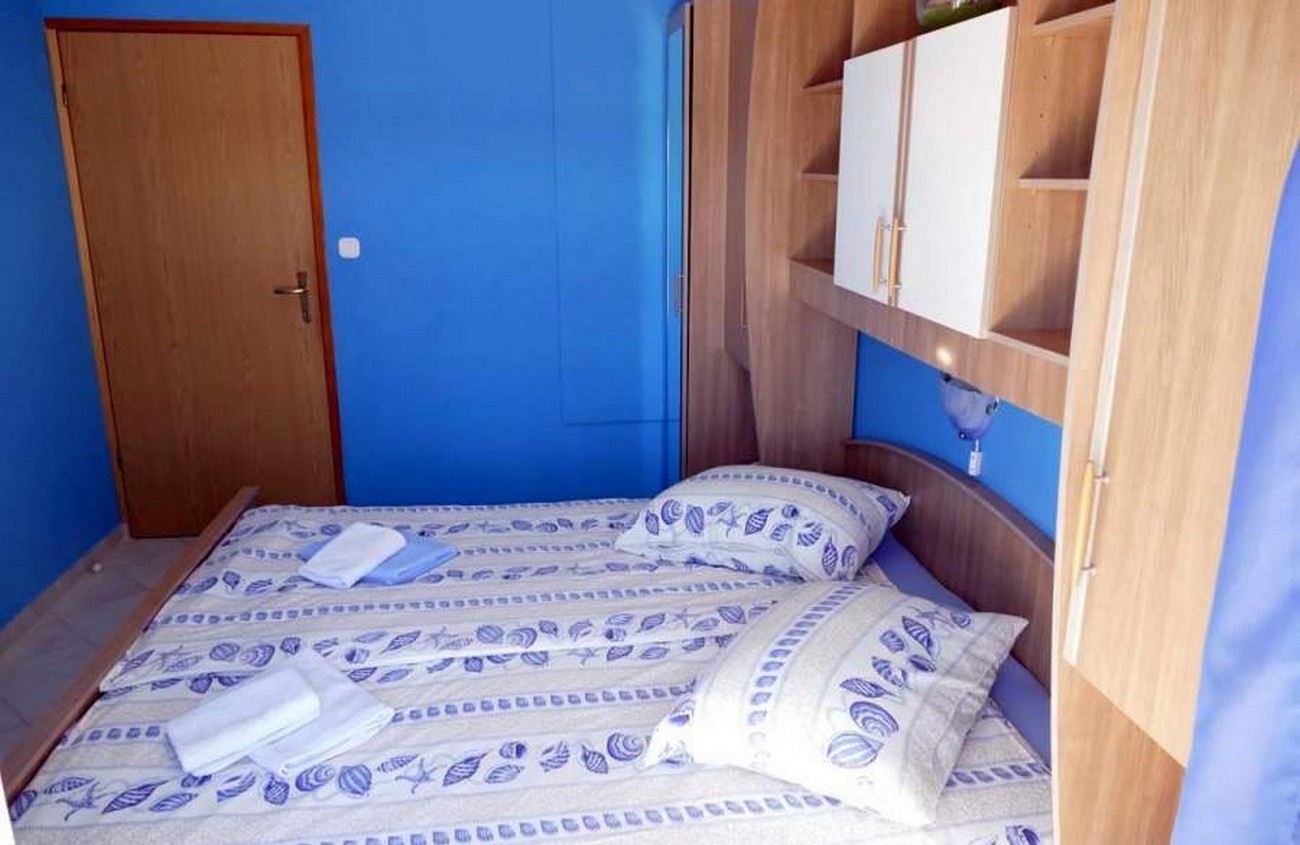 Apartament może przyjąć 5 gości. Łóżka znajdują się w sypialniach, których jest 2, oraz w pokoju dziennym, na powierzchni 80m2. Goście mają dostęp do balkonu, by korzystać z ciepłych, letnich wieczorów. Z apartamentu roztacza się widok na morze. WLICZONE W CENĘ: taksa pobytowa, sprzątanie końcowe, klimatyzacja, parking, internet. OBOWIĄZKOWE KOSZTY DODATKOWE: dopłata za krótki termin (procent dopłaty w zalezności od liczby noclegów: 30% - 1, 20% - 2, 10% - 3). NIEOBOWIĄZKOWE KOSZTY DODATKOWE: miejsce do cumowania łodzi (5,00 € za nocleg). Dostępność dodatkowych usług w rezerwowanym terminie oraz ich cenę (jeśli nie jest podana) należy sprawdzić wcześniej. Za dodatowe usługi, które nie zostały uwzględnione w kalkulacji ceny, płaci się bezpośrednio właścicielowi obiektu, pod warunkiem śe gość korzysta z tych usług.