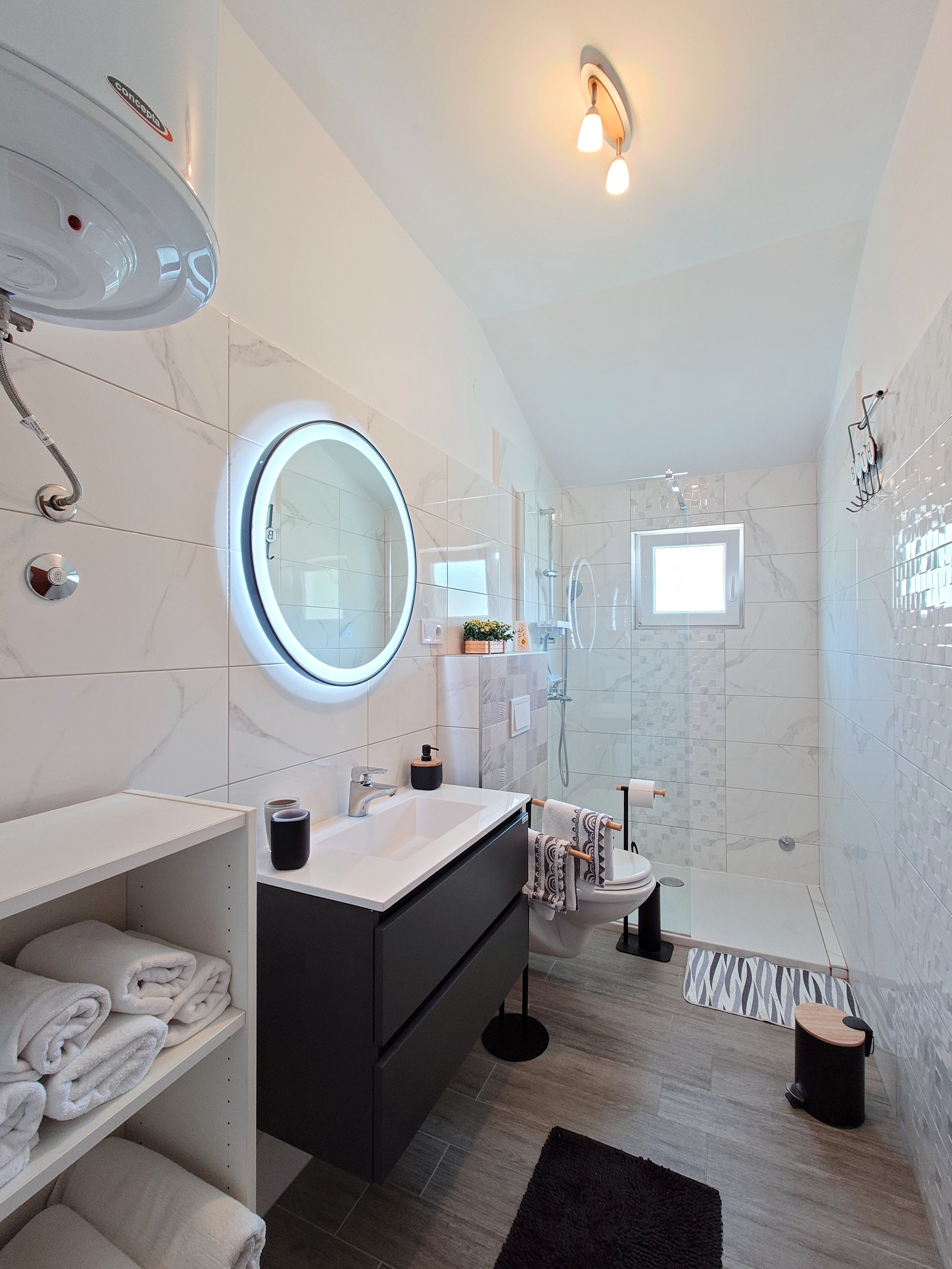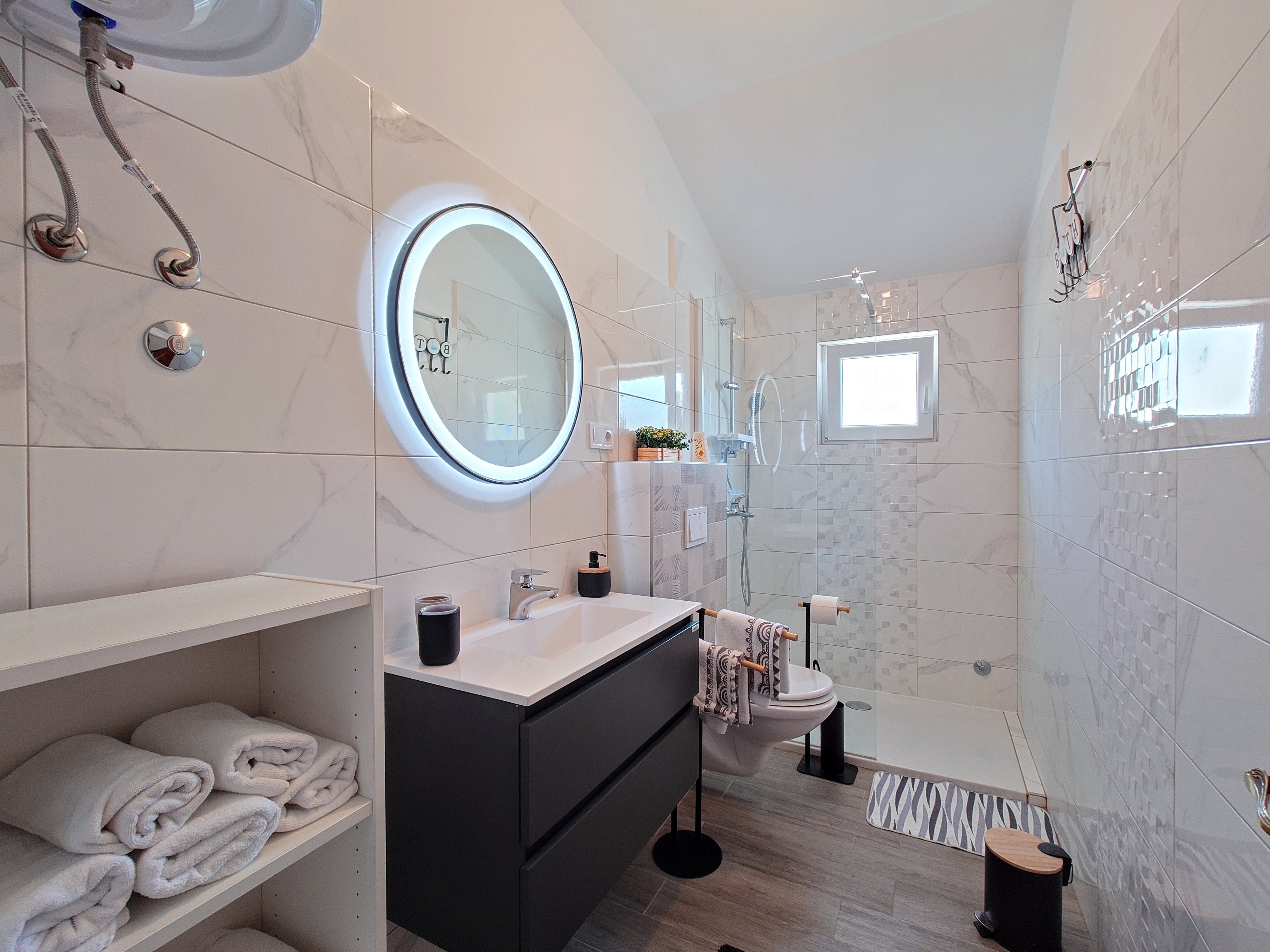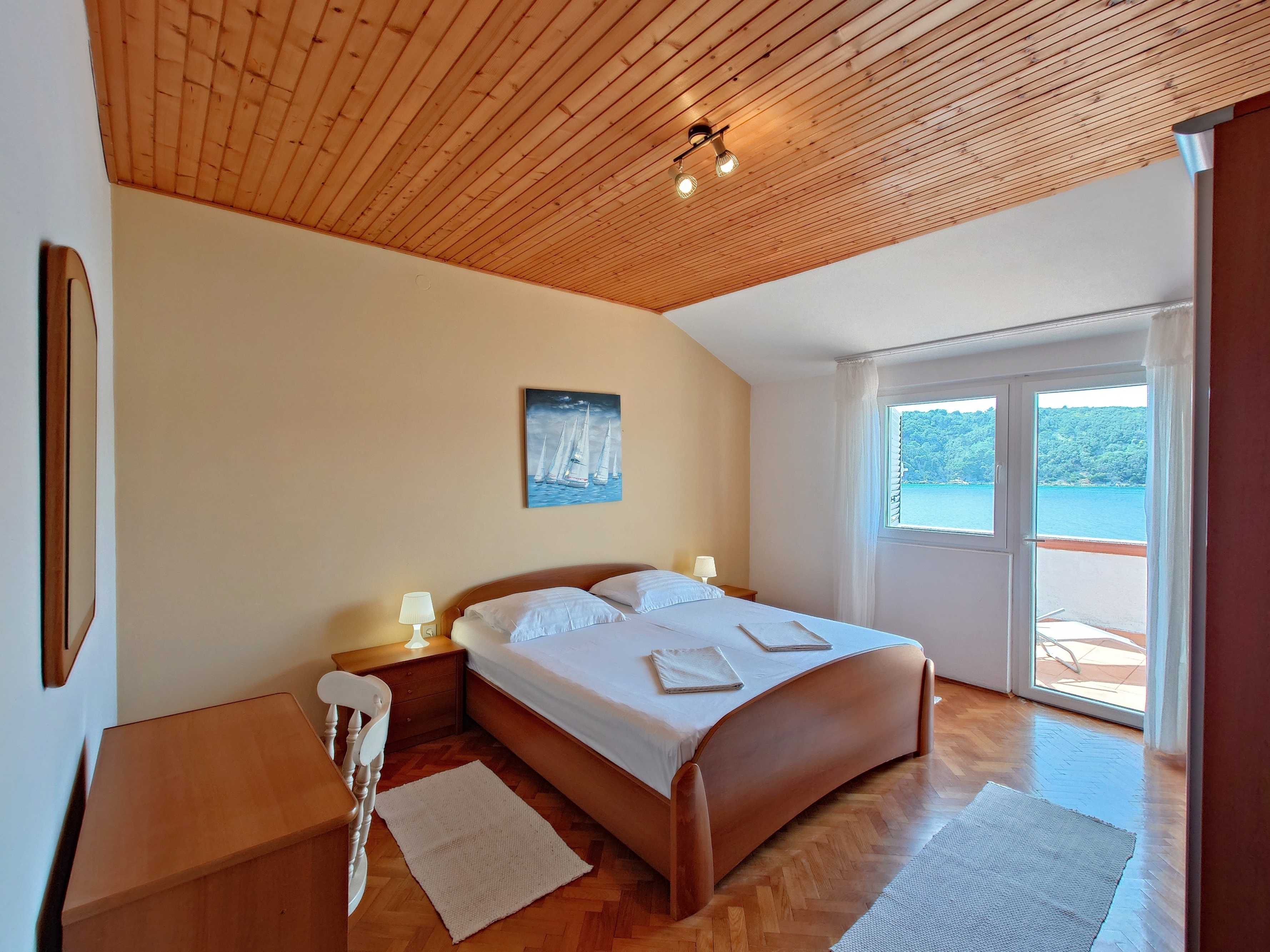 Apartament może przyjąć 4 gości. Łóżka znajdują się w sypialniach, których jest 1, oraz w pokoju dziennym, na powierzchni 60m2. Goście mają dostęp do tarasu, by korzystać z ciepłych, letnich wieczorów. Z apartamentu roztacza się widok na morze. Możliwość przygotowywania posiłków poprzez korzystanie ze wspólnego grilla. WLICZONE W CENĘ: taksa pobytowa, sprzątanie końcowe, klimatyzacja, centralne ogrzewanie, parking, internet, suszarka do włosów. OBOWIĄZKOWE KOSZTY DODATKOWE: dopłata za krótki termin (procent dopłaty w zalezności od liczby noclegów: 30% - 1, 20% - 2, 10% - 3). NIEOBOWIĄZKOWE KOSZTY DODATKOWE: dostawka (6,00 € za nocleg). Dostępność dodatkowych usług w rezerwowanym terminie oraz ich cenę (jeśli nie jest podana) należy sprawdzić wcześniej. Za dodatowe usługi, które nie zostały uwzględnione w kalkulacji ceny, płaci się bezpośrednio właścicielowi obiektu, pod warunkiem śe gość korzysta z tych usług.