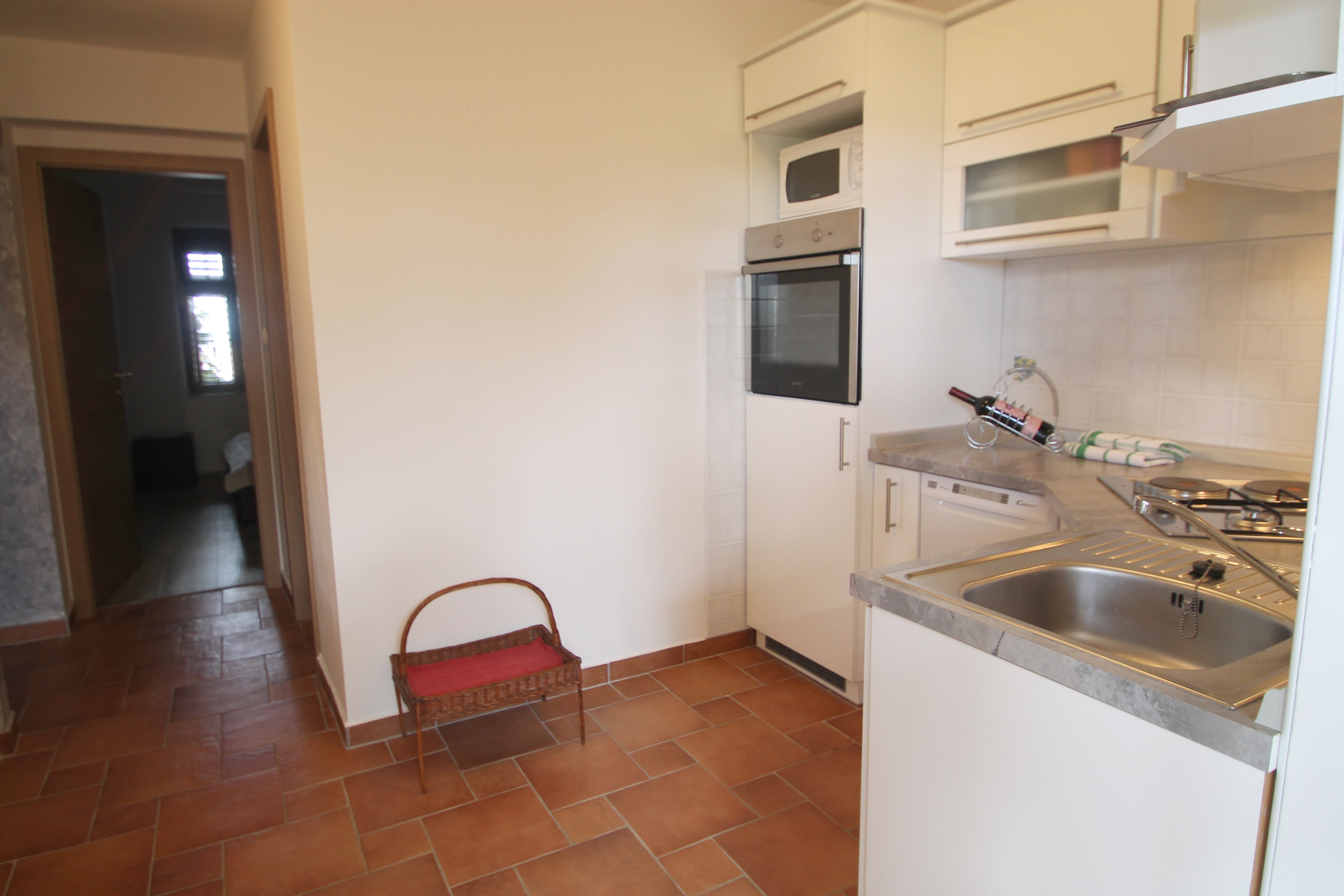 Apartament może przyjąć 5 gości. Łóżka znajdują się w sypialniach, których jest 2, oraz w pokoju dziennym, na powierzchni 60m2. Goście mają dostęp do tarasu, by korzystać z ciepłych, letnich wieczorów. Możliwość przygotowywania posiłków poprzez korzystanie ze wspólnego grilla. W trakcie swojego pobytu goście mogą korzystać ze wspólnego basenu. W kwaterze dozwolony jest pobyt zwierzęcia domowego, za dopłatą. WLICZONE W CENĘ: taksa pobytowa, sprzątanie końcowe, klimatyzacja, basen, parking, internet, pranie bielizny, łóżeczko dziecięce, żelazko, suszarka do włosów. NIEOBOWIĄZKOWE KOSZTY DODATKOWE: zwierzęta domowe (6,00 € za nocleg), dostawka (15,00 € za nocleg). Dostępność dodatkowych usług w rezerwowanym terminie oraz ich cenę (jeśli nie jest podana) należy sprawdzić wcześniej. Za dodatowe usługi, które nie zostały uwzględnione w kalkulacji ceny, płaci się bezpośrednio właścicielowi obiektu, pod warunkiem śe gość korzysta z tych usług.