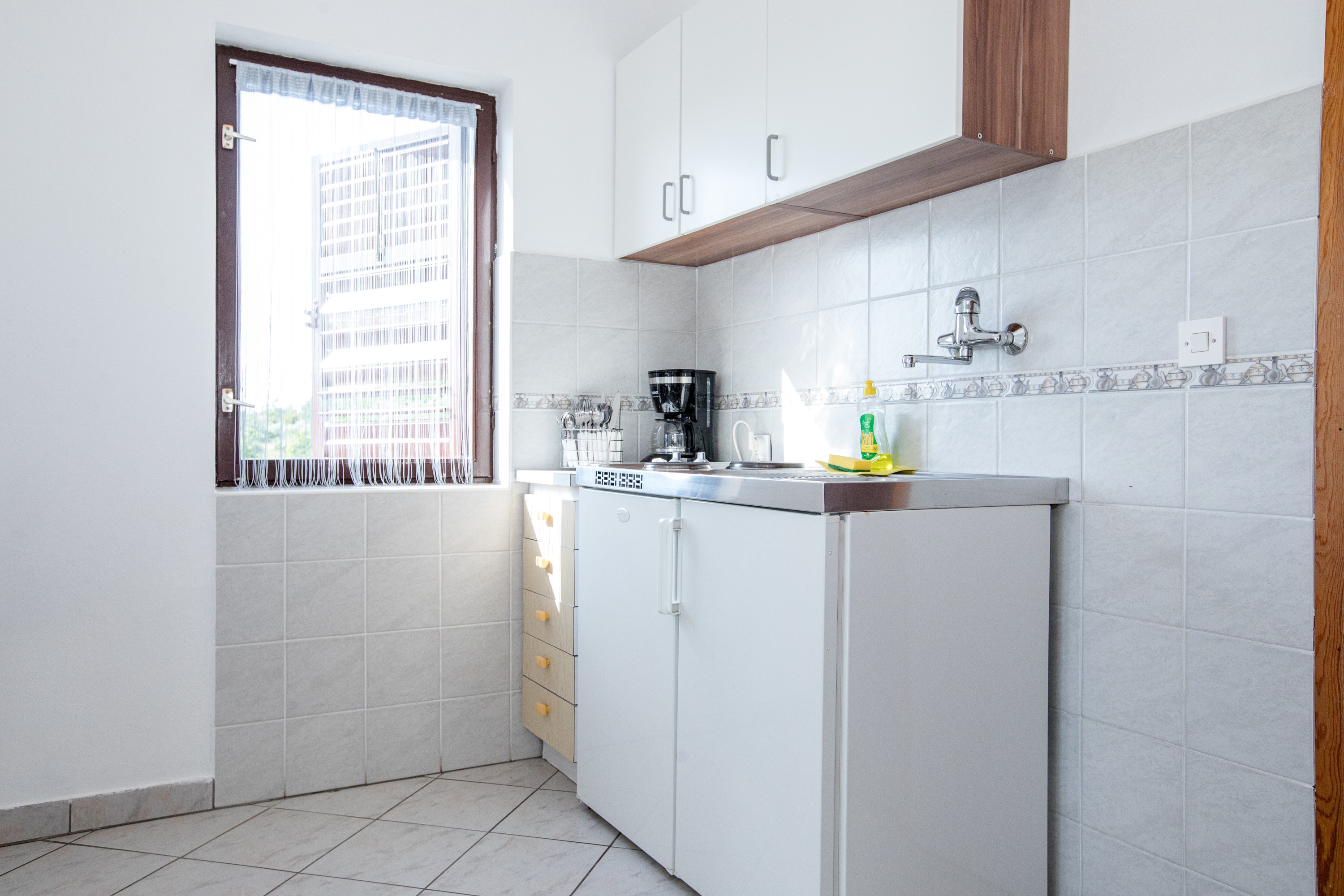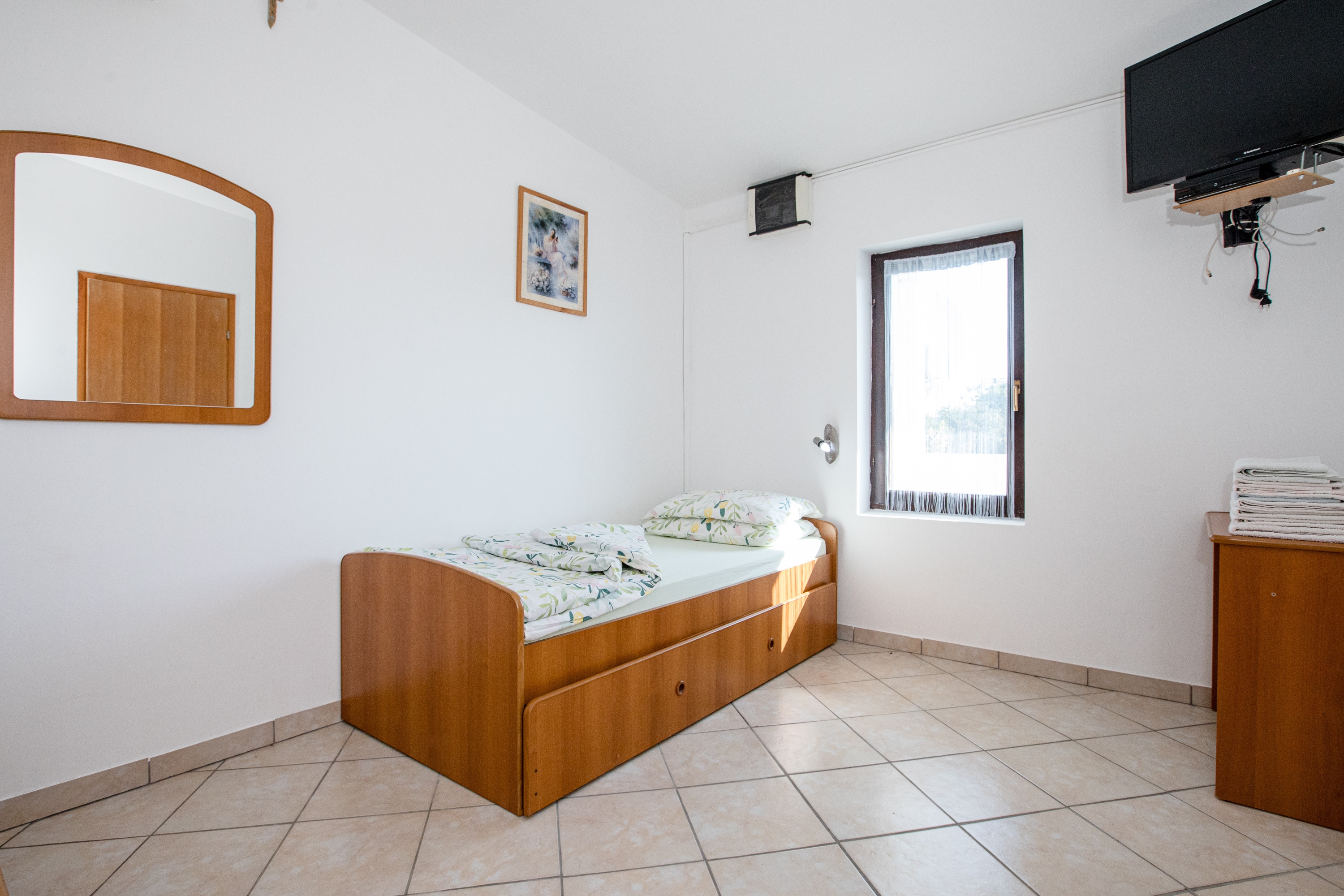 Apartament może przyjąć 4 gości. Łóżka znajdują się w sypialniach, których jest 1, na powierzchni 28m2. Z apartamentu roztacza się widok na morze. Możliwość przygotowywania posiłków poprzez korzystanie ze wspólnego grilla. W kwaterze dozwolony jest pobyt zwierzęcia domowego, za dopłatą. Rezerwowana kwatera ma balkon wspólny z inną kwaterą. WLICZONE W CENĘ: taksa pobytowa, sprzątanie końcowe, klimatyzacja, parking, internet. NIEOBOWIĄZKOWE KOSZTY DODATKOWE: zwierzęta domowe (5,00 € za nocleg). Dostępność dodatkowych usług w rezerwowanym terminie oraz ich cenę (jeśli nie jest podana) należy sprawdzić wcześniej. Za dodatowe usługi, które nie zostały uwzględnione w kalkulacji ceny, płaci się bezpośrednio właścicielowi obiektu, pod warunkiem śe gość korzysta z tych usług. Zniżki od ceny podstawowej: bezpłatny dzień 14=13 (przy pobycie, trwającym co najmniej 14 dni, otrzymujecie jeden bezpłatny dzień na pobyt do 31.12.2026).