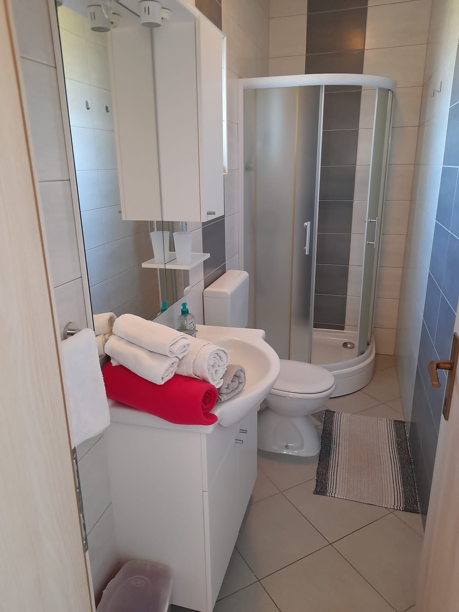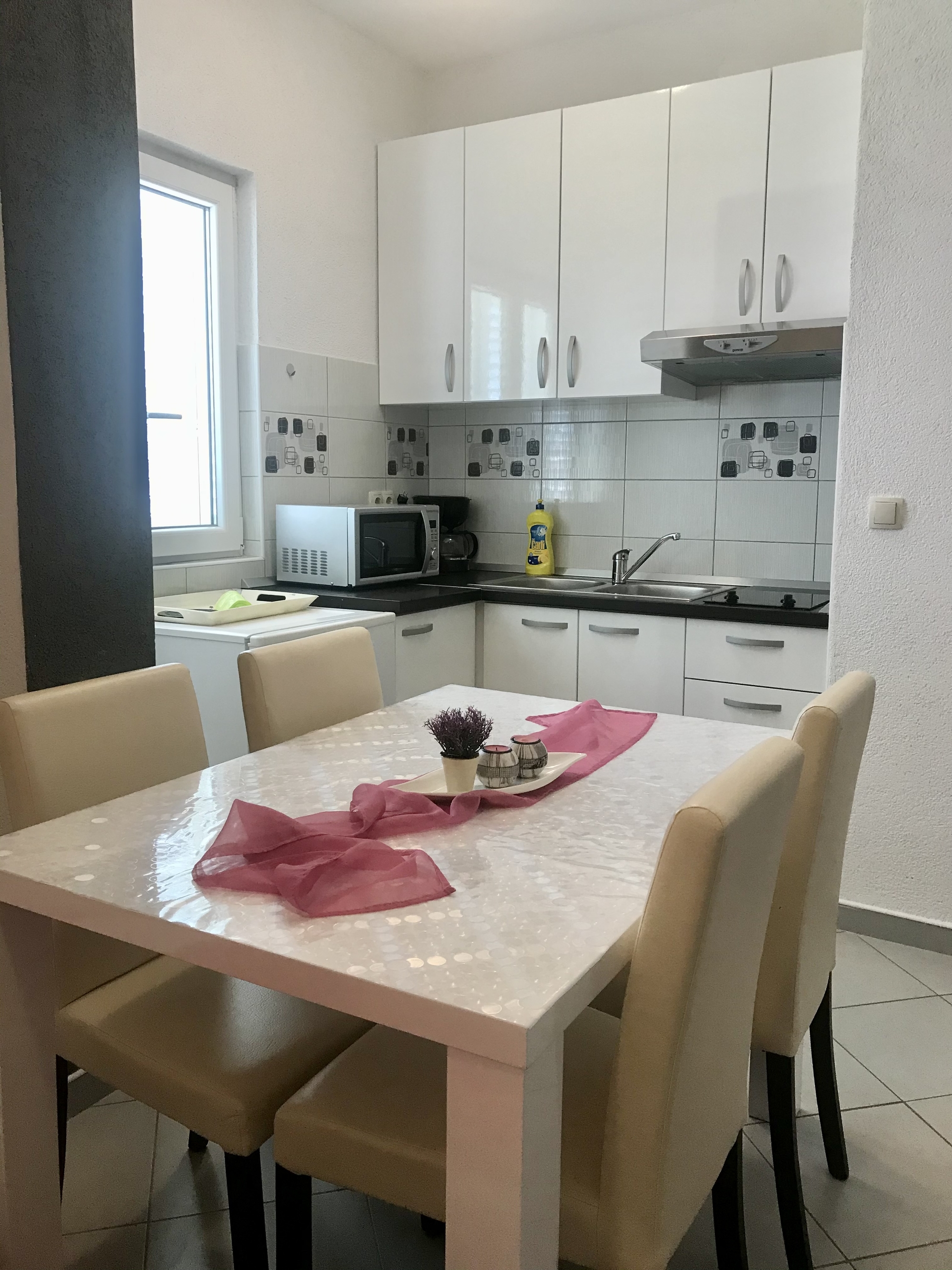 Apartament może przyjąć 3 gości. Łóżka znajdują się w sypialniach, których jest 1, oraz w pokoju dziennym, na powierzchni 30m2. Goście mają dostęp do balkonu, by korzystać z ciepłych, letnich wieczorów. Z apartamentu roztacza się widok na morze. Możliwość przygotowywania posiłków poprzez korzystanie ze wspólnego grilla. WLICZONE W CENĘ: taksa pobytowa, sprzątanie końcowe, klimatyzacja, parking, internet, łóżeczko dziecięce, żelazko, deska do prasowania. NIEOBOWIĄZKOWE KOSZTY DODATKOWE: pranie bielizny (5,00 € pranie). Dostępność dodatkowych usług w rezerwowanym terminie oraz ich cenę (jeśli nie jest podana) należy sprawdzić wcześniej. Za dodatowe usługi, które nie zostały uwzględnione w kalkulacji ceny, płaci się bezpośrednio właścicielowi obiektu, pod warunkiem śe gość korzysta z tych usług.