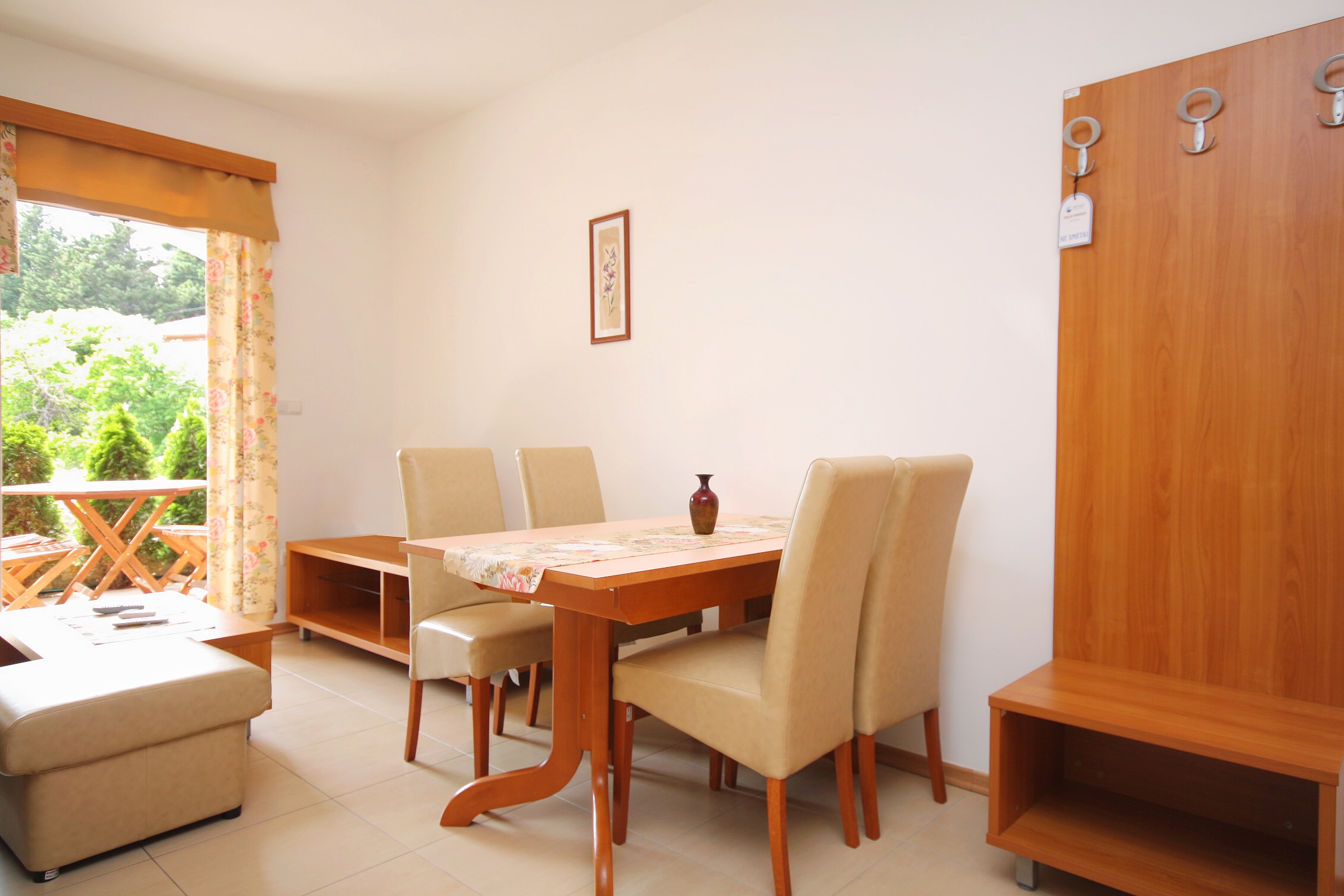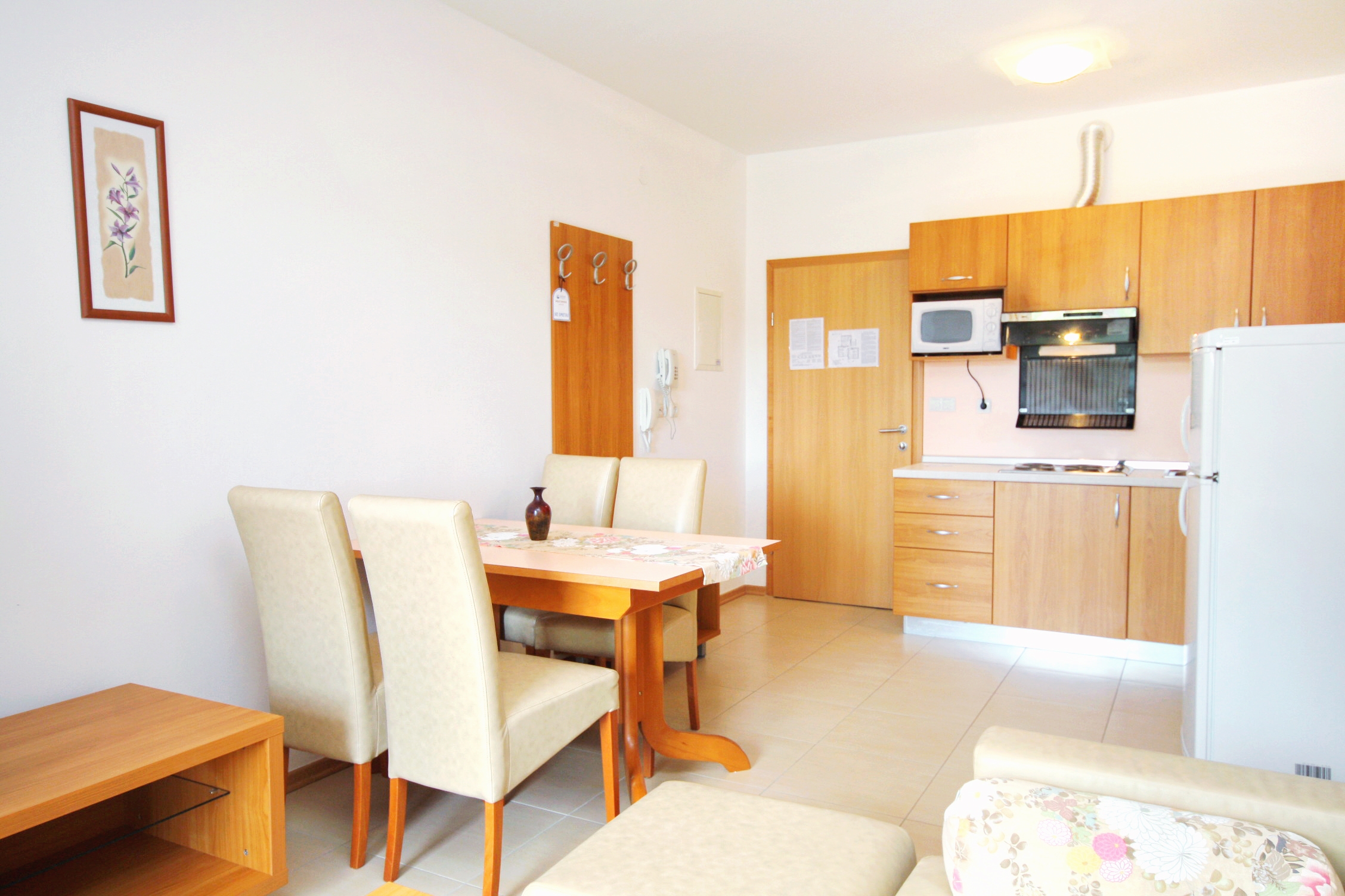 Apartament może przyjąć 4 gości. Łóżka znajdują się w sypialniach, których jest 1, oraz w pokoju dziennym, na powierzchni 33m2. Goście mają dostęp do tarasu, by korzystać z ciepłych, letnich wieczorów. Możliwość przygotowywania posiłków poprzez korzystanie ze wspólnego grilla. W trakcie swojego pobytu goście mogą korzystać ze wspólnego basenu. W rezerwowanej kwaterze na miejscu jest pobierana kaucja (jej wysokość jest podana na stronie). WLICZONE W CENĘ: sprzątanie końcowe, klimatyzacja, basen, parking, internet, suszarka do włosów. OBOWIĄZKOWE KOSZTY DODATKOWE: taksa pobytowa (dorośli 0,93 € - 1,90 € noclegosoba, zniżka dla dzieci w wieku 12 - 17 lat), depozyt (100,00 € jednorazowo). Dostępność dodatkowych usług w rezerwowanym terminie oraz ich cenę (jeśli nie jest podana) należy sprawdzić wcześniej. Za dodatowe usługi, które nie zostały uwzględnione w kalkulacji ceny, płaci się bezpośrednio właścicielowi obiektu, pod warunkiem śe gość korzysta z tych usług.
