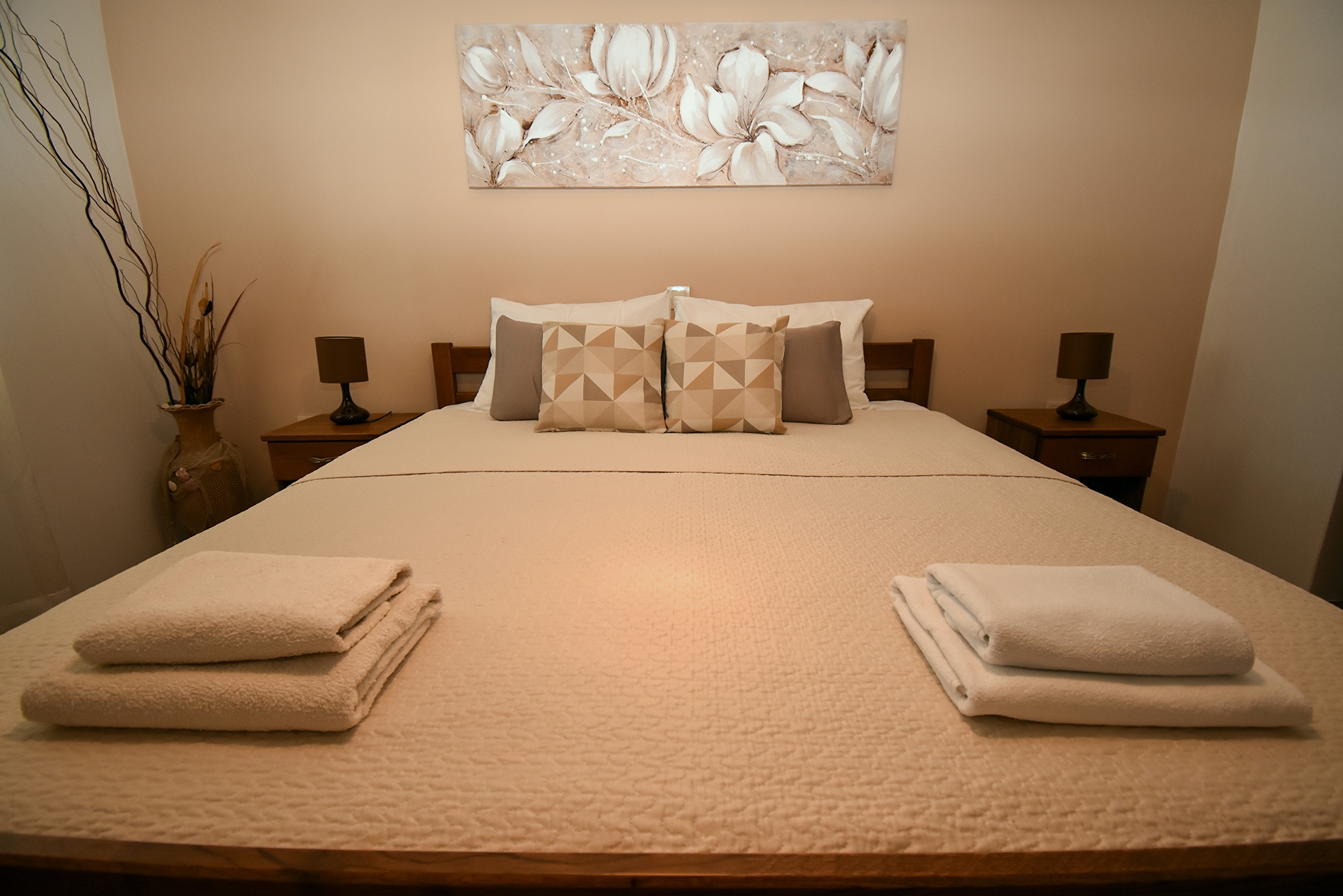 Apartament może przyjąć 6 gości. Łóżka znajdują się w sypialniach, których jest 3, na powierzchni 80m2. Goście mają dostęp do tarasu, by korzystać z ciepłych, letnich wieczorów. Grill jest dostępny tylko do użytku gości z tej kwatery. WLICZONE W CENĘ: taksa pobytowa, sprzątanie końcowe, parking, internet, żelazko, deska do prasowania, suszarka do włosów. OBOWIĄZKOWE KOSZTY DODATKOWE: dopłata za krótki termin (procent dopłaty w zalezności od liczby noclegów: 30% - 1, 20% - 2, 10% - 3). NIEOBOWIĄZKOWE KOSZTY DODATKOWE: pranie bielizny (6,00 € pranie). Dostępność dodatkowych usług w rezerwowanym terminie oraz ich cenę (jeśli nie jest podana) należy sprawdzić wcześniej. Za dodatowe usługi, które nie zostały uwzględnione w kalkulacji ceny, płaci się bezpośrednio właścicielowi obiektu, pod warunkiem śe gość korzysta z tych usług. Zniżki od ceny podstawowej: bezpłatny dzień 21=19 (przy pobycie, trwającym co najmniej 21 dni, trzymujecie dwa bezpłatne dni na pobyt do 31.12.2026).