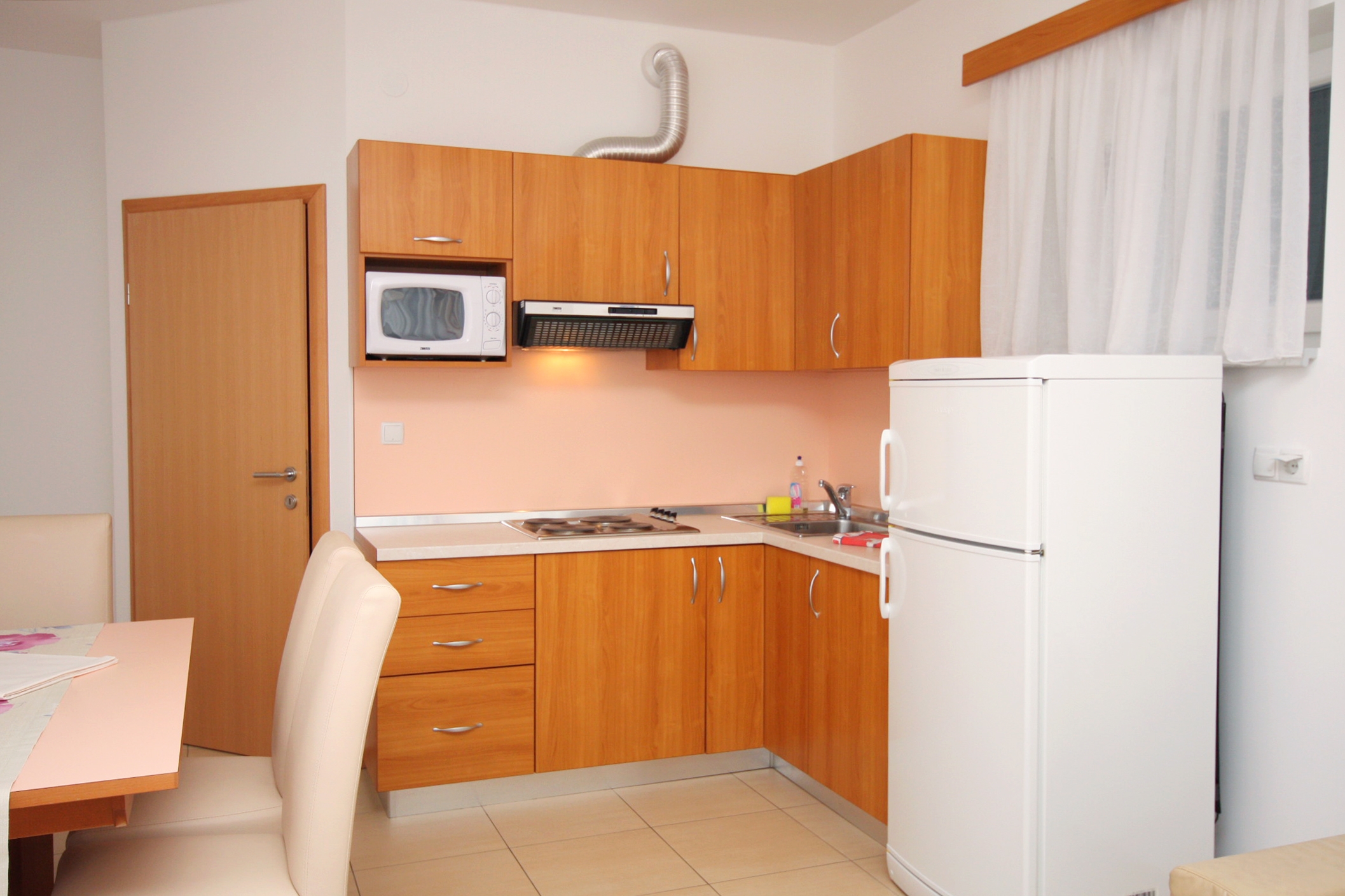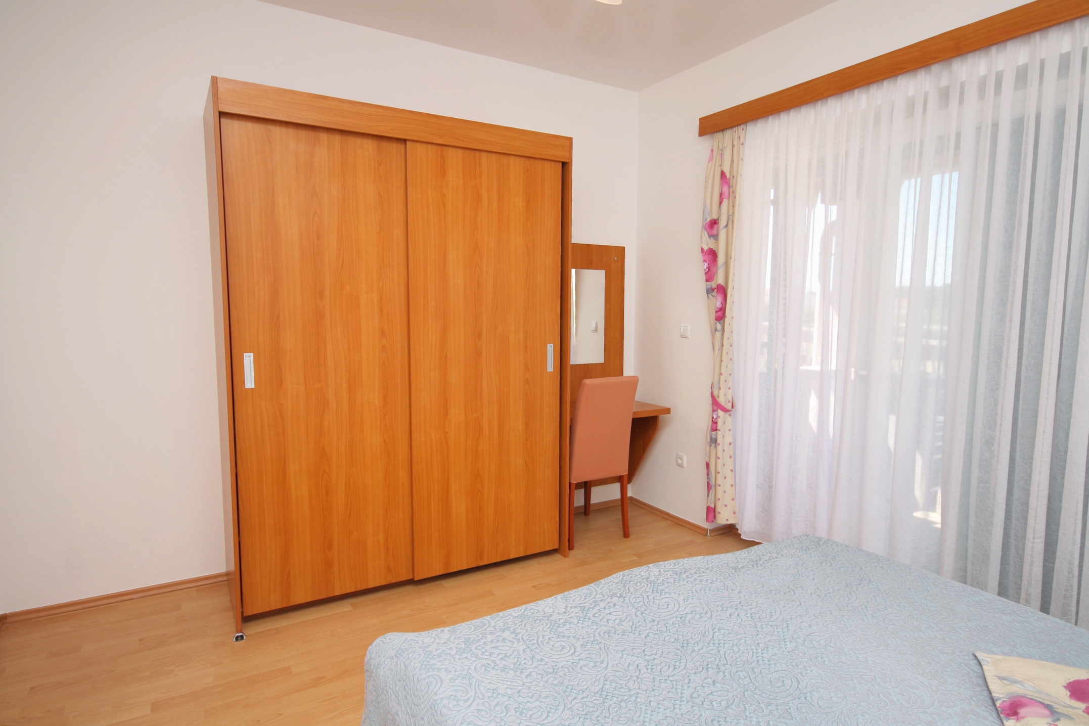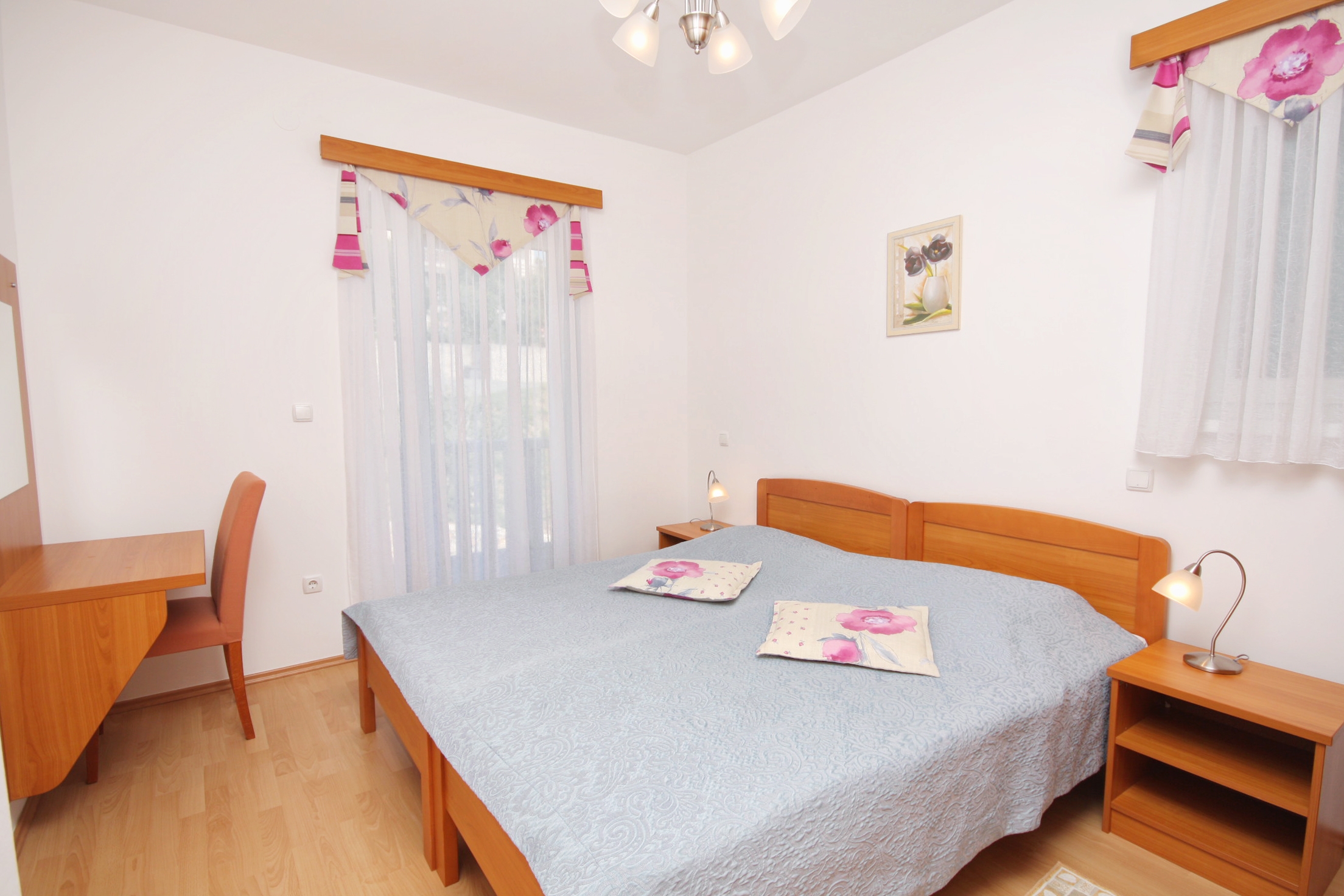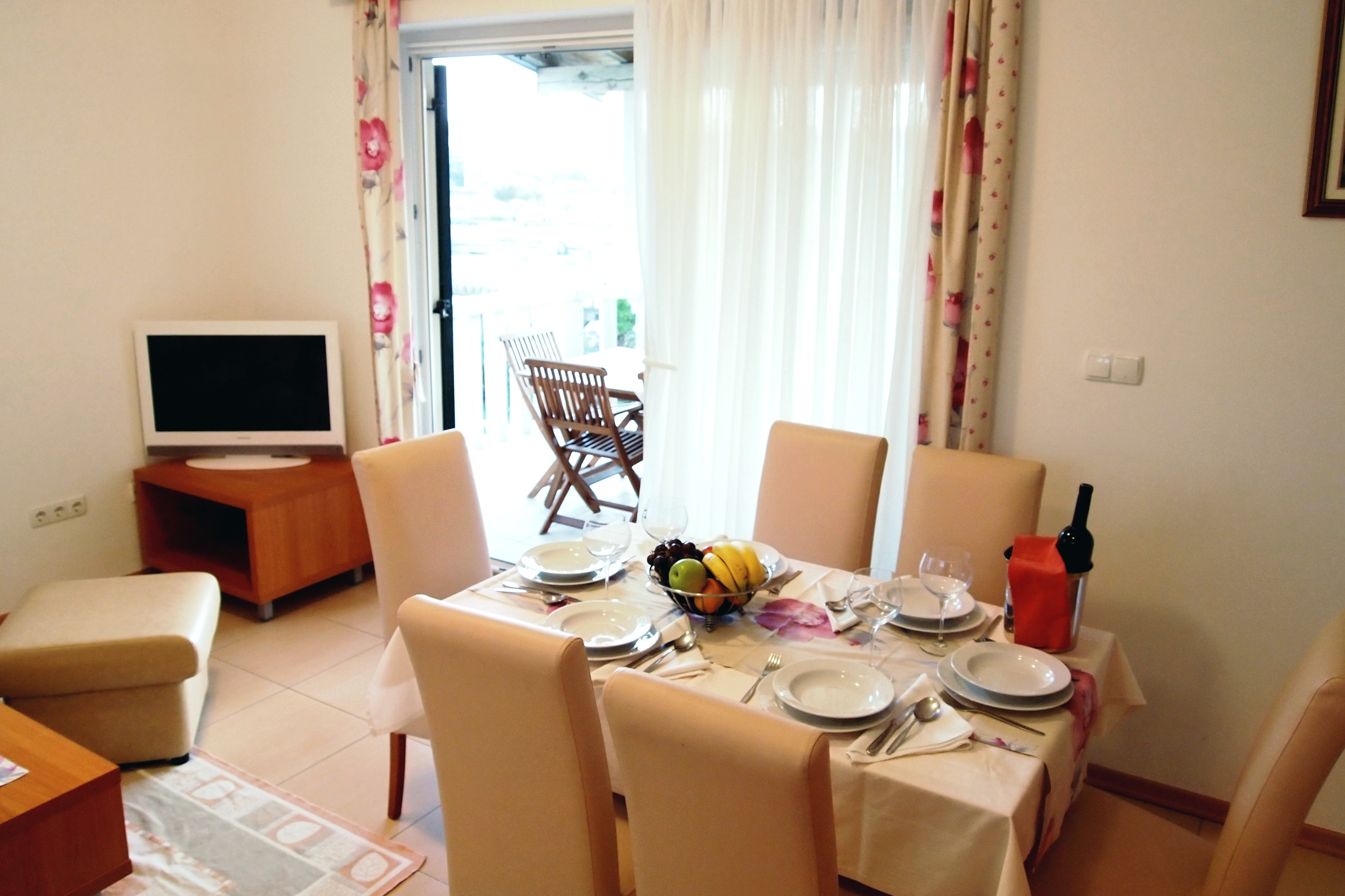 Apartament może przyjąć 6 gości. Łóżka znajdują się w sypialniach, których jest 2, oraz w pokoju dziennym, na powierzchni 59m2. Goście mają dostęp do tarasu, by korzystać z ciepłych, letnich wieczorów. Z apartamentu roztacza się widok na morze. Możliwość przygotowywania posiłków poprzez korzystanie ze wspólnego grilla. W trakcie swojego pobytu goście mogą korzystać ze wspólnego basenu. W rezerwowanej kwaterze na miejscu jest pobierana kaucja (jej wysokość jest podana na stronie). WLICZONE W CENĘ: sprzątanie końcowe, klimatyzacja, basen, parking, internet, suszarka do włosów. OBOWIĄZKOWE KOSZTY DODATKOWE: taksa pobytowa (dorośli 0,93 € - 1,90 € noclegosoba, zniżka dla dzieci w wieku 12 - 17 lat), depozyt (100,00 € jednorazowo). Dostępność dodatkowych usług w rezerwowanym terminie oraz ich cenę (jeśli nie jest podana) należy sprawdzić wcześniej. Za dodatowe usługi, które nie zostały uwzględnione w kalkulacji ceny, płaci się bezpośrednio właścicielowi obiektu, pod warunkiem śe gość korzysta z tych usług.