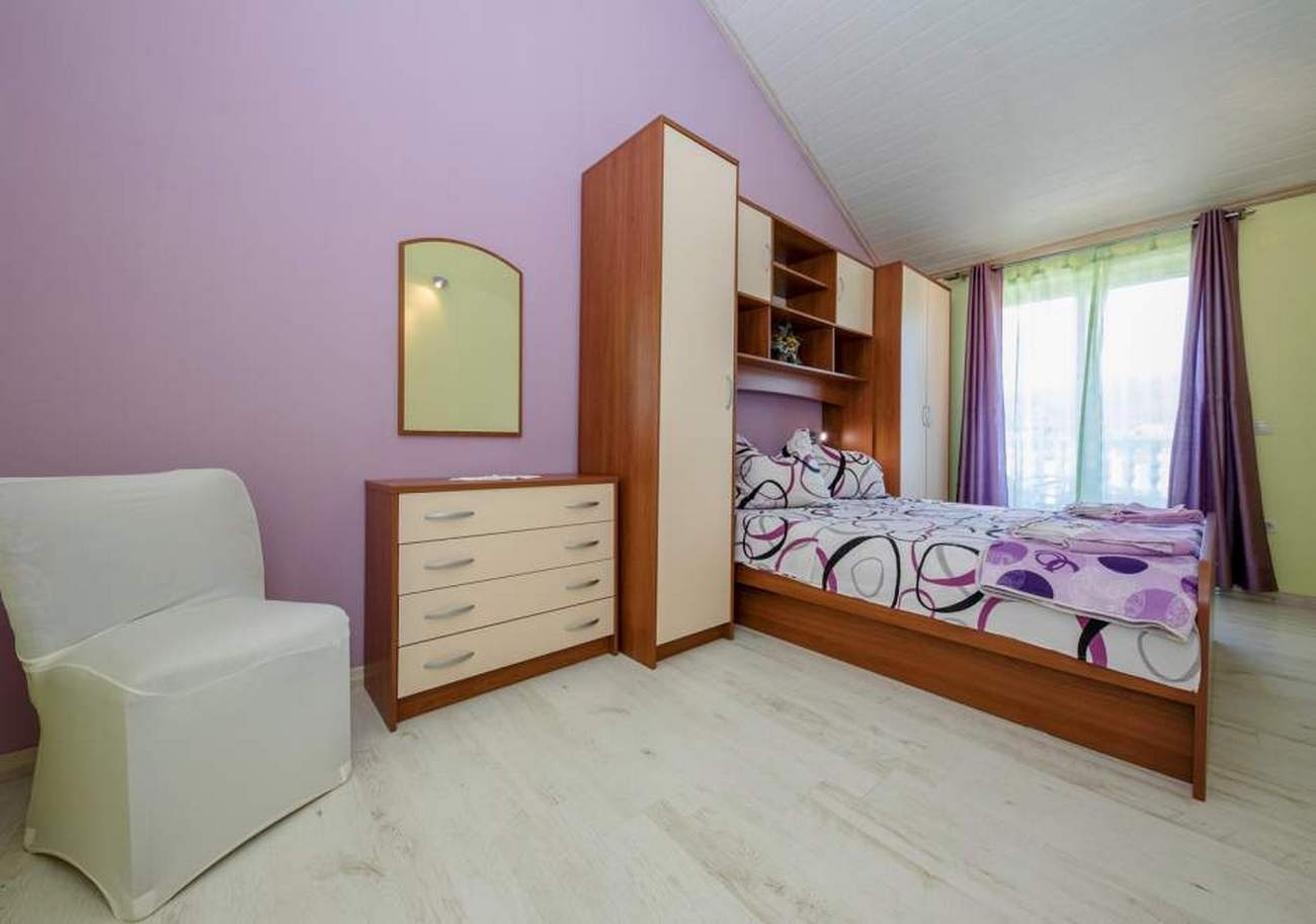 Apartament może przyjąć 5 gości. Łóżka znajdują się w sypialniach, których jest 2, oraz w pokoju dziennym, na powierzchni 50m2. Goście mają dostęp do tarasu, by korzystać z ciepłych, letnich wieczorów. Z apartamentu roztacza się widok na morze. Możliwość przygotowywania posiłków poprzez korzystanie ze wspólnego grilla. W kwaterze dozwolony jest pobyt zwierzęcia domowego, za dopłatą. WLICZONE W CENĘ: taksa pobytowa, sprzątanie końcowe, klimatyzacja, parking, internet, suszarka do włosów. OBOWIĄZKOWE KOSZTY DODATKOWE: dopłata za krótki termin (procent dopłaty w zalezności od liczby noclegów: 30% - 1, 20% - 2, 10% - 3). NIEOBOWIĄZKOWE KOSZTY DODATKOWE: pranie bielizny (10,00 € pranie), miejsce do cumowania łodzi (20,00 € za nocleg), zwierzęta domowe (10,00 € za nocleg), dostawka (10,00 € za nocleg). Dostępność dodatkowych usług w rezerwowanym terminie oraz ich cenę (jeśli nie jest podana) należy sprawdzić wcześniej. Za dodatowe usługi, które nie zostały uwzględnione w kalkulacji ceny, płaci się bezpośrednio właścicielowi obiektu, pod warunkiem śe gość korzysta z tych usług.