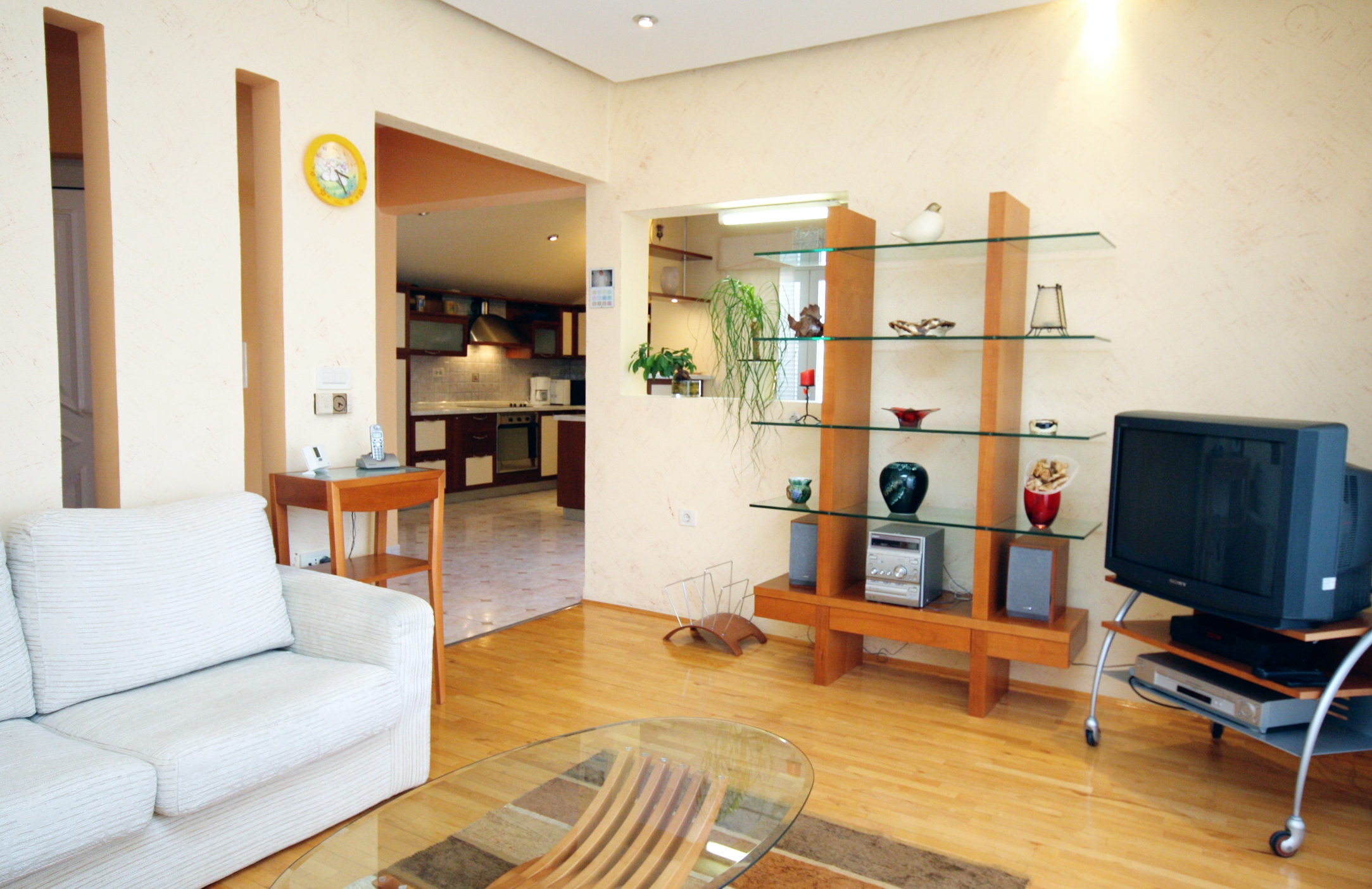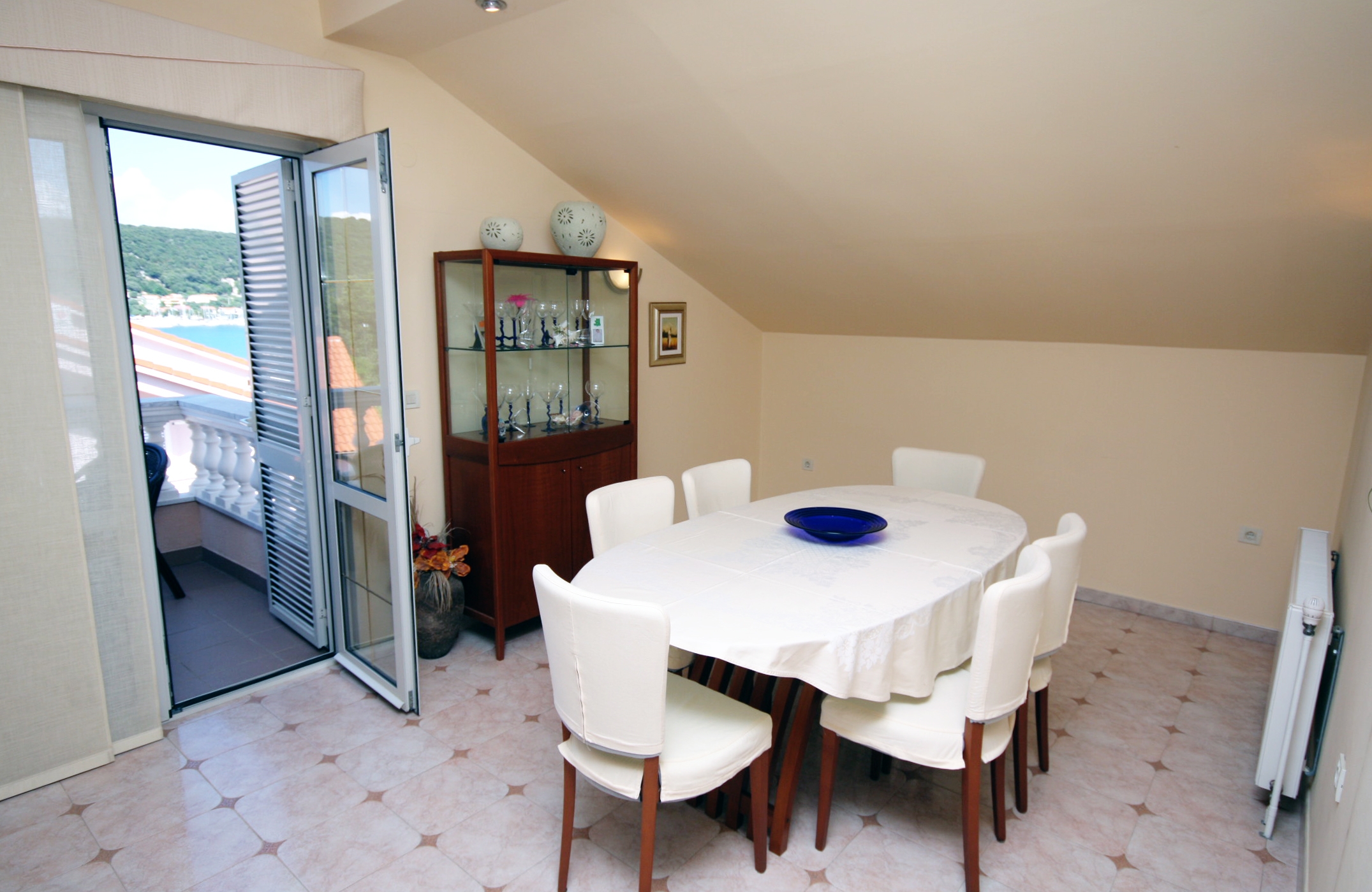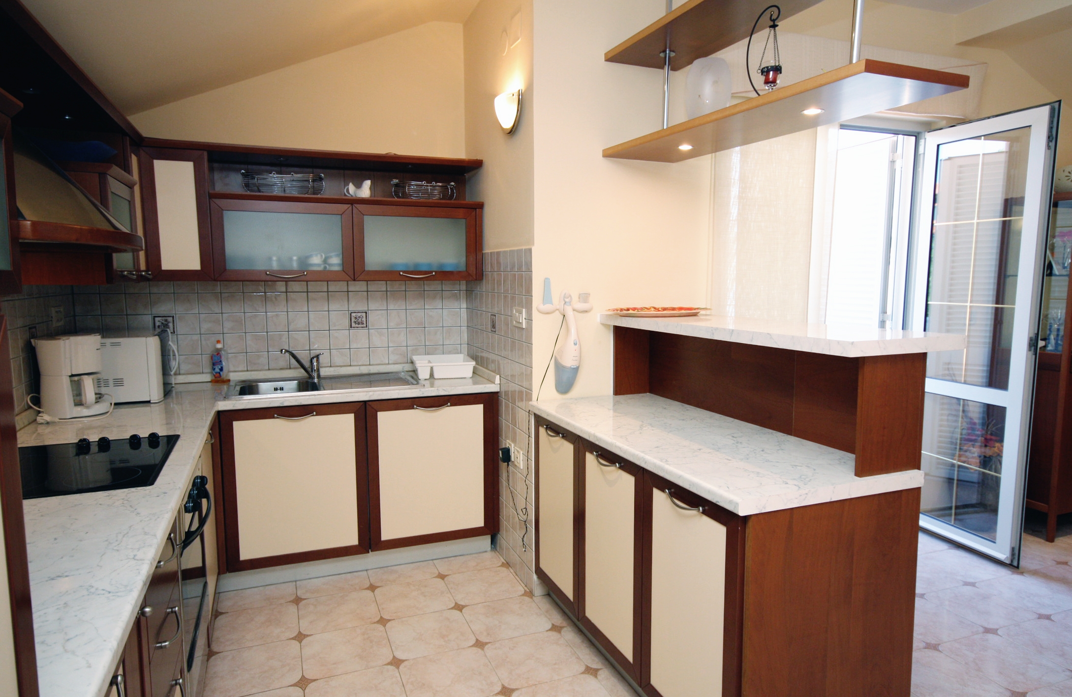 Apartament może przyjąć 4 gości. Łóżka znajdują się w sypialniach, których jest 2, na powierzchni 85m2. Goście mają dostęp do tarasu, by korzystać z ciepłych, letnich wieczorów. Z apartamentu roztacza się widok na morze. Możliwość przygotowywania posiłków poprzez korzystanie ze wspólnego grilla. W kwaterze dozwolony jest pobyt zwierzęcia domowego, za dopłatą. WLICZONE W CENĘ: taksa pobytowa, sprzątanie końcowe, klimatyzacja, parking, garaż, internet, łóżeczko dziecięce, suszarka do włosów. OBOWIĄZKOWE KOSZTY DODATKOWE: dopłata za krótki termin (procent dopłaty w zalezności od liczby noclegów: 30% - 1, 20% - 2, 10% - 3). NIEOBOWIĄZKOWE KOSZTY DODATKOWE: śniadanie (15,00 €, 50% zniżki dla dzieci od 4 do 12 lat, Bezpłatne dla dzieci do 4 lat), miejsce do cumowania łodzi (6,00 € za nocleg), zwierzęta domowe (10,00 € za nocleg). Dostępność dodatkowych usług w rezerwowanym terminie oraz ich cenę (jeśli nie jest podana) należy sprawdzić wcześniej. Za dodatowe usługi, które nie zostały uwzględnione w kalkulacji ceny, płaci się bezpośrednio właścicielowi obiektu, pod warunkiem śe gość korzysta z tych usług.