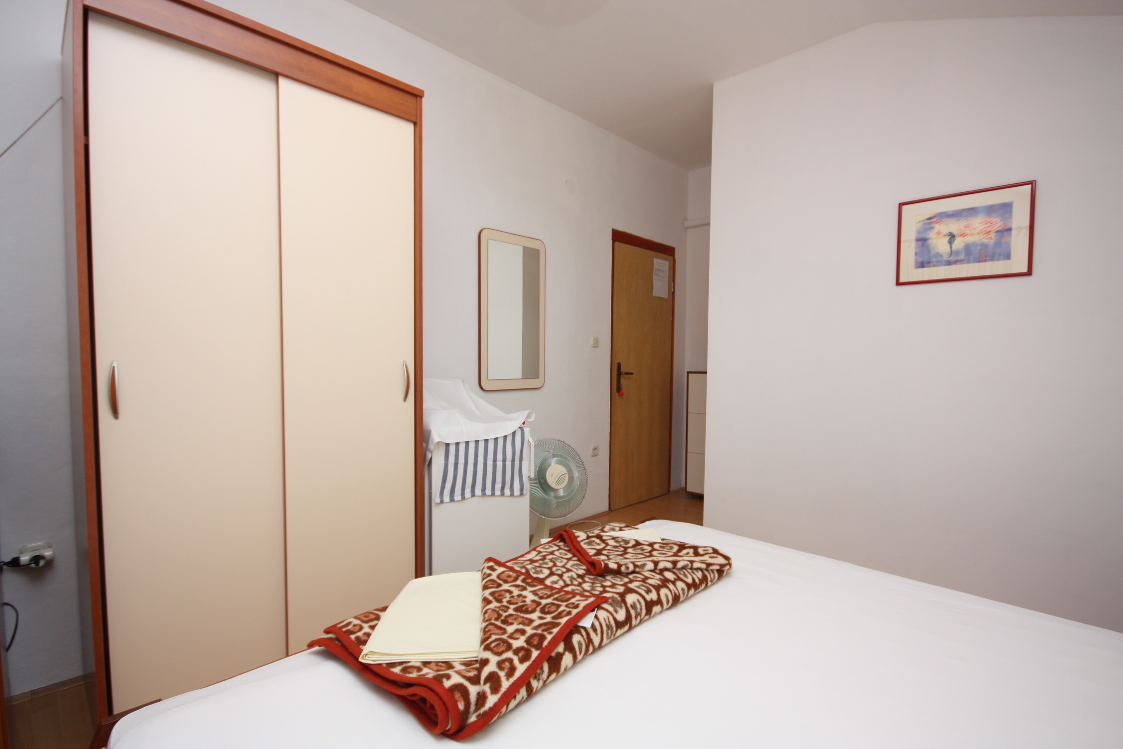 Pokój może przyjąć 2 gości. Łóżka znajdują się w sypialniach, których jest 1, na powierzchni 14m2. Goście mają dostęp do tarasu, by korzystać z ciepłych, letnich wieczorów. Z pokoju roztacza się widok na morze. Możliwość przygotowywania posiłków poprzez korzystanie ze wspólnego grilla. Rezerwowana kwatera to pokój z własną łazienką, bez możliwości korzystania z kuchni. WLICZONE W CENĘ: taksa pobytowa, sprzątanie końcowe, klimatyzacja, parking, internet, żelazko, deska do prasowania, suszarka do włosów. OBOWIĄZKOWE KOSZTY DODATKOWE: dopłata za krótki termin (procent dopłaty w zalezności od liczby noclegów: 30% - 1, 20% - 2, 10% - 3). Dostępność dodatkowych usług w rezerwowanym terminie oraz ich cenę (jeśli nie jest podana) należy sprawdzić wcześniej. Za dodatowe usługi, które nie zostały uwzględnione w kalkulacji ceny, płaci się bezpośrednio właścicielowi obiektu, pod warunkiem śe gość korzysta z tych usług.