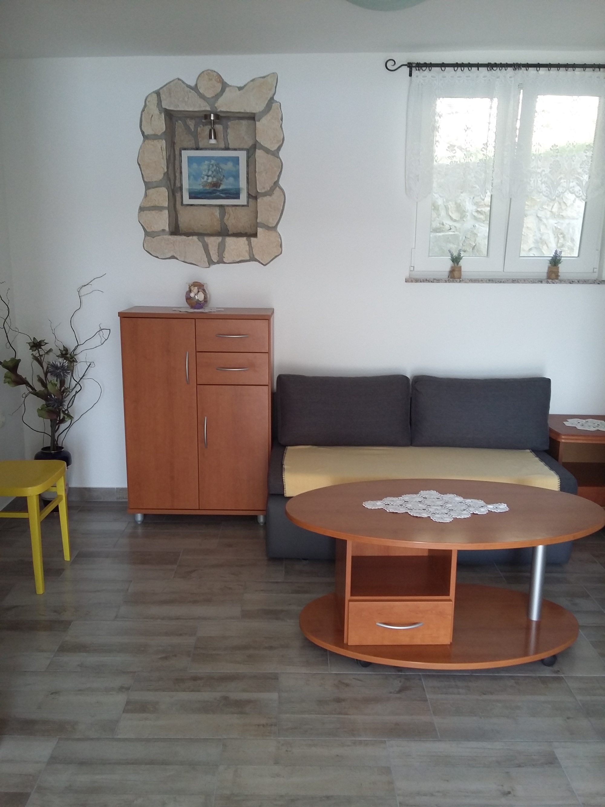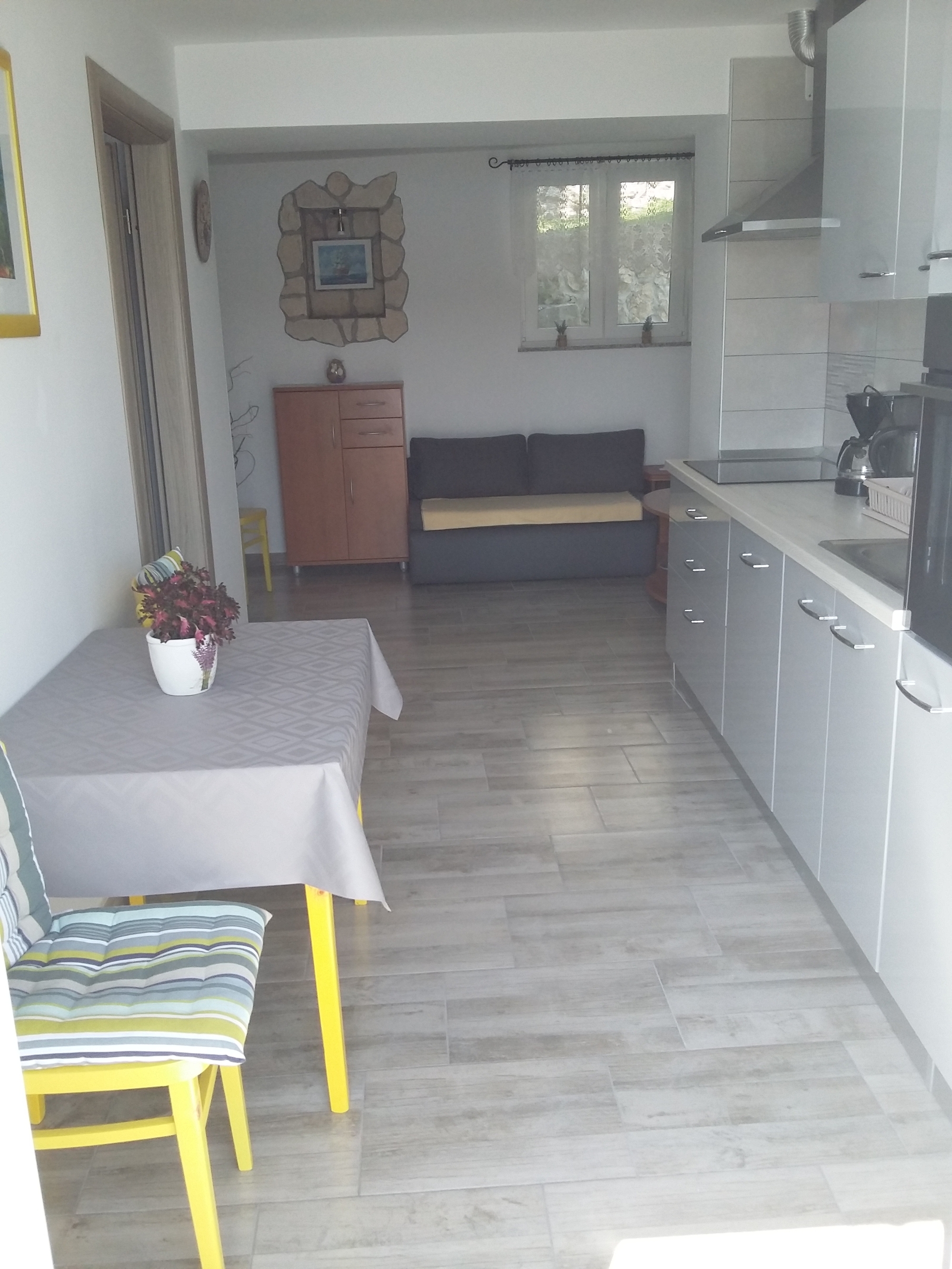 Apartament może przyjąć 2 gości. Łóżka znajdują się w sypialniach, których jest 1, na powierzchni 29m2. Goście mają dostęp do tarasu, by korzystać z ciepłych, letnich wieczorów. Z apartamentu roztacza się widok na morze. Możliwość przygotowywania posiłków poprzez korzystanie ze wspólnego grilla. W kwaterze dozwolony jest pobyt zwierzęcia domowego, za dopłatą. WLICZONE W CENĘ: taksa pobytowa, sprzątanie końcowe, klimatyzacja, parking, internet, żelazko, suszarka do włosów, przenośny grill, leżaki. OBOWIĄZKOWE KOSZTY DODATKOWE: dopłata za krótki termin (procent dopłaty w zalezności od liczby noclegów: 30% - 1, 20% - 2, 10% - 3). NIEOBOWIĄZKOWE KOSZTY DODATKOWE: pranie bielizny (10,00 € pranie), łódź (180,00 € za nocleg), miejsce do cumowania łodzi (15,00 € za nocleg), zwierzęta domowe (10,00 € za nocleg), dostawka (10,00 € za nocleg). Dostępność dodatkowych usług w rezerwowanym terminie oraz ich cenę (jeśli nie jest podana) należy sprawdzić wcześniej. Za dodatowe usługi, które nie zostały uwzględnione w kalkulacji ceny, płaci się bezpośrednio właścicielowi obiektu, pod warunkiem śe gość korzysta z tych usług.