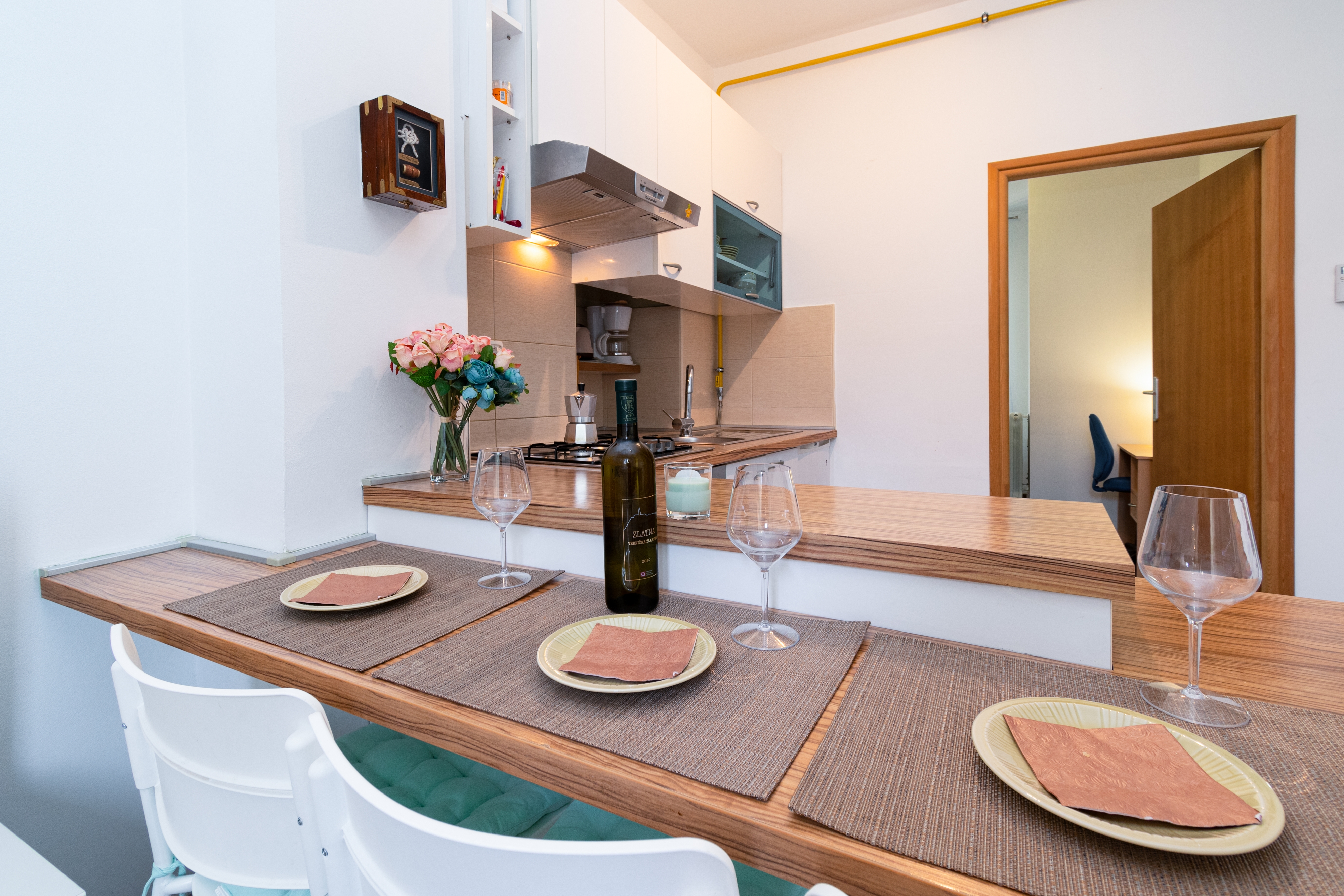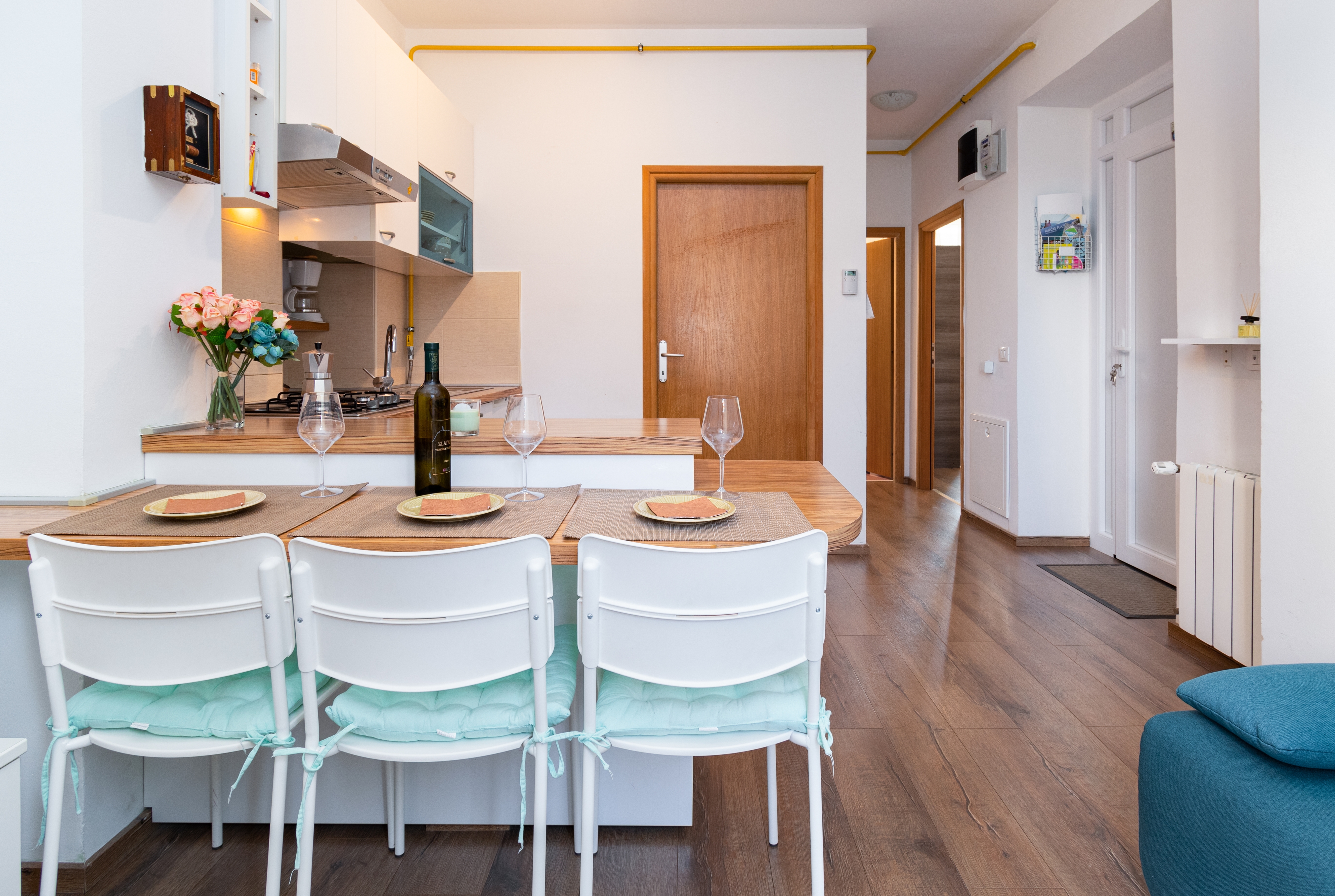 Apartament może przyjąć 3 gości. Łóżka znajdują się w sypialniach, których jest 2, na powierzchni 42m2. W kwaterze dozwolony jest pobyt zwierzęcia domowego, za dopłatą. Rezerwowana kwatera nie ma balkonu ani tarasu. WLICZONE W CENĘ: taksa pobytowa, sprzątanie końcowe, klimatyzacja, centralne ogrzewanie, internet, żelazko, suszarka do włosów. OBOWIĄZKOWE KOSZTY DODATKOWE: dopłata za krótki termin (procent dopłaty w zalezności od liczby noclegów: 30% - 1, 20% - 2, 10% - 3). NIEOBOWIĄZKOWE KOSZTY DODATKOWE: zwierzęta domowe (7,00 € za nocleg). Dostępność dodatkowych usług w rezerwowanym terminie oraz ich cenę (jeśli nie jest podana) należy sprawdzić wcześniej. Za dodatowe usługi, które nie zostały uwzględnione w kalkulacji ceny, płaci się bezpośrednio właścicielowi obiektu, pod warunkiem śe gość korzysta z tych usług. Zniżki od ceny podstawowej: bezpłatny dzień 14=13 (przy pobycie, trwającym co najmniej 14 dni, otrzymujecie jeden bezpłatny dzień na pobyt do 31.12.2026).