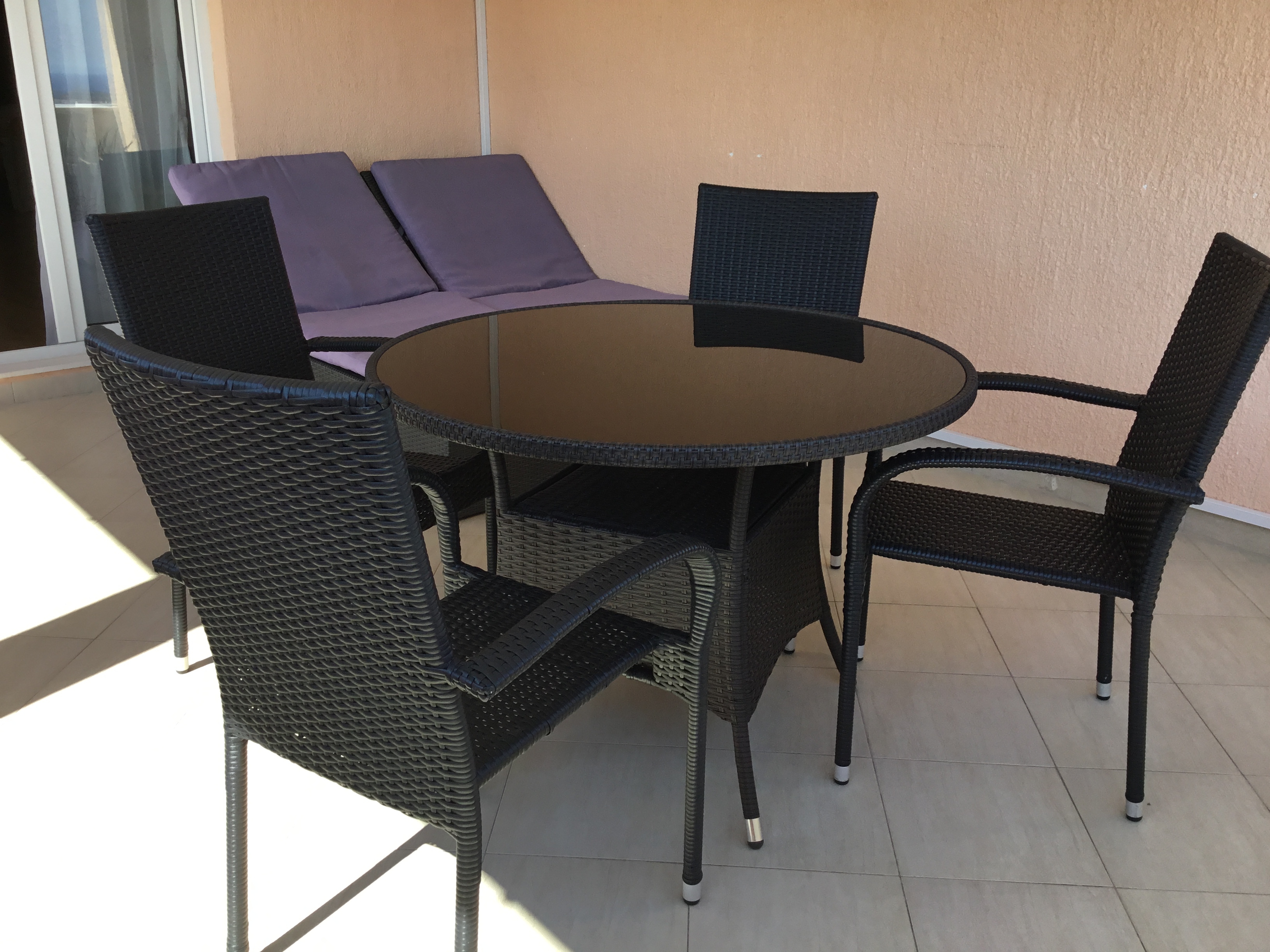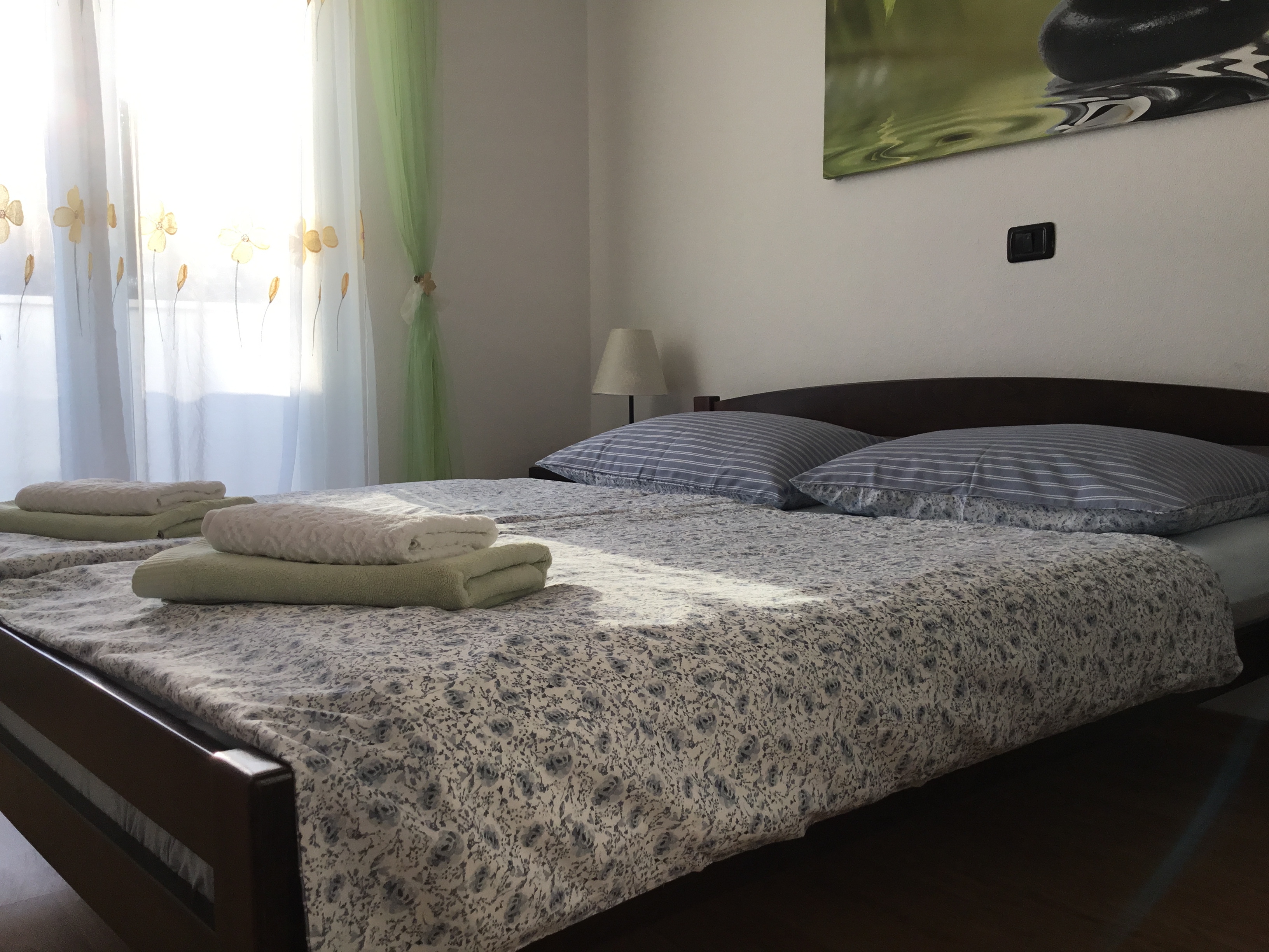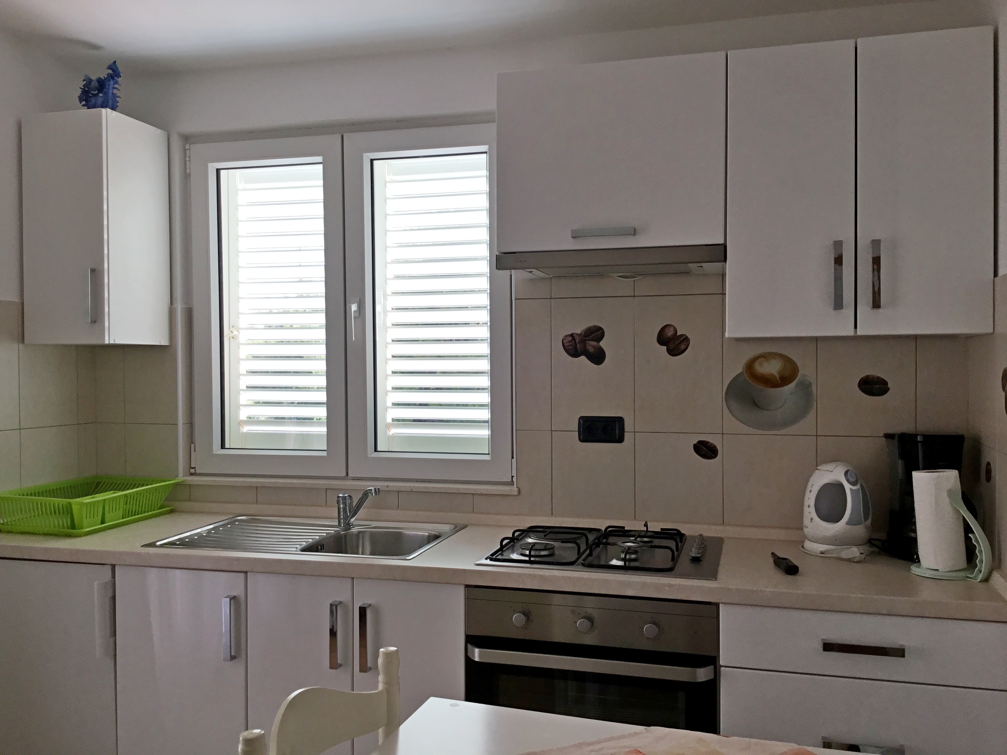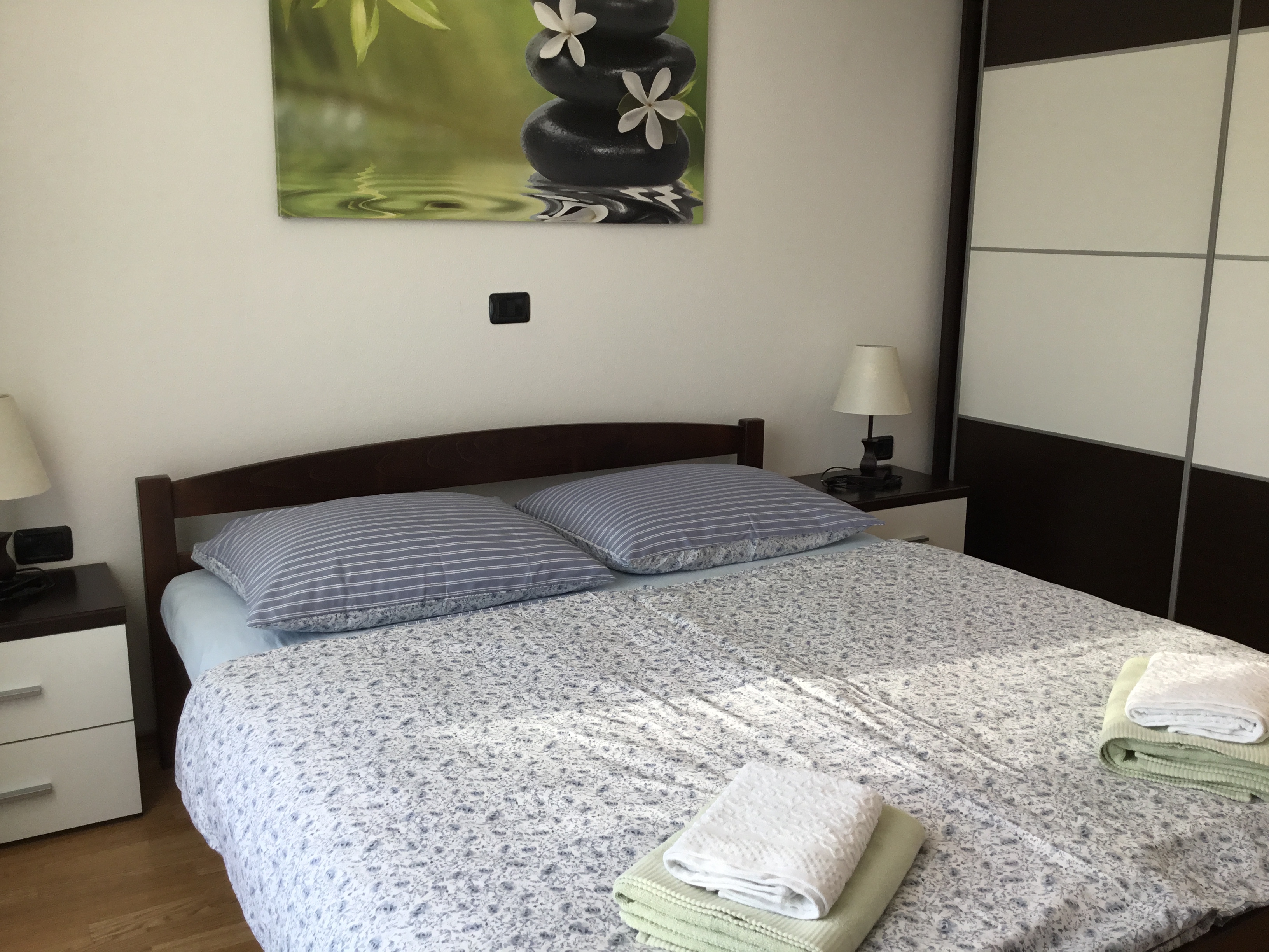 Apartament może przyjąć 4 gości. Łóżka znajdują się w sypialniach, których jest 1, oraz w pokoju dziennym, na powierzchni 29m2. Goście mają dostęp do tarasu, by korzystać z ciepłych, letnich wieczorów. Z apartamentu roztacza się widok na morze. Możliwość przygotowywania posiłków poprzez korzystanie ze wspólnego grilla. W trakcie swojego pobytu goście mogą korzystać ze wspólnego basenu. W kwaterze dozwolony jest pobyt zwierzęcia domowego, za dopłatą. WLICZONE W CENĘ: taksa pobytowa, sprzątanie końcowe, klimatyzacja, basen, parking, garaż, internet, pranie bielizny, łóżeczko dziecięce, żelazko, deska do prasowania, suszarka do włosów, parasol, leżaki. OBOWIĄZKOWE KOSZTY DODATKOWE: dopłata za krótki termin (procent dopłaty w zalezności od liczby noclegów: 30% - 1, 20% - 2, 10% - 3). NIEOBOWIĄZKOWE KOSZTY DODATKOWE: zwierzęta domowe (5,00 € za nocleg). Dostępność dodatkowych usług w rezerwowanym terminie oraz ich cenę (jeśli nie jest podana) należy sprawdzić wcześniej. Za dodatowe usługi, które nie zostały uwzględnione w kalkulacji ceny, płaci się bezpośrednio właścicielowi obiektu, pod warunkiem śe gość korzysta z tych usług. Zniżki od ceny podstawowej: bezpłatny dzień 21=19 (przy pobycie, trwającym co najmniej 21 dni, trzymujecie dwa bezpłatne dni na pobyt do 31.12.2026).