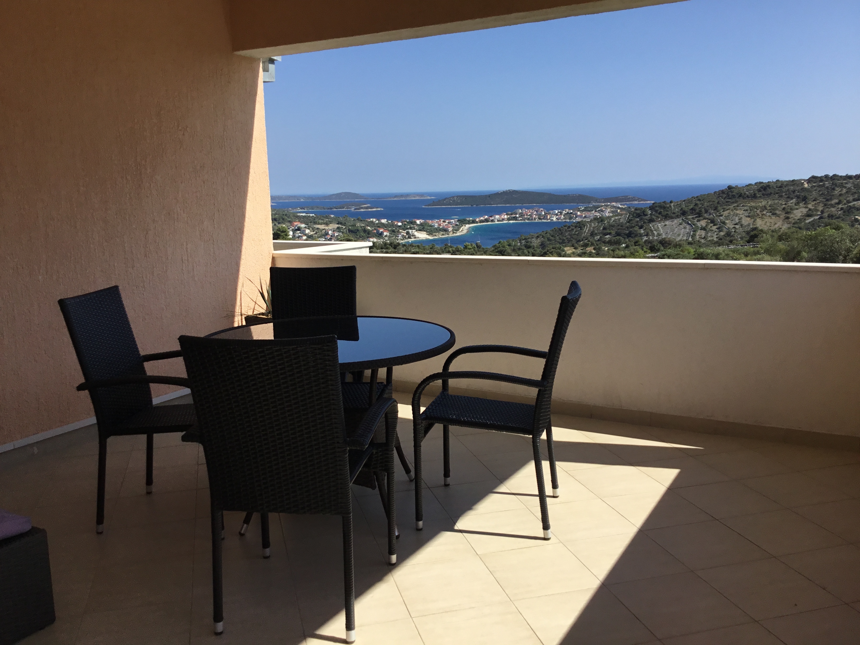 Jednopokojowy apartament z tarasem i widokiem na morze Dvornica, Rogoznica