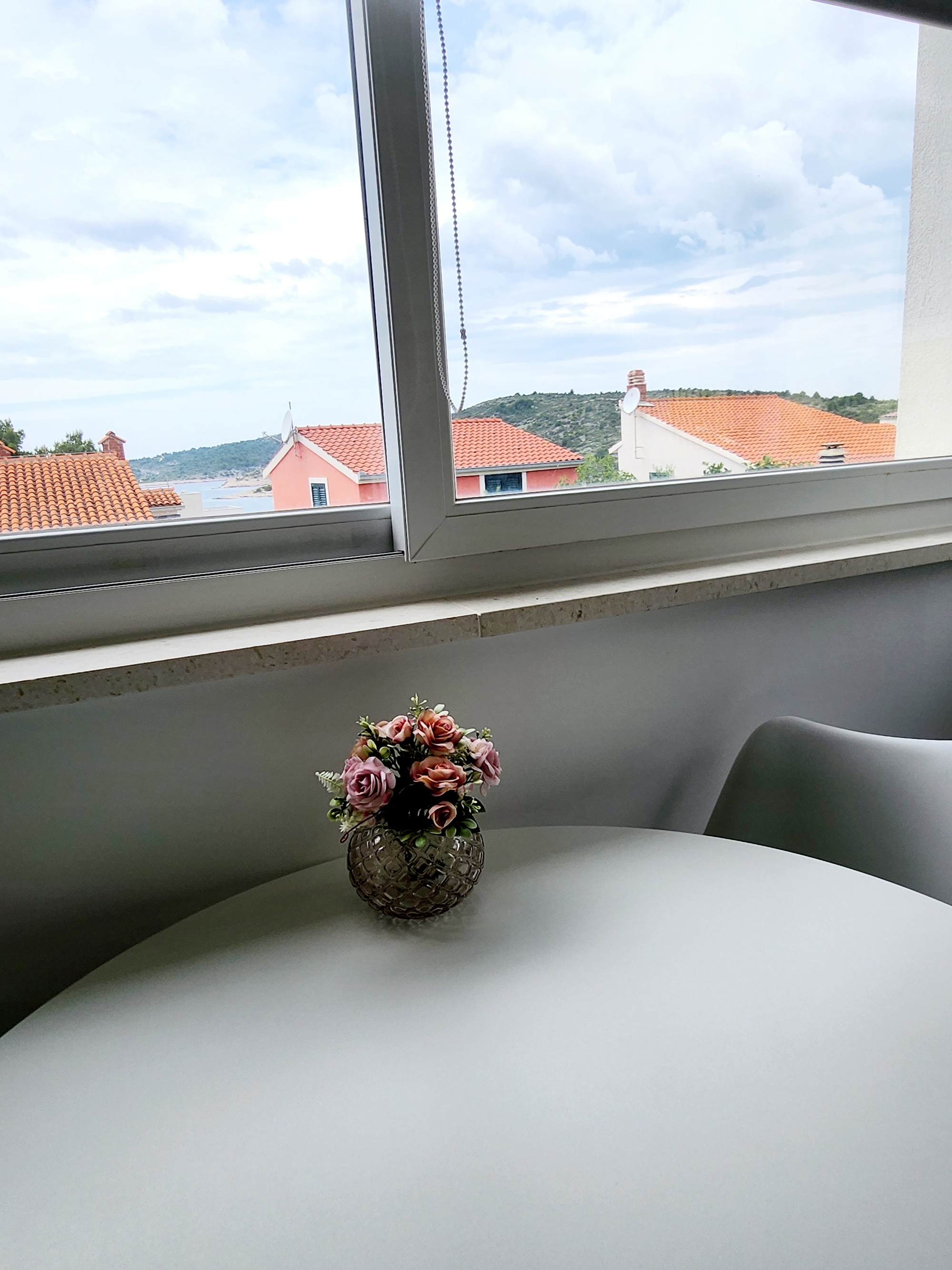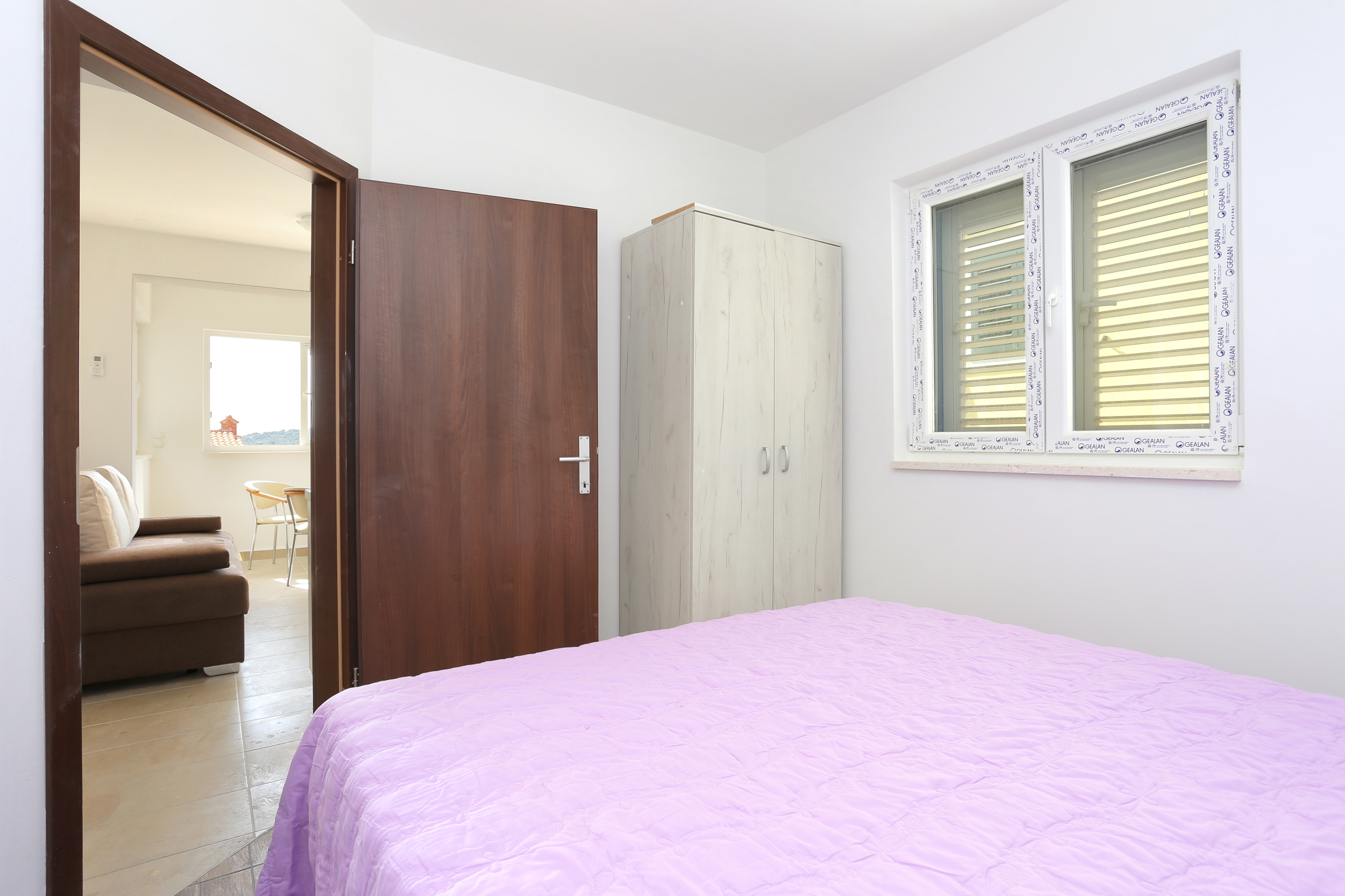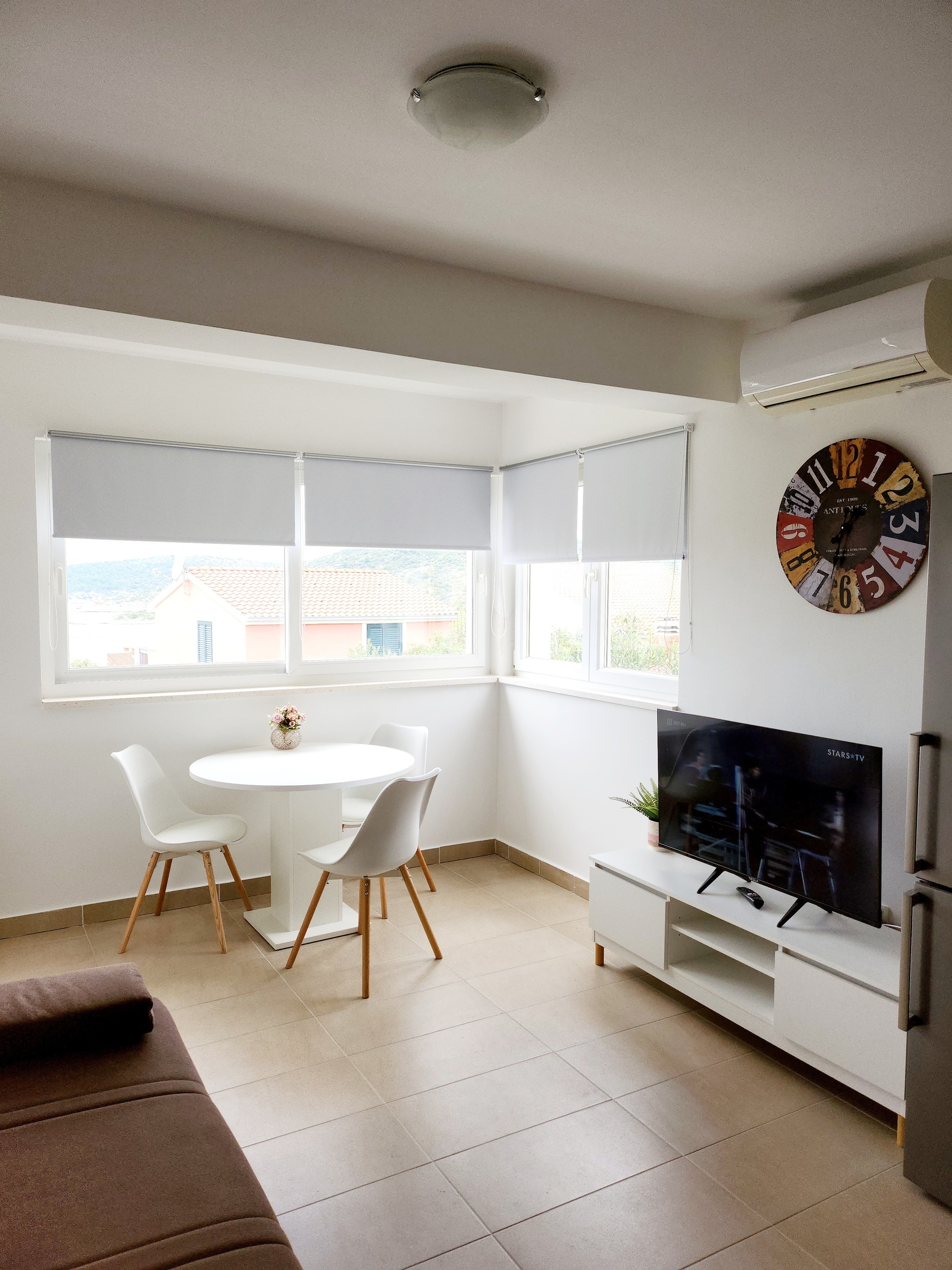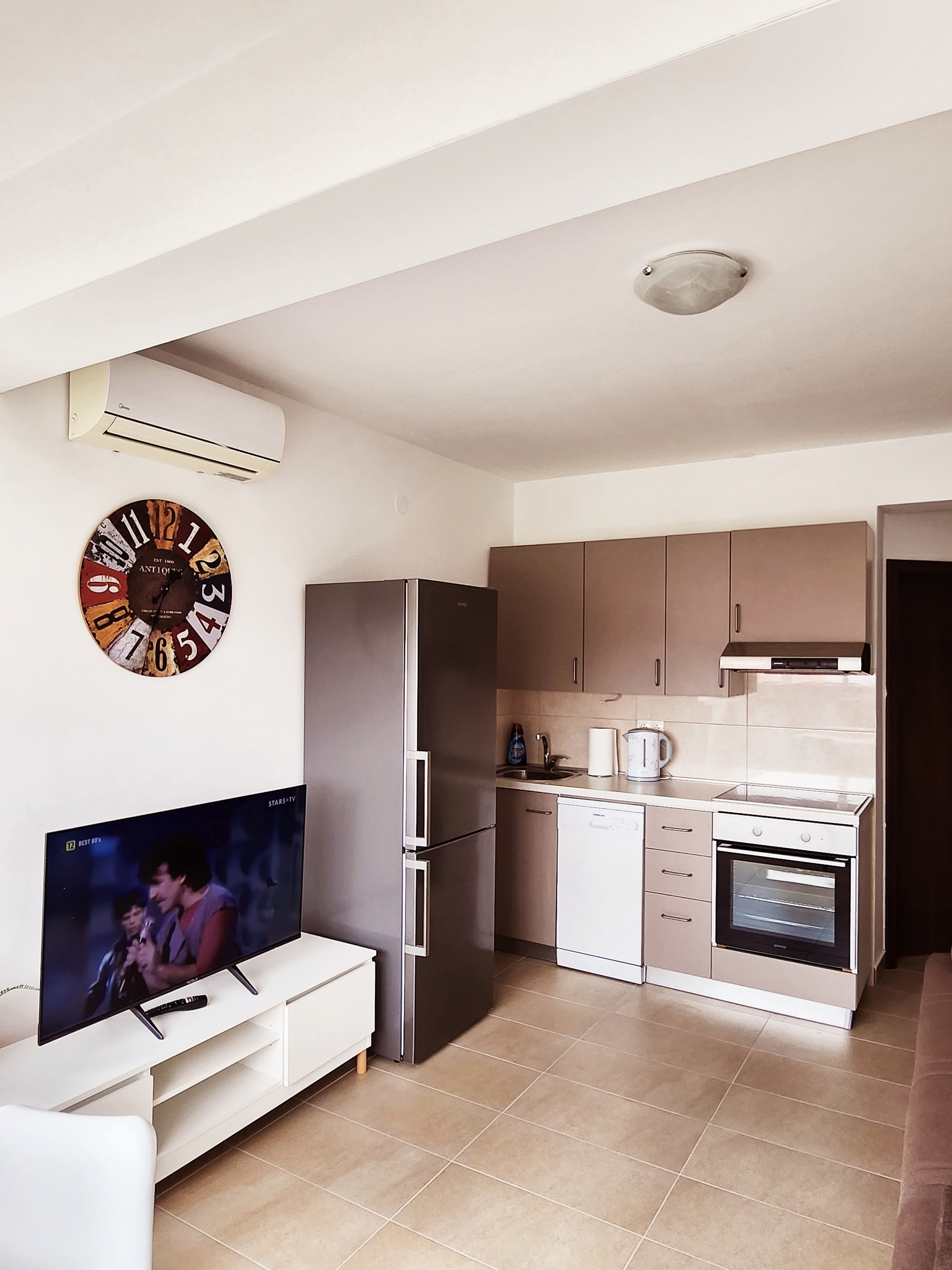 Apartament może przyjąć 3 gości. Łóżka znajdują się w sypialniach, których jest 1, oraz w pokoju dziennym, na powierzchni 28m2. Goście mają dostęp do tarasu, by korzystać z ciepłych, letnich wieczorów. Z apartamentu roztacza się widok na morze. Możliwość przygotowywania posiłków poprzez korzystanie ze wspólnego grilla. WLICZONE W CENĘ: taksa pobytowa, sprzątanie końcowe, parking, internet, żelazko, deska do prasowania, suszarka do włosów. NIEOBOWIĄZKOWE KOSZTY DODATKOWE: klimatyzacja (5,00 € za nocleg), pranie bielizny (5,00 € pranie). Dostępność dodatkowych usług w rezerwowanym terminie oraz ich cenę (jeśli nie jest podana) należy sprawdzić wcześniej. Za dodatowe usługi, które nie zostały uwzględnione w kalkulacji ceny, płaci się bezpośrednio właścicielowi obiektu, pod warunkiem śe gość korzysta z tych usług.