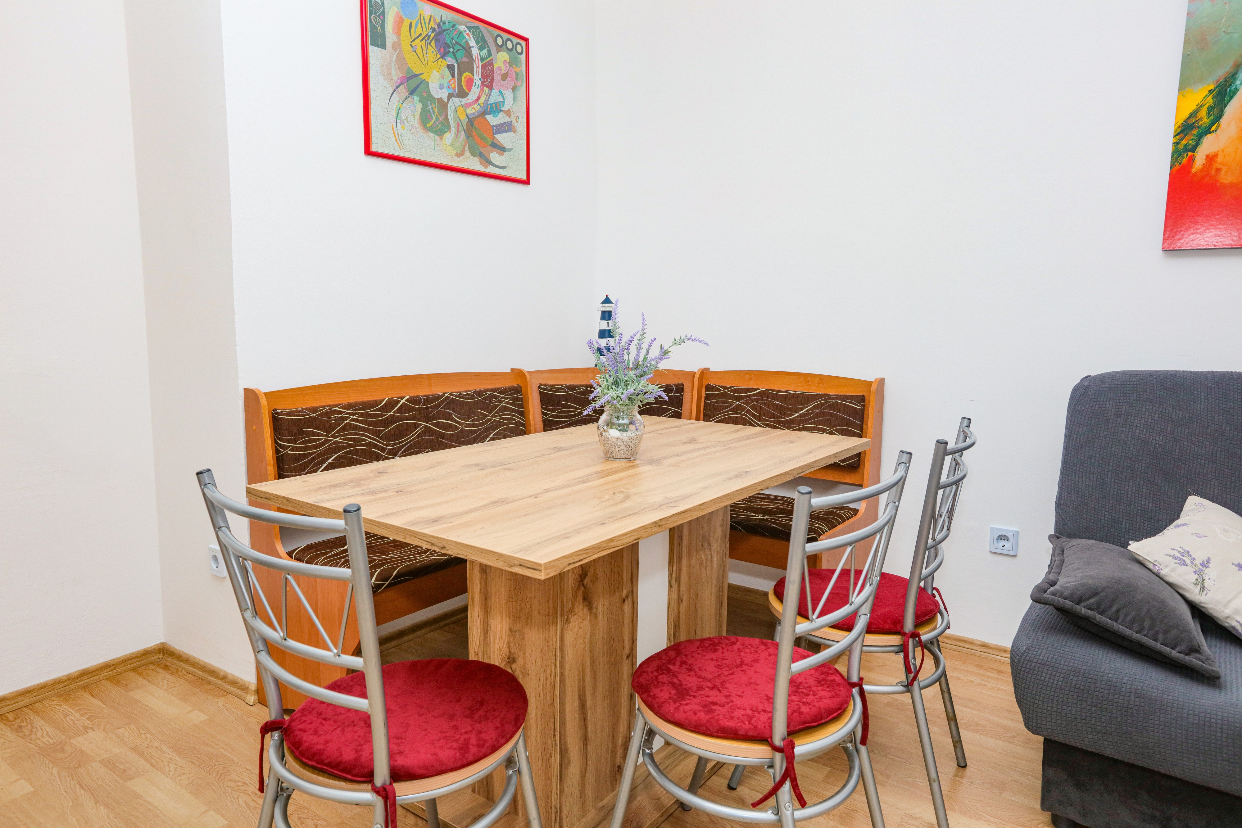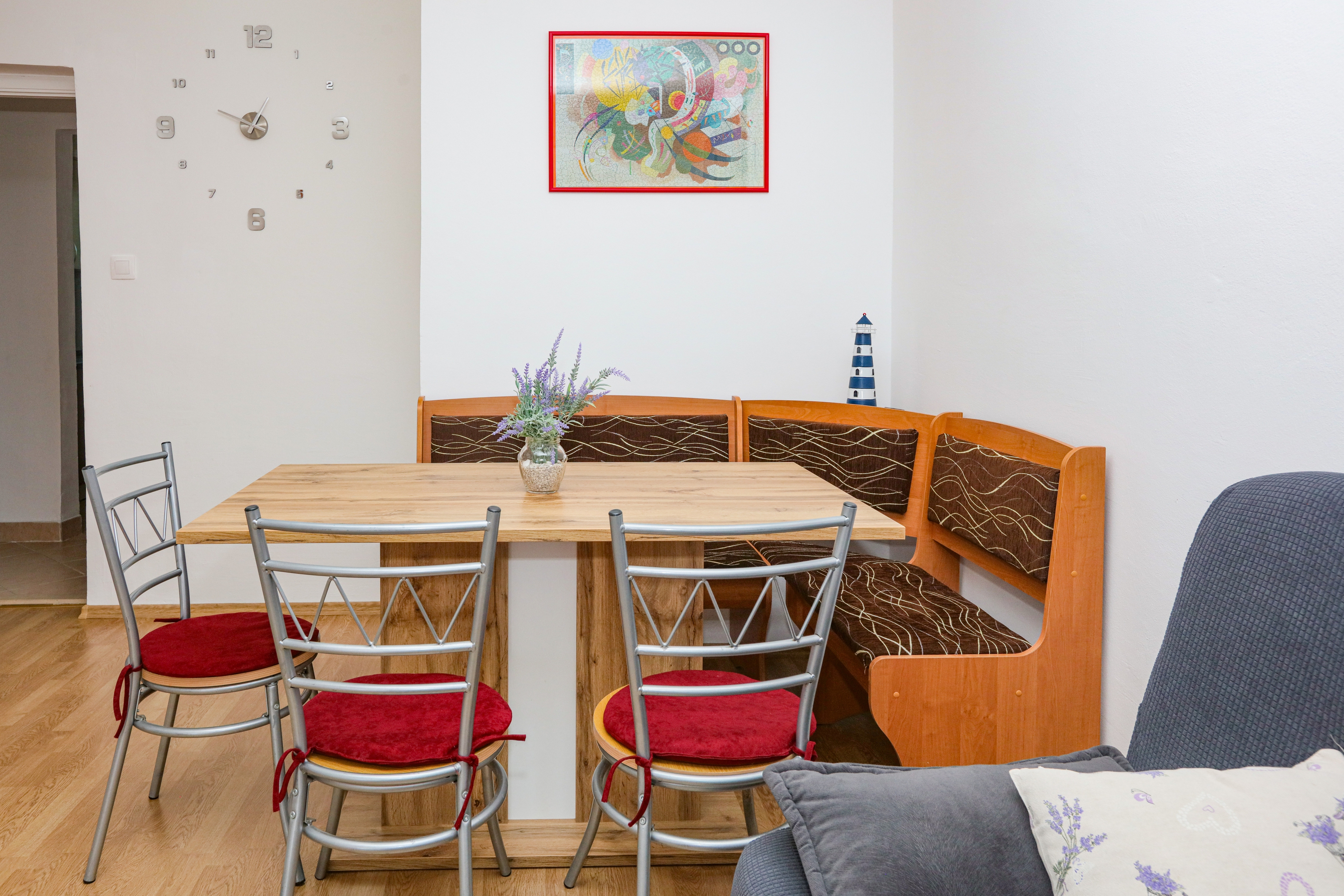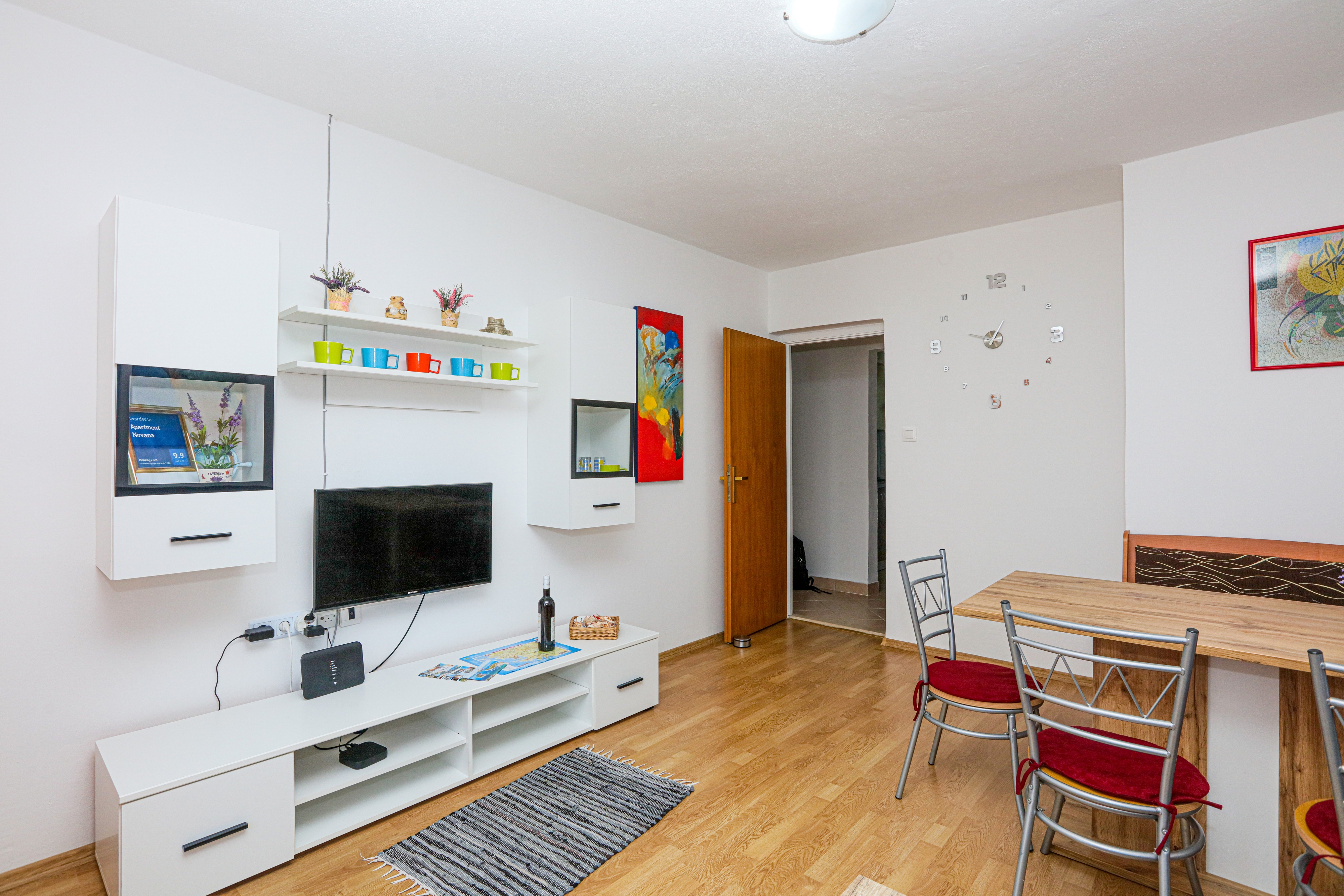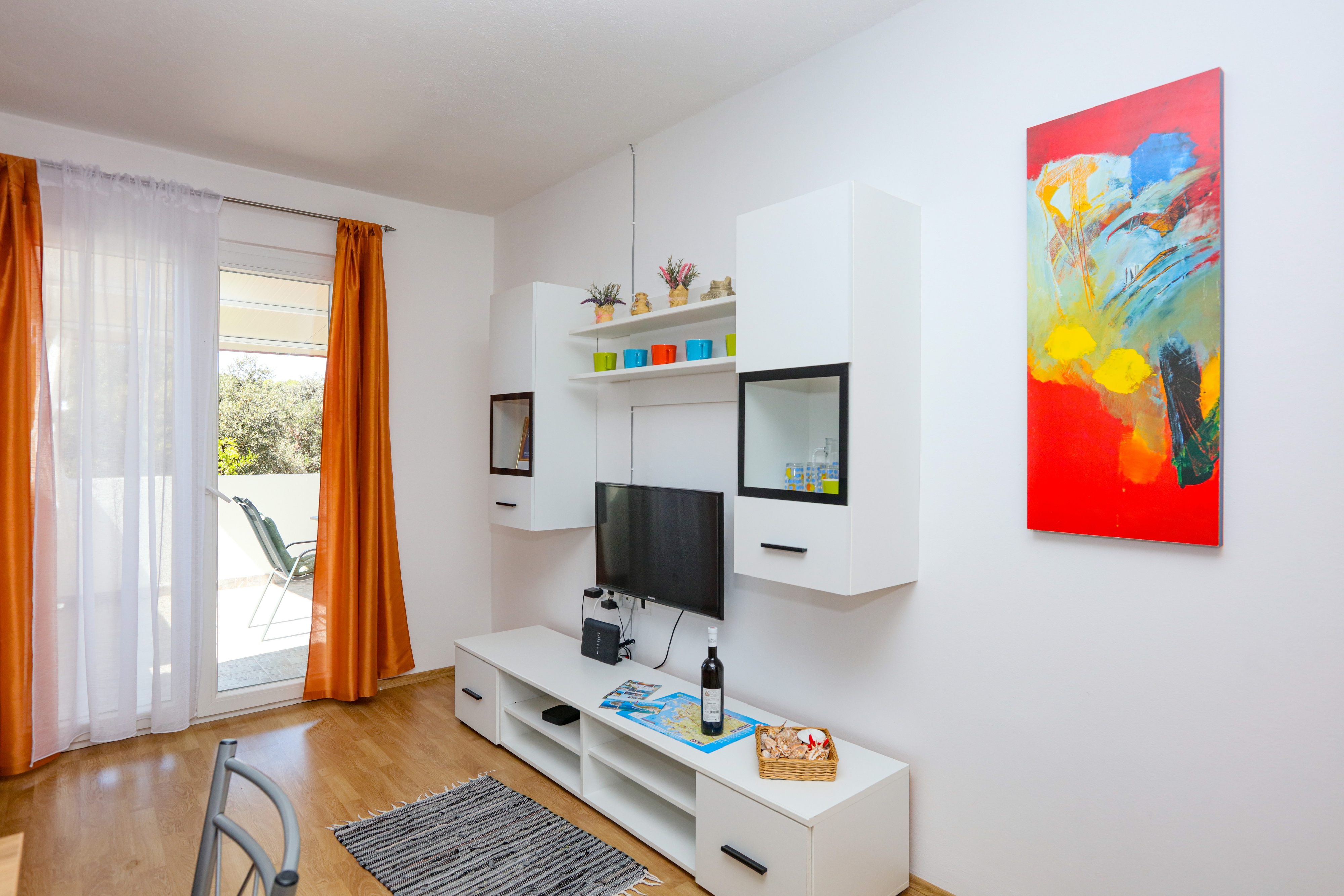 Apartament może przyjąć 5 gości. Łóżka znajdują się w sypialniach, których jest 2, oraz w pokoju dziennym, na powierzchni 50m2. Goście mają dostęp do tarasu, by korzystać z ciepłych, letnich wieczorów. Z apartamentu roztacza się widok na morze. Możliwość przygotowywania posiłków poprzez korzystanie ze wspólnego grilla. WLICZONE W CENĘ: taksa pobytowa, sprzątanie końcowe, klimatyzacja, parking, internet, łóżeczko dziecięce, żelazko, deska do prasowania, suszarka do włosów. OBOWIĄZKOWE KOSZTY DODATKOWE: dopłata za krótki termin (procent dopłaty w zalezności od liczby noclegów: 30% - 1, 20% - 2, 10% - 3). Dostępność dodatkowych usług w rezerwowanym terminie oraz ich cenę (jeśli nie jest podana) należy sprawdzić wcześniej. Za dodatowe usługi, które nie zostały uwzględnione w kalkulacji ceny, płaci się bezpośrednio właścicielowi obiektu, pod warunkiem śe gość korzysta z tych usług. Zniżki od ceny podstawowej: bezpłatny dzień 14=13 (przy pobycie, trwającym co najmniej 14 dni, otrzymujecie jeden bezpłatny dzień na pobyt do 31.12.2026).