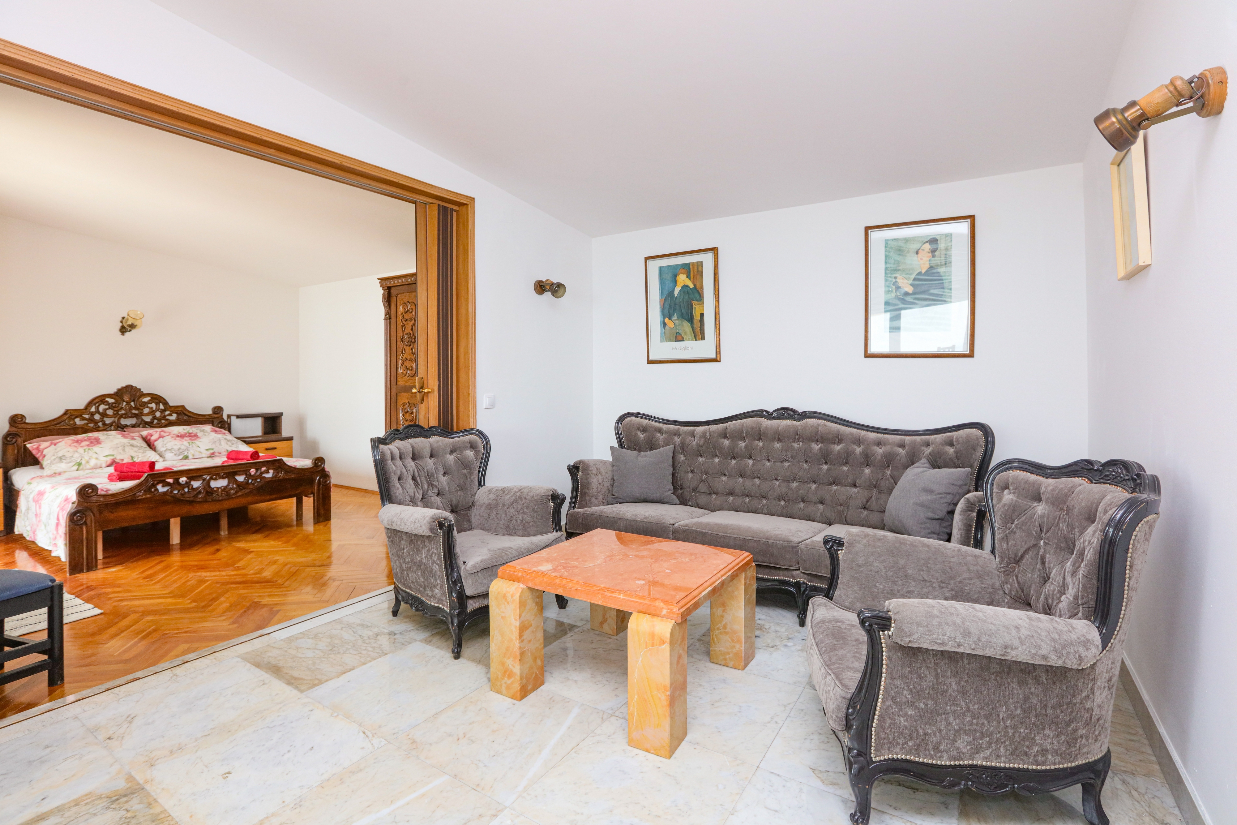 Dom może przyjąć 10 gości. Łóżka znajdują się w sypialniach, których jest 5, na powierzchni 217m2. Goście mają dostęp do tarasu, by korzystać z ciepłych, letnich wieczorów. Z domu wakacyjnego roztacza się widok na morze. Grill jest dostępny tylko do użytku gości z tej kwatery. WLICZONE W CENĘ: taksa pobytowa, sprzątanie końcowe, klimatyzacja, parking, internet, miejsce do cumowania łodzi, deska do prasowania, suszarka do włosów, leżaki. OBOWIĄZKOWE KOSZTY DODATKOWE: dopłata za krótki termin (procent dopłaty w zalezności od liczby noclegów: 30% - 1, 20% - 2, 10% - 3). Dostępność dodatkowych usług w rezerwowanym terminie oraz ich cenę (jeśli nie jest podana) należy sprawdzić wcześniej. Za dodatowe usługi, które nie zostały uwzględnione w kalkulacji ceny, płaci się bezpośrednio właścicielowi obiektu, pod warunkiem śe gość korzysta z tych usług.