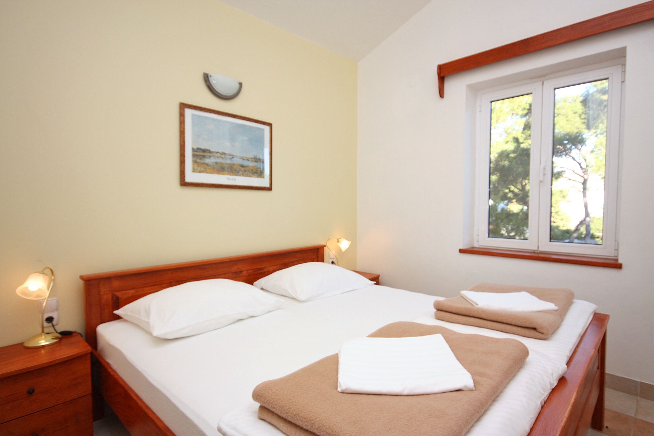 Apartament może przyjąć 3 gości. Łóżka znajdują się w sypialniach, których jest 1, oraz w pokoju dziennym, na powierzchni 40m2. Goście mają dostęp do tarasu, by korzystać z ciepłych, letnich wieczorów. Z apartamentu roztacza się widok na morze. Możliwość przygotowywania posiłków poprzez korzystanie ze wspólnego grilla. W kwaterze dozwolony jest pobyt zwierzęcia domowego, za dopłatą. W rezerwowanej kwaterze na miejscu jest pobierana kaucja (jej wysokość jest podana na stronie). WLICZONE W CENĘ: taksa pobytowa, sprzątanie końcowe, klimatyzacja, parking, internet, łóżeczko dziecięce, suszarka do włosów. OBOWIĄZKOWE KOSZTY DODATKOWE: depozyt (100,00 € jednorazowo), dopłata za krótki termin (procent dopłaty w zalezności od liczby noclegów: 30% - 1, 20% - 2, 10% - 3). NIEOBOWIĄZKOWE KOSZTY DODATKOWE: pranie bielizny (5,00 € pranie), miejsce do cumowania łodzi (25,00 € za nocleg), zwierzęta domowe (20,00 € za nocleg). Dostępność dodatkowych usług w rezerwowanym terminie oraz ich cenę (jeśli nie jest podana) należy sprawdzić wcześniej. Za dodatowe usługi, które nie zostały uwzględnione w kalkulacji ceny, płaci się bezpośrednio właścicielowi obiektu, pod warunkiem śe gość korzysta z tych usług.