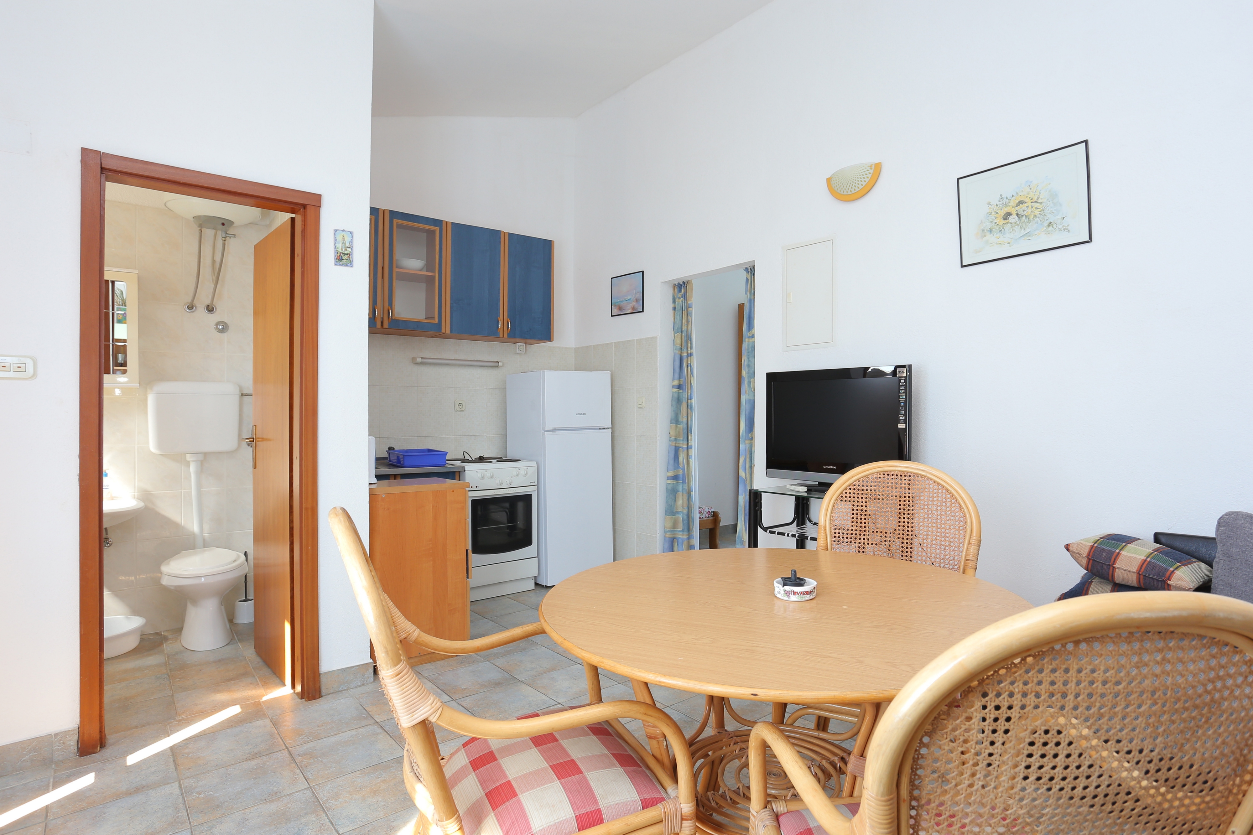 Studio może przyjąć 2 gości. Łóżka znajdują się w sypialniach, których jest 1, na powierzchni 29m2. Goście mają dostęp do tarasu, by korzystać z ciepłych, letnich wieczorów. Możliwość przygotowywania posiłków poprzez korzystanie ze wspólnego grilla. Kwatera ma pomieszczenia, które są oddzielone od reszty tej kwatery. WLICZONE W CENĘ: taksa pobytowa, sprzątanie końcowe, klimatyzacja, parking, internet, łóżeczko dziecięce. NIEOBOWIĄZKOWE KOSZTY DODATKOWE: pranie bielizny (5,00 € pranie). Dostępność dodatkowych usług w rezerwowanym terminie oraz ich cenę (jeśli nie jest podana) należy sprawdzić wcześniej. Za dodatowe usługi, które nie zostały uwzględnione w kalkulacji ceny, płaci się bezpośrednio właścicielowi obiektu, pod warunkiem śe gość korzysta z tych usług.