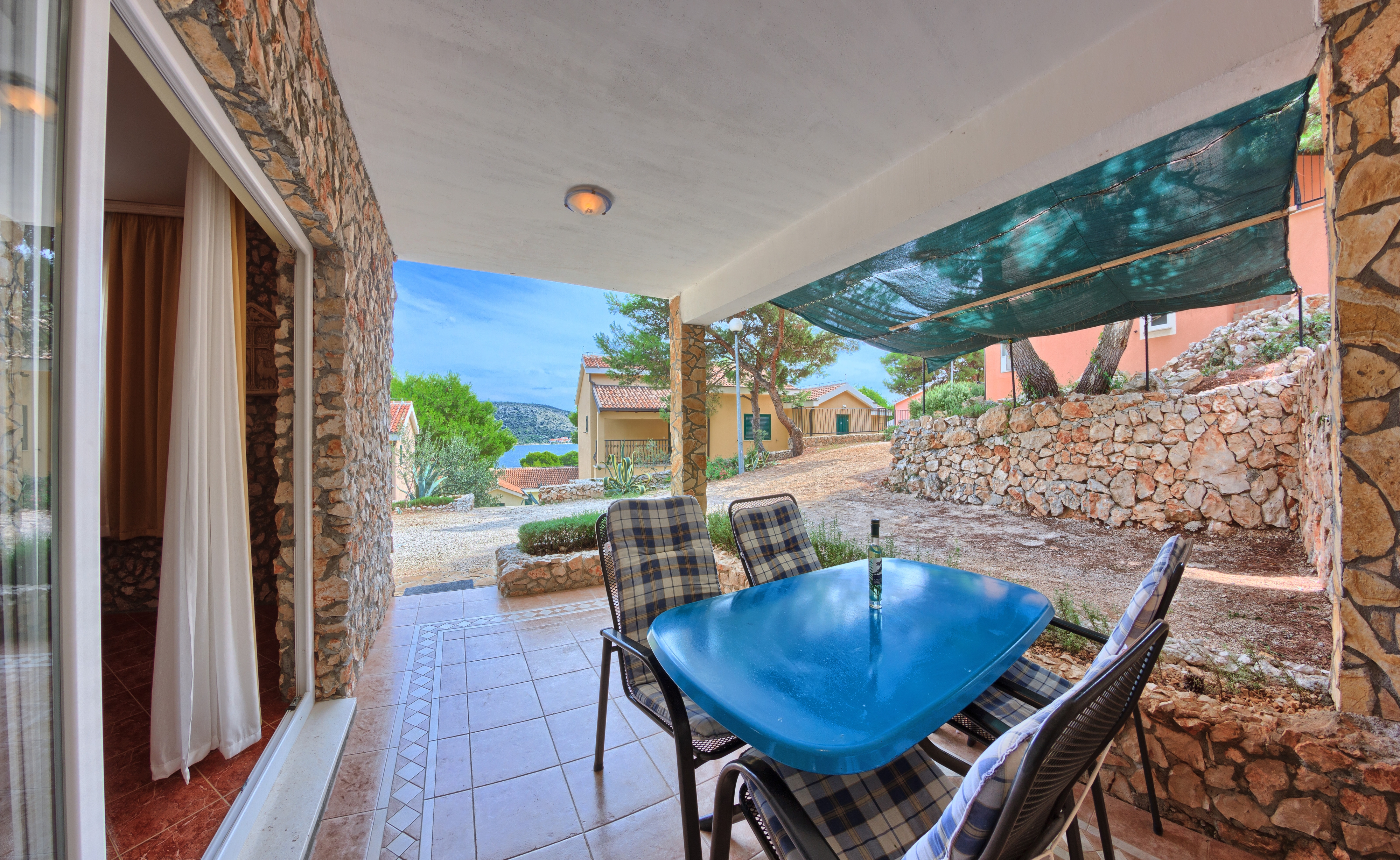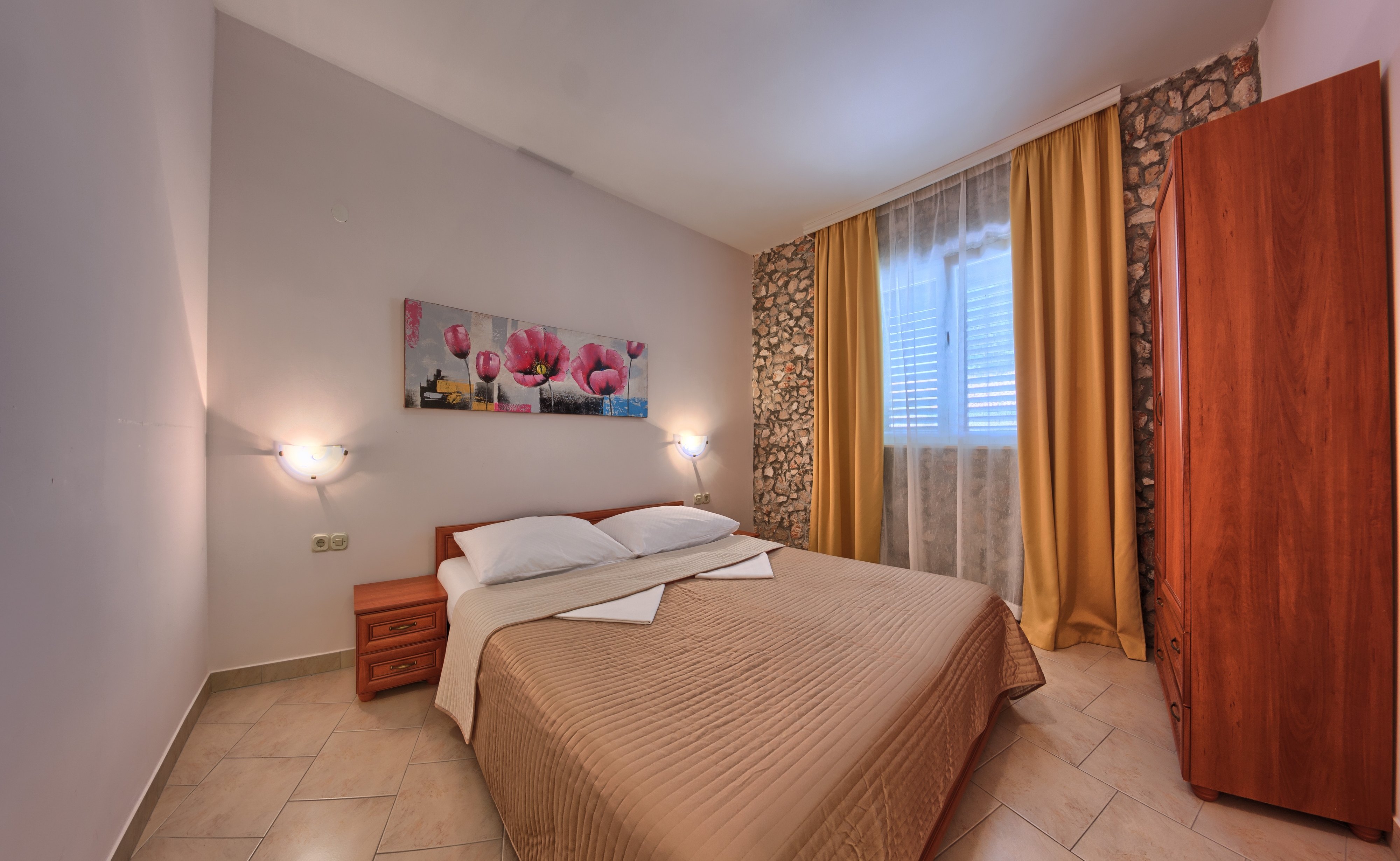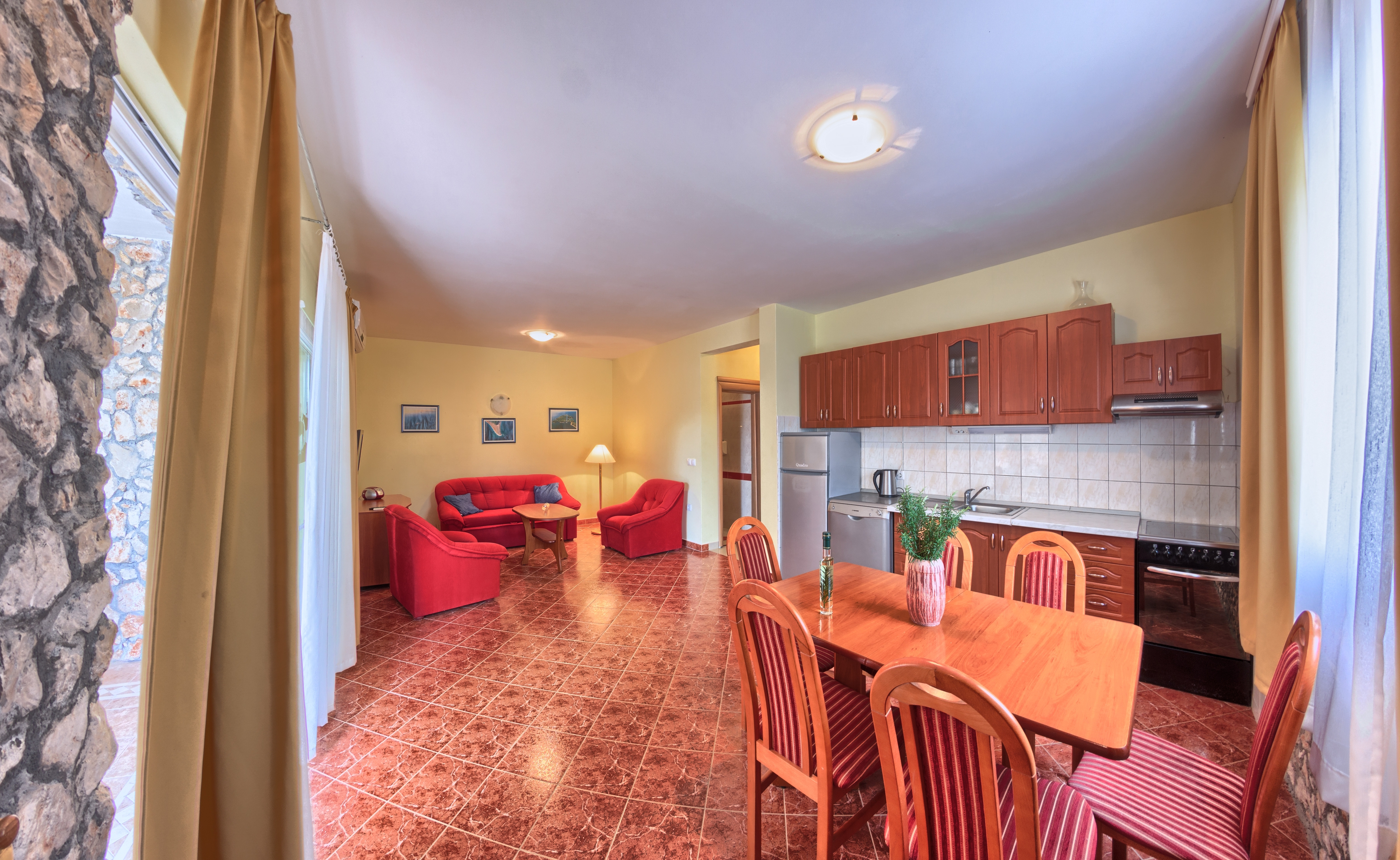 Apartament może przyjąć 7 gości. Łóżka znajdują się w sypialniach, których jest 3, oraz w pokoju dziennym, na powierzchni 92m2. Goście mają dostęp do tarasu, by korzystać z ciepłych, letnich wieczorów. Z apartamentu roztacza się widok na morze. Możliwość przygotowywania posiłków poprzez korzystanie ze wspólnego grilla. W kwaterze dozwolony jest pobyt zwierzęcia domowego, za dopłatą. WLICZONE W CENĘ: taksa pobytowa, sprzątanie końcowe, klimatyzacja, parking, internet, łóżeczko dziecięce. OBOWIĄZKOWE KOSZTY DODATKOWE: dopłata za krótki termin (procent dopłaty w zalezności od liczby noclegów: 30% - 1, 20% - 2, 10% - 3). NIEOBOWIĄZKOWE KOSZTY DODATKOWE: miejsce do cumowania łodzi (25,00 € za nocleg), zwierzęta domowe (20,00 € za nocleg). Dostępność dodatkowych usług w rezerwowanym terminie oraz ich cenę (jeśli nie jest podana) należy sprawdzić wcześniej. Za dodatowe usługi, które nie zostały uwzględnione w kalkulacji ceny, płaci się bezpośrednio właścicielowi obiektu, pod warunkiem śe gość korzysta z tych usług.