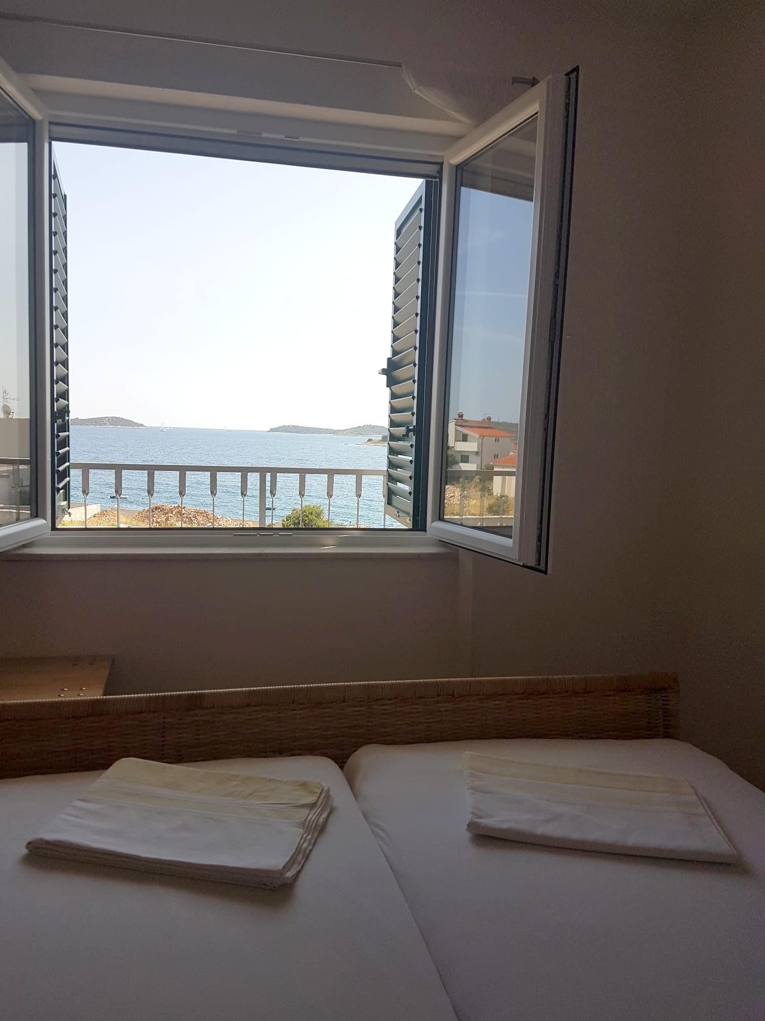Apartament może przyjąć 4 gości. Łóżka znajdują się w sypialniach, których jest 2, na powierzchni 40m2. Goście mają dostęp do tarasu, by korzystać z ciepłych, letnich wieczorów. Z apartamentu roztacza się widok na morze. W kwaterze dozwolony jest pobyt zwierzęcia domowego, za dopłatą. WLICZONE W CENĘ: taksa pobytowa, sprzątanie końcowe, klimatyzacja, parking, internet, suszarka do włosów. NIEOBOWIĄZKOWE KOSZTY DODATKOWE: pranie bielizny (5,00 € pranie), miejsce do cumowania łodzi (10,00 € za nocleg), zwierzęta domowe (10,00 € za nocleg). Dostępność dodatkowych usług w rezerwowanym terminie oraz ich cenę (jeśli nie jest podana) należy sprawdzić wcześniej. Za dodatowe usługi, które nie zostały uwzględnione w kalkulacji ceny, płaci się bezpośrednio właścicielowi obiektu, pod warunkiem śe gość korzysta z tych usług. Zniżki od ceny podstawowej: bezpłatny dzień 14=13 (przy pobycie, trwającym co najmniej 14 dni, otrzymujecie jeden bezpłatny dzień na pobyt do 31.12.2026).