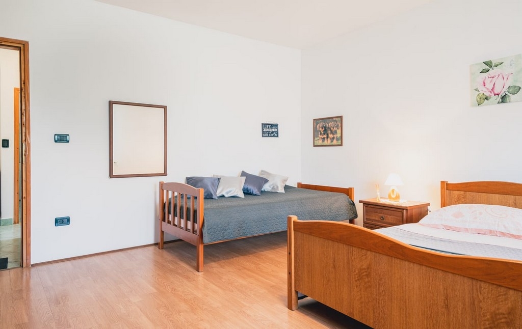 Obiekt 24730 w mieście Rovinj, Rovinj - Istria ma kwatery typu Apartament (1) i oddalona jest 760 m od morza. Plaża najbliższa obiektowi jest żwirowa. Dom jest podzielony na kilka kwater, więc będą w nim w czasie Państwa pobytu prawdopodobnie przebywać także inni goście. Gospodarze będą przebywać w obiekcie w czasie Państwa urlopu. Właściciel nie ma obowiązku przyjąć dodatkowych niezgłoszonych osób ani zwierząt domowych, dlatego też trzeba je wcześniej zgłosić.ZAWARTOŚĆ Teren wokół domu (Urządzone), Podwórko (100m2, Miejsce do siedzenia), Parking (Liczba miejsc parkingowych: 3, Odległość od obiektu: Na podwórku), Grill: wspólny, WiFi Internet, Suszarka do włosów, Żelazko, Deska do prasowania, Przenośny grill, Łóżeczko dziecięce LOKALIZACJA I DOSTĘP Obiekt znajduje się przy lokalnej drodze Pomiędzy obiektem i plażą znajduje się lokalna droga Możliwość dojazdu samochodem: Tak, Droga nieasfaltowana: 200 m Obiekt znajduje się w relatywnie cichej okolicy Obiekt jest otoczony zielenią ODLEGŁOŚCI Morze: 760 m Plaża: 1,3 km Centrum: 1,1 km Sklep: 160 m Pierwsza pomoc: 1,1 km Apteka: 900 m Kantor: 1,3 km Bankomat: 850 m Informacje turystyczne: 350 m Lotnisko: 40 km Port: 35 km Dworzec autobusowy: 1,1 km Stacja benzynowa: 1,5 km Targ: 1,5 km