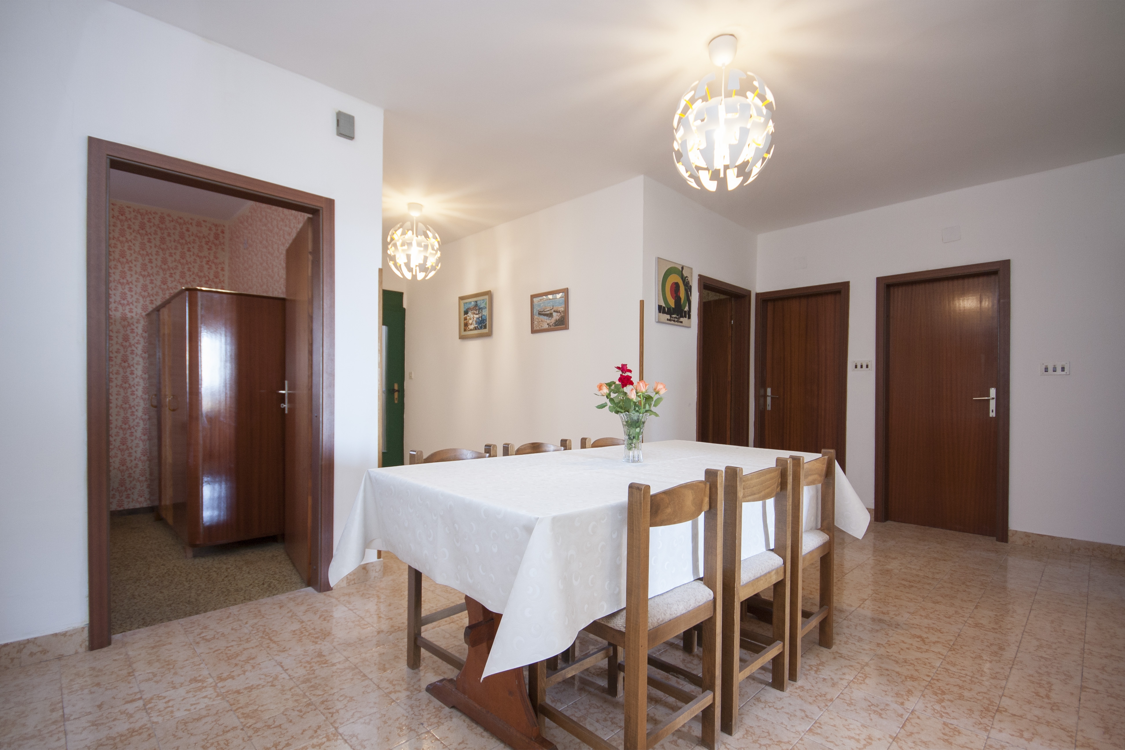Apartament może przyjąć 10 gości. Łóżka znajdują się w sypialniach, których jest 5, na powierzchni 111m2. Goście mają dostęp do tarasu, by korzystać z ciepłych, letnich wieczorów. Z apartamentu roztacza się widok na morze. Możliwość przygotowywania posiłków poprzez korzystanie ze wspólnego grilla. WLICZONE W CENĘ: taksa pobytowa, sprzątanie końcowe, klimatyzacja, parking, internet. OBOWIĄZKOWE KOSZTY DODATKOWE: dopłata za krótki termin (procent dopłaty w zalezności od liczby noclegów: 30% - 1, 20% - 2, 10% - 3). NIEOBOWIĄZKOWE KOSZTY DODATKOWE: pranie bielizny (5,00 € pranie). Dostępność dodatkowych usług w rezerwowanym terminie oraz ich cenę (jeśli nie jest podana) należy sprawdzić wcześniej. Za dodatowe usługi, które nie zostały uwzględnione w kalkulacji ceny, płaci się bezpośrednio właścicielowi obiektu, pod warunkiem śe gość korzysta z tych usług.