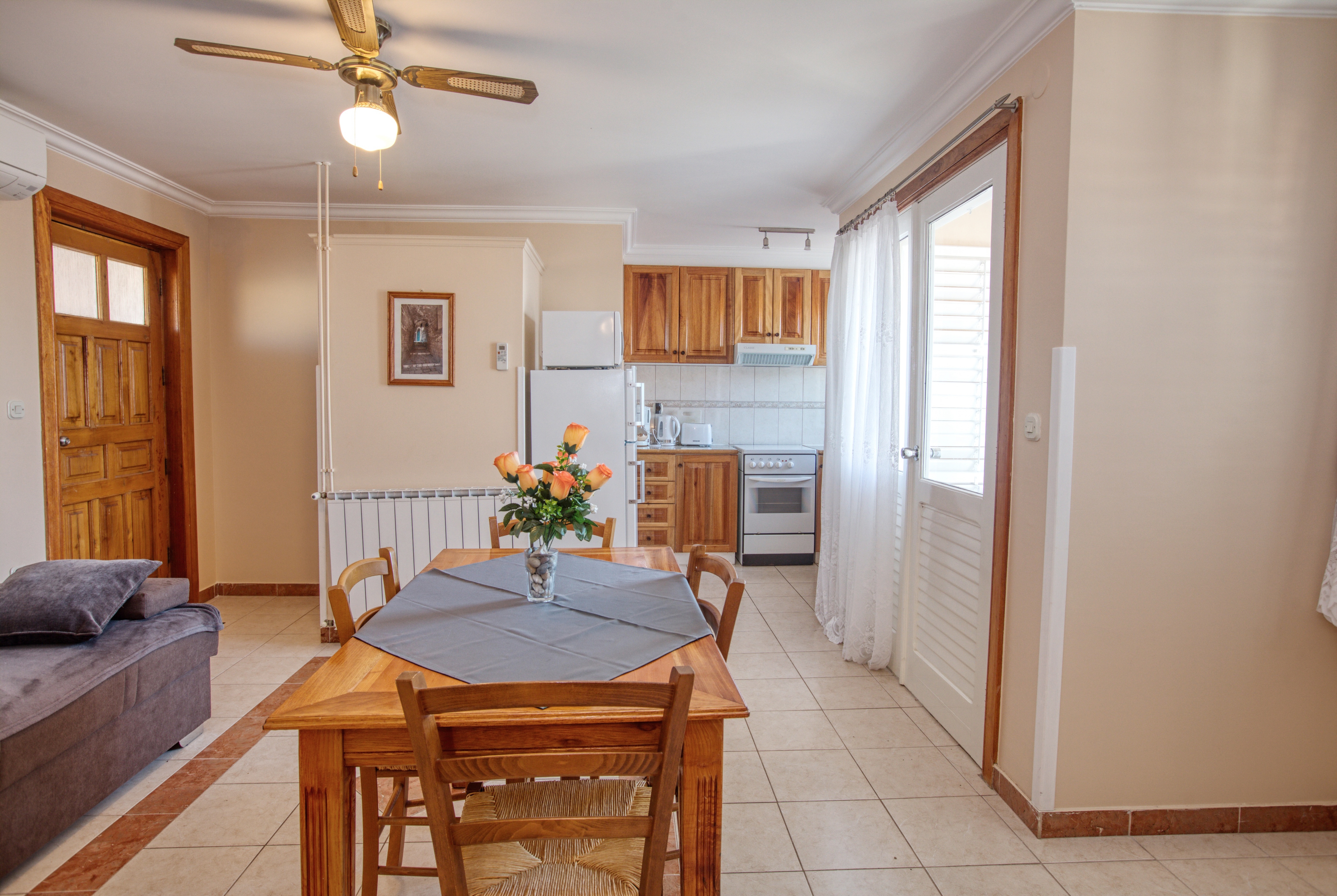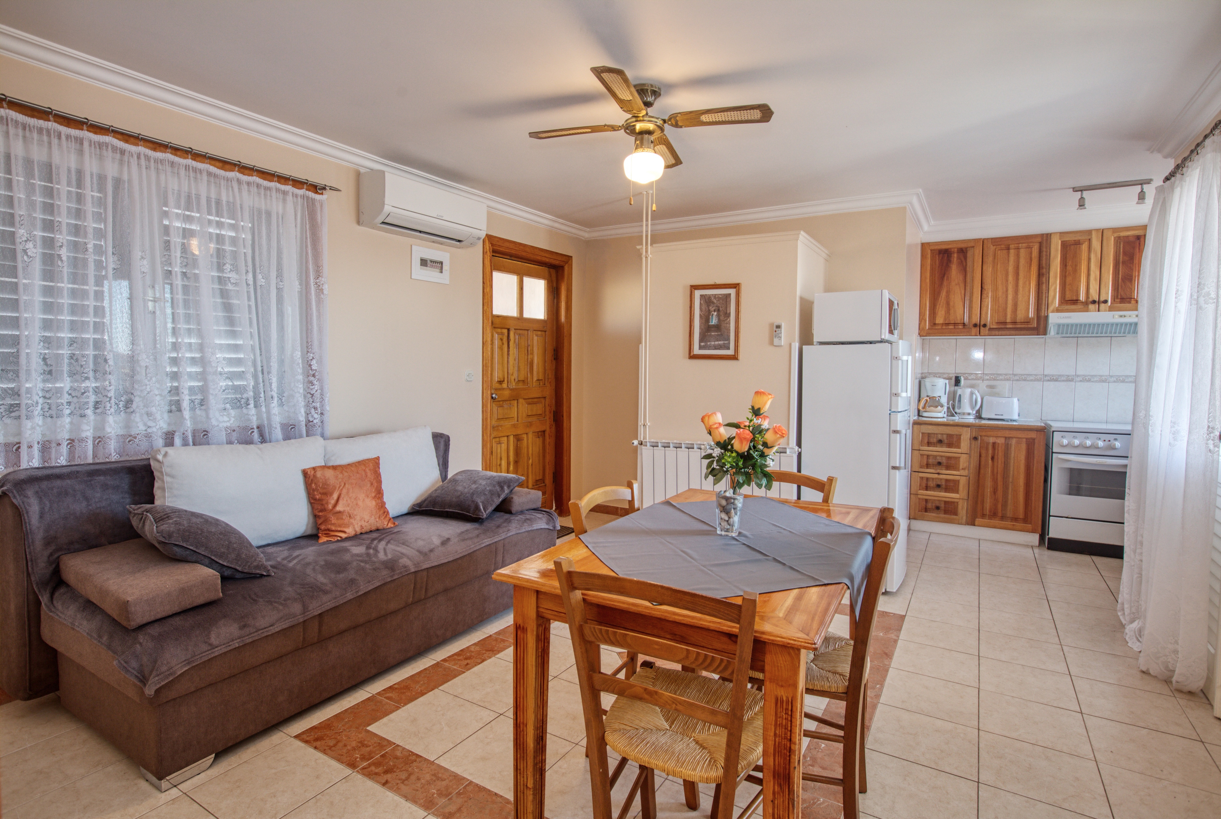 Apartament może przyjąć 4 gości. Łóżka znajdują się w sypialniach, których jest 1, oraz w pokoju dziennym, na powierzchni 38m2. Goście mają dostęp do tarasu, by korzystać z ciepłych, letnich wieczorów. Z apartamentu roztacza się widok na morze. Możliwość przygotowywania posiłków poprzez korzystanie ze wspólnego grilla. WLICZONE W CENĘ: taksa pobytowa, sprzątanie końcowe, klimatyzacja, parking, internet, miejsce do cumowania łodzi, suszarka do włosów, parasol, leżaki. NIEOBOWIĄZKOWE KOSZTY DODATKOWE: pranie bielizny (5,00 € pranie). Dostępność dodatkowych usług w rezerwowanym terminie oraz ich cenę (jeśli nie jest podana) należy sprawdzić wcześniej. Za dodatowe usługi, które nie zostały uwzględnione w kalkulacji ceny, płaci się bezpośrednio właścicielowi obiektu, pod warunkiem śe gość korzysta z tych usług. Zniżki od ceny podstawowej: bezpłatny dzień 14=13 (przy pobycie, trwającym co najmniej 14 dni, otrzymujecie jeden bezpłatny dzień na pobyt do 31.12.2026).
