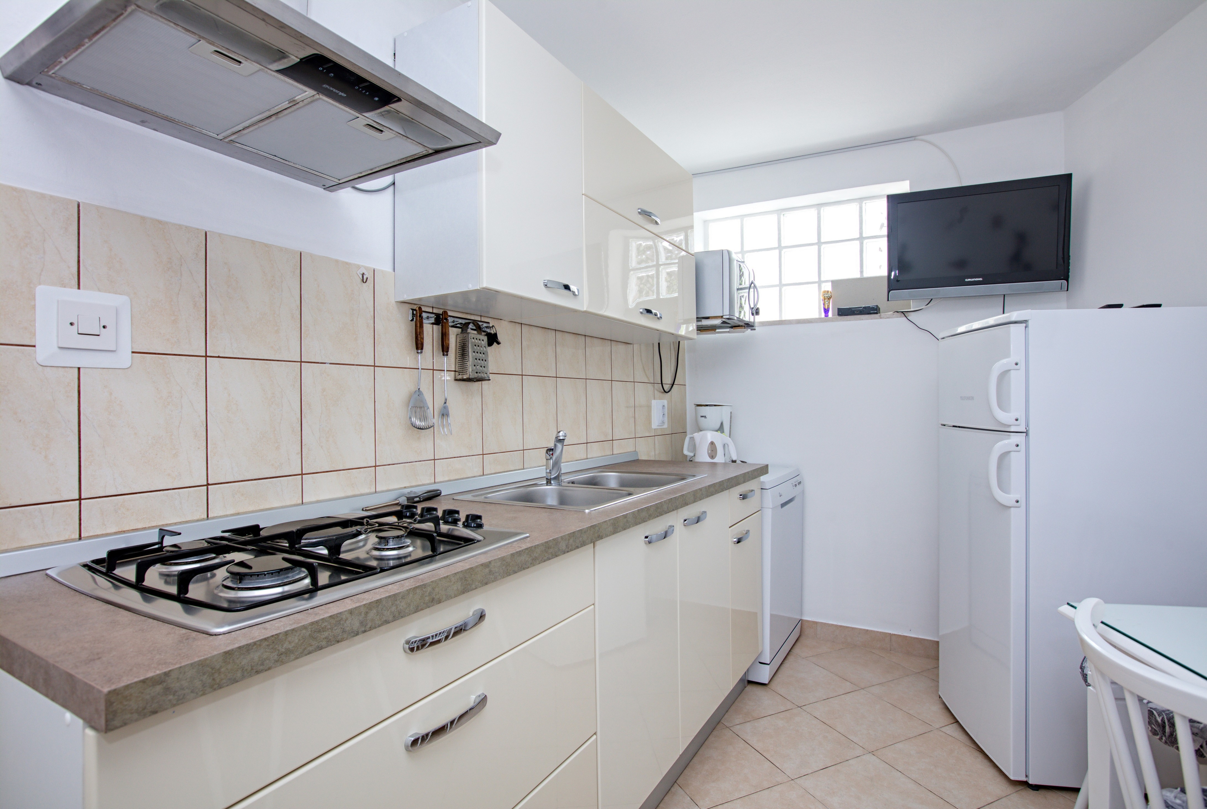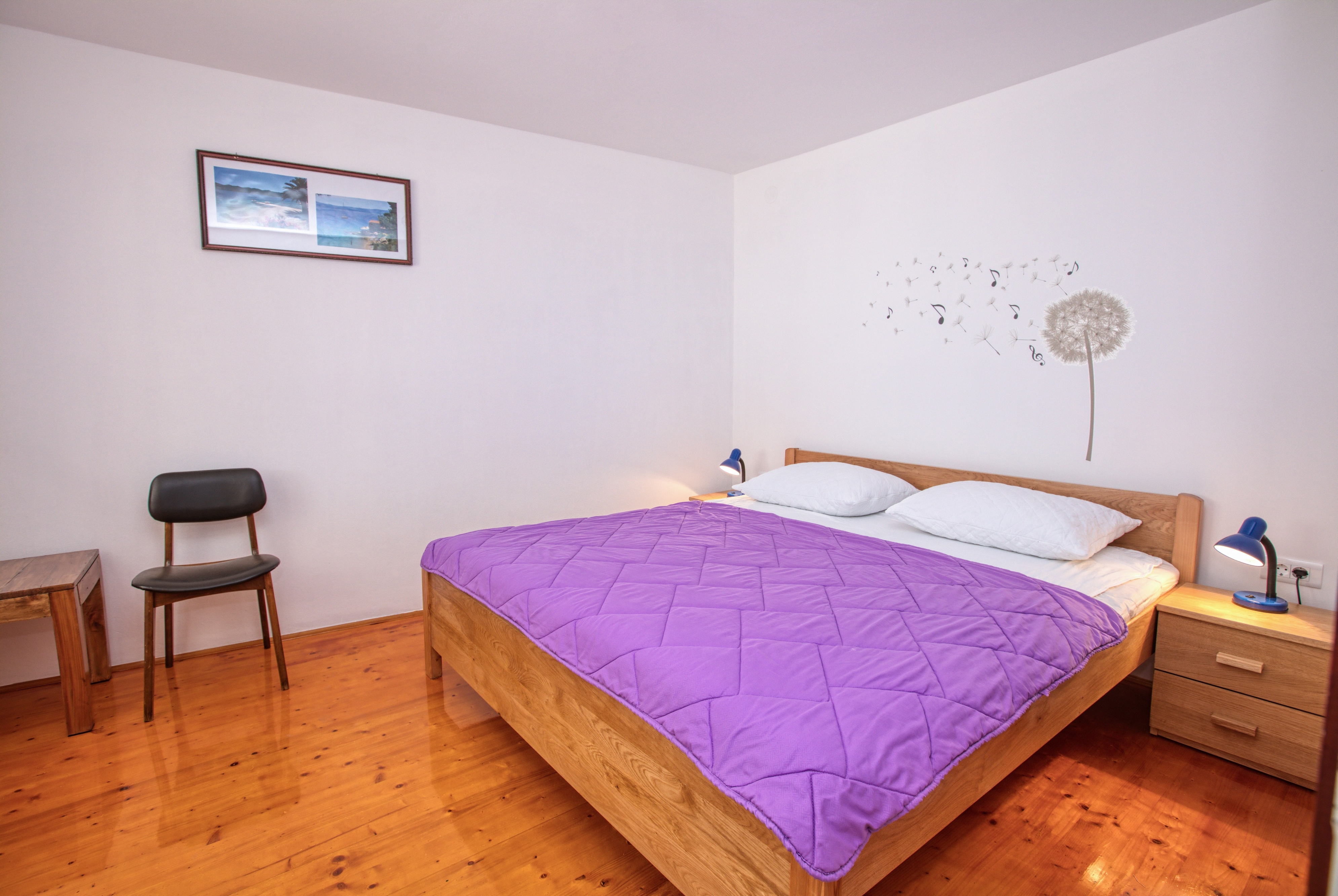 Apartament może przyjąć 4 gości. Łóżka znajdują się w sypialniach, których jest 2, na powierzchni 46m2. Goście mają dostęp do tarasu, by korzystać z ciepłych, letnich wieczorów. Z apartamentu roztacza się widok na morze. Możliwość przygotowywania posiłków poprzez korzystanie ze wspólnego grilla. WLICZONE W CENĘ: taksa pobytowa, sprzątanie końcowe, klimatyzacja, parking, internet, pranie bielizny, żelazko, deska do prasowania. OBOWIĄZKOWE KOSZTY DODATKOWE: dopłata za krótki termin (procent dopłaty w zalezności od liczby noclegów: 30% - 1, 20% - 2, 10% - 3). Dostępność dodatkowych usług w rezerwowanym terminie oraz ich cenę (jeśli nie jest podana) należy sprawdzić wcześniej. Za dodatowe usługi, które nie zostały uwzględnione w kalkulacji ceny, płaci się bezpośrednio właścicielowi obiektu, pod warunkiem śe gość korzysta z tych usług.