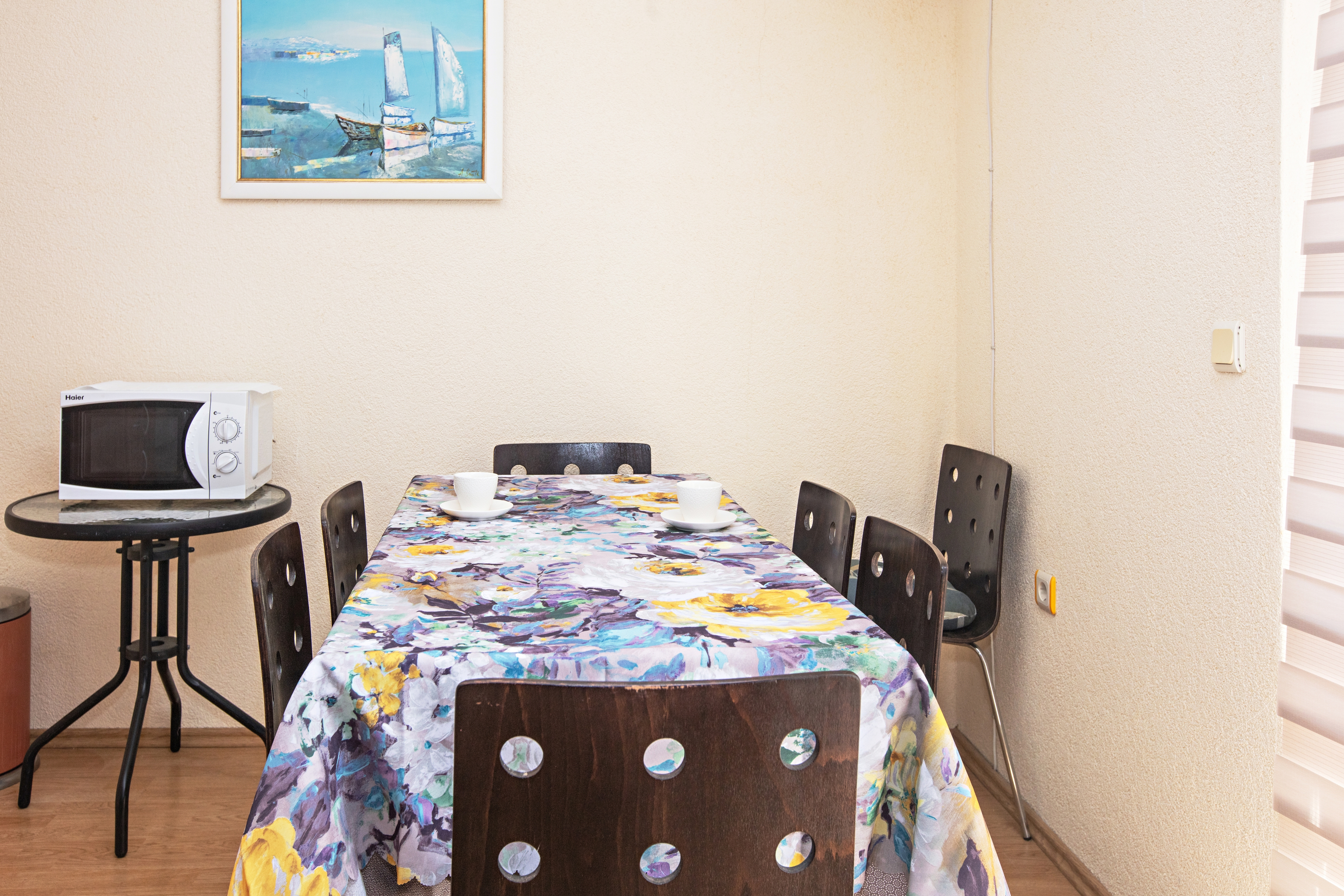 Apartament może przyjąć 8 gości. Łóżka znajdują się w sypialniach, których jest 3, oraz w pokoju dziennym, na powierzchni 69m2. Goście mają dostęp do balkonu, by korzystać z ciepłych, letnich wieczorów. Z apartamentu roztacza się widok na morze. Możliwość przygotowywania posiłków poprzez korzystanie ze wspólnego grilla. Do kwatery można przyjechać ze zwierzęciem domowym, a usługa jest wliczona w cenę wynajęcia kwatery. WLICZONE W CENĘ: taksa pobytowa, sprzątanie końcowe, klimatyzacja, parking, internet, pranie bielizny, zwierzęta domowe, łóżeczko dziecięce, żelazko, deska do prasowania, suszarka do włosów. OBOWIĄZKOWE KOSZTY DODATKOWE: dopłata za krótki termin (procent dopłaty w zalezności od liczby noclegów: 30% - 1, 20% - 2, 10% - 3). Dostępność dodatkowych usług w rezerwowanym terminie oraz ich cenę (jeśli nie jest podana) należy sprawdzić wcześniej. Za dodatowe usługi, które nie zostały uwzględnione w kalkulacji ceny, płaci się bezpośrednio właścicielowi obiektu, pod warunkiem śe gość korzysta z tych usług.