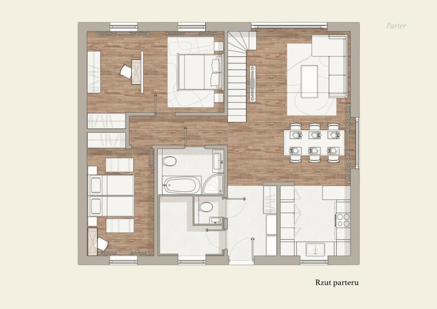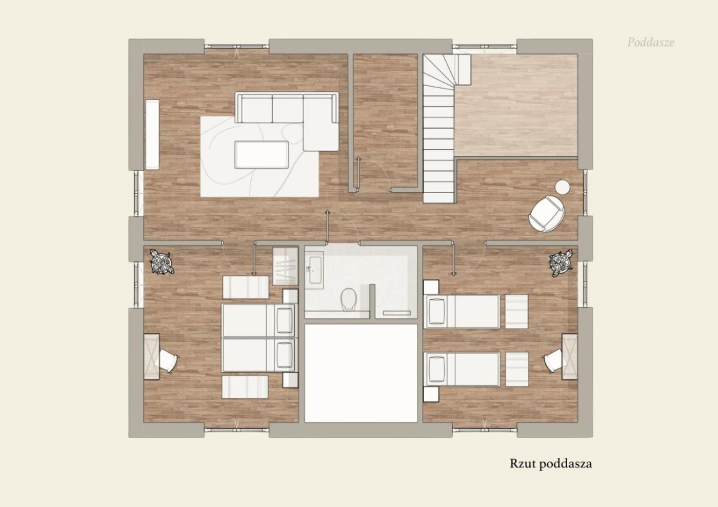 Willa. The fully equipped kitchen has a stovetop, a refrigerator, a dishwasher and an oven. The villa features parquet floors, a seating area with a flat-screen TV, a private entrance, a dining area as well as garden views. The unit has 3 beds. Willa - 10 osobowy. Powierzchnia pokoju ok.: 168 mkw.