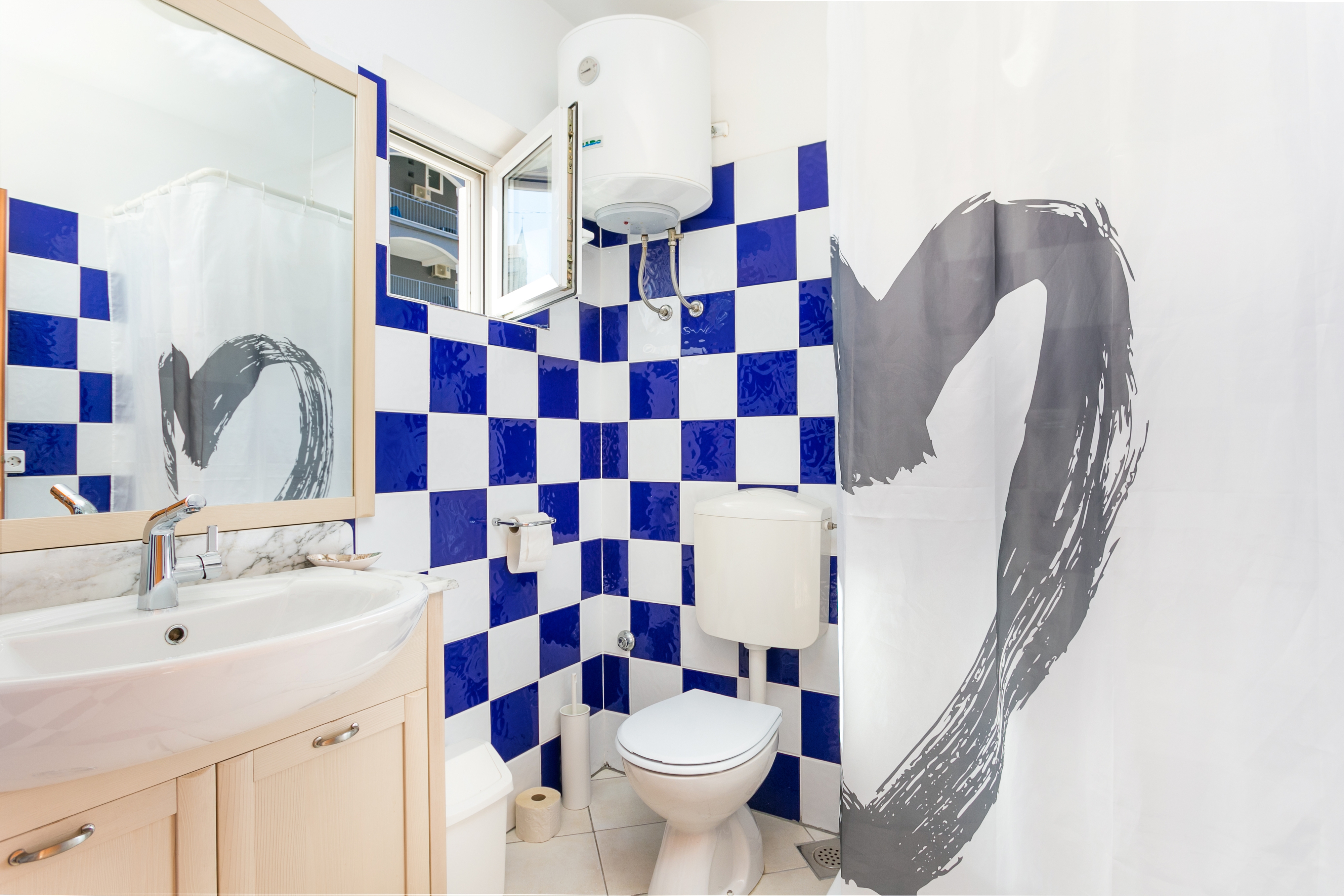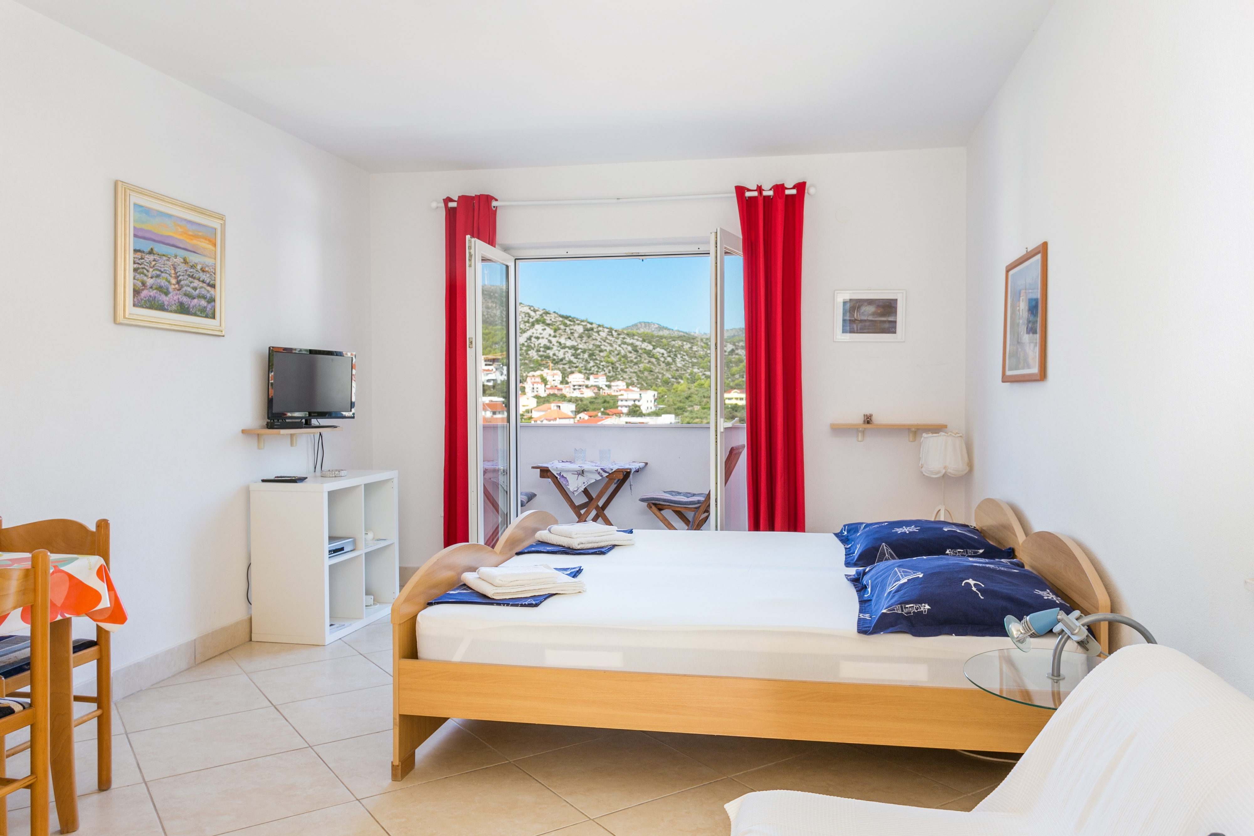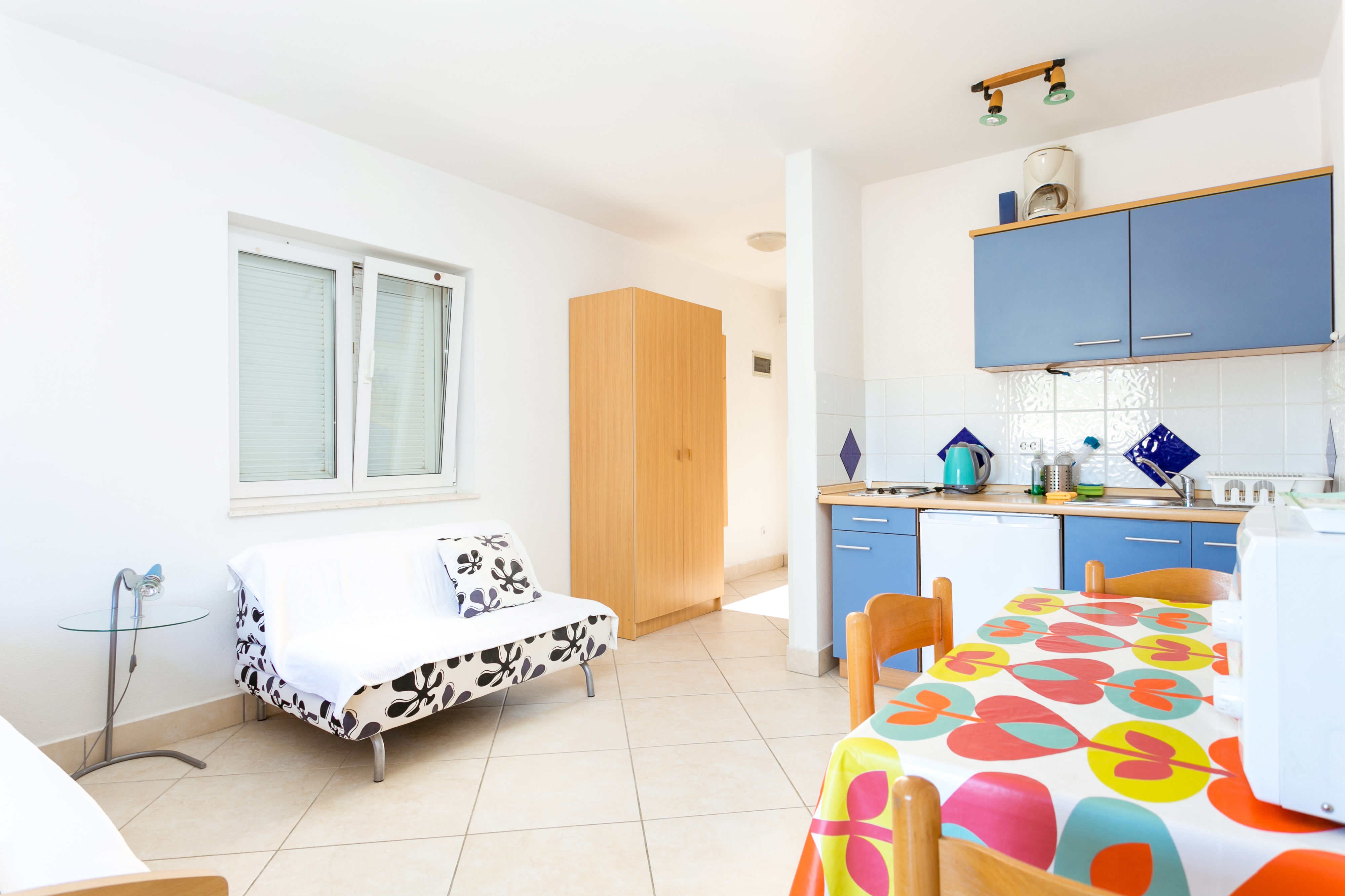 Studio może przyjąć 2 gości. Łóżka znajdują się w sypialniach, których jest 1, na powierzchni 29m2. Goście mają dostęp do balkonu, by korzystać z ciepłych, letnich wieczorów. Z apartamentu typu studio roztacza się widok na morze. Możliwość przygotowywania posiłków poprzez korzystanie ze wspólnego grilla. W trakcie swojego pobytu goście mogą korzystać ze wspólnego basenu. W kwaterze dozwolony jest pobyt zwierzęcia domowego, za dopłatą. WLICZONE W CENĘ: taksa pobytowa, sprzątanie końcowe, klimatyzacja, basen, parking, internet, łóżeczko dziecięce, żelazko, deska do prasowania, suszarka do włosów. NIEOBOWIĄZKOWE KOSZTY DODATKOWE: zwierzęta domowe (5,00 € za nocleg). Dostępność dodatkowych usług w rezerwowanym terminie oraz ich cenę (jeśli nie jest podana) należy sprawdzić wcześniej. Za dodatowe usługi, które nie zostały uwzględnione w kalkulacji ceny, płaci się bezpośrednio właścicielowi obiektu, pod warunkiem śe gość korzysta z tych usług.