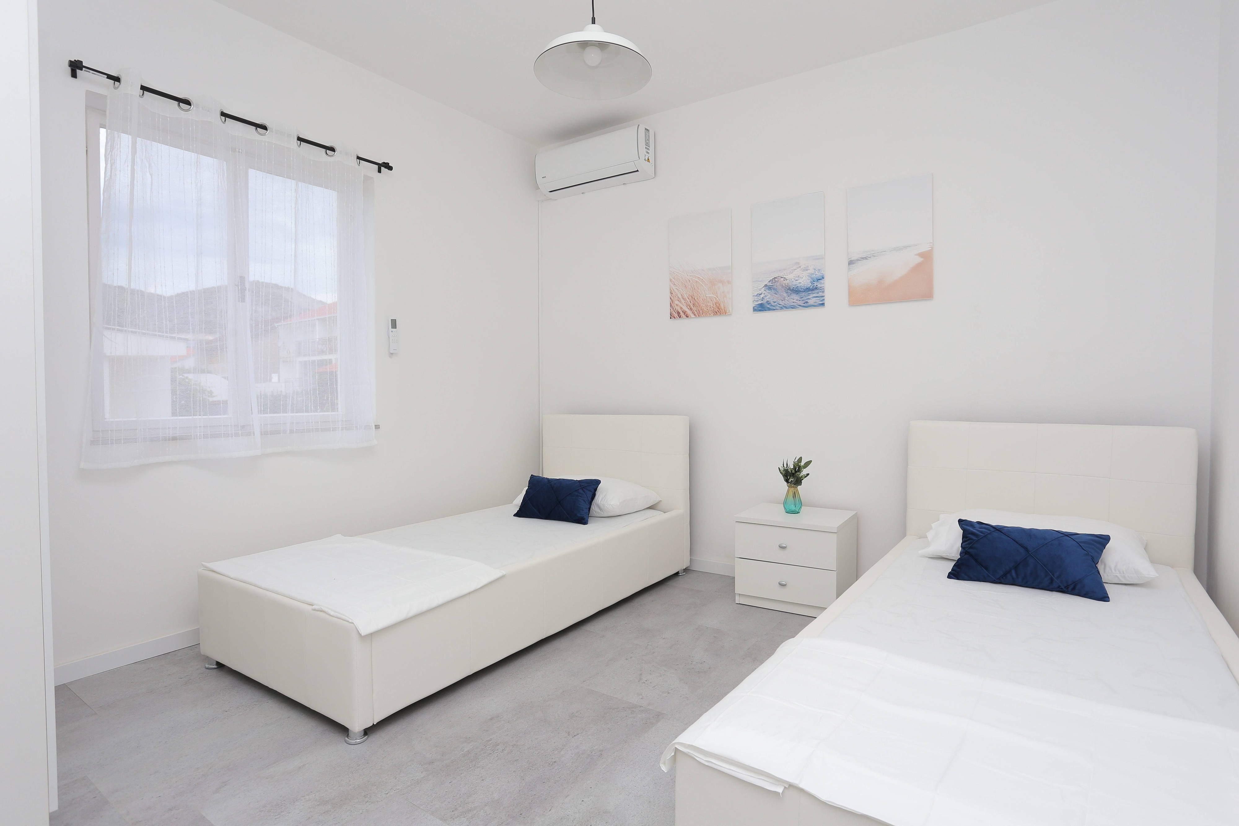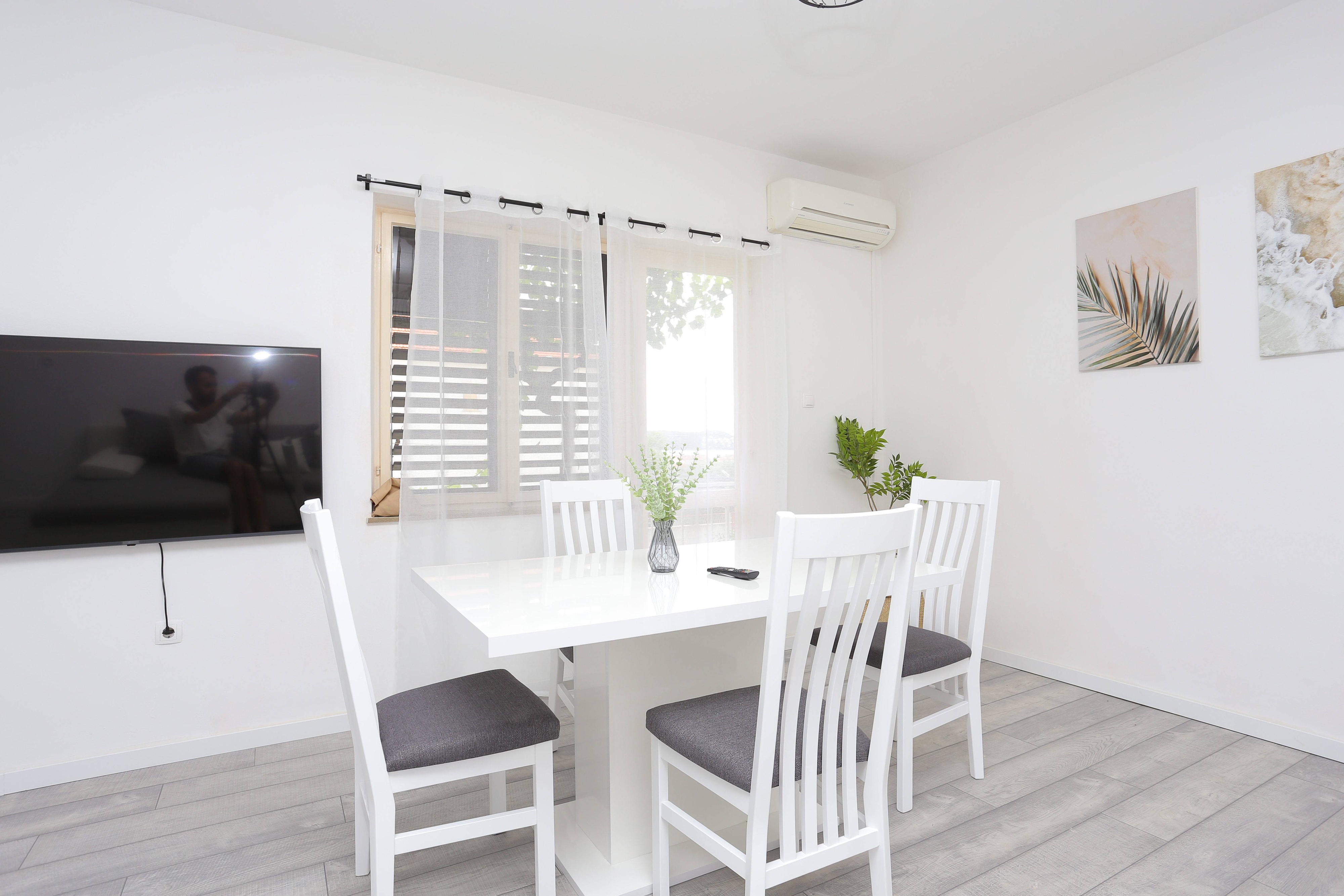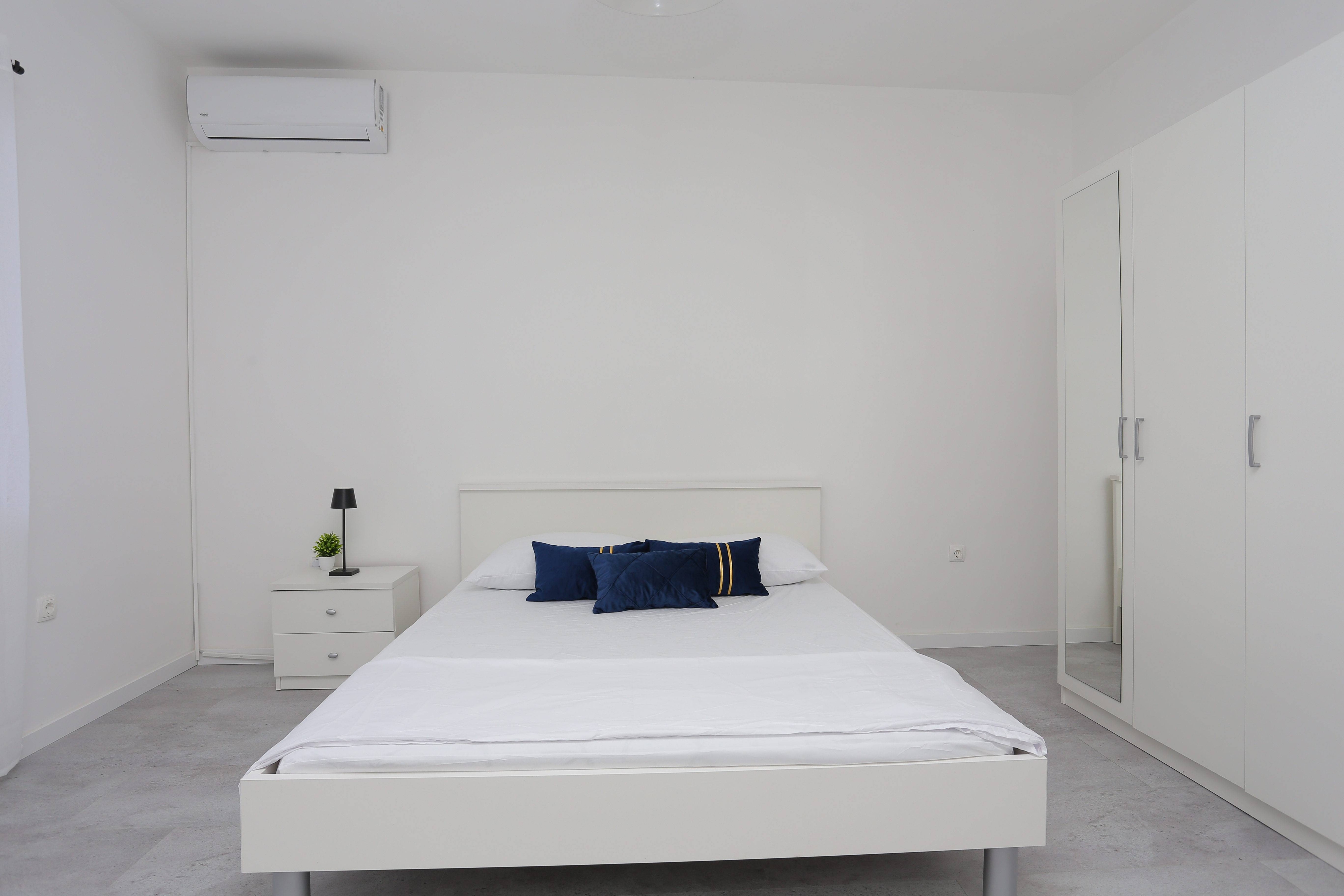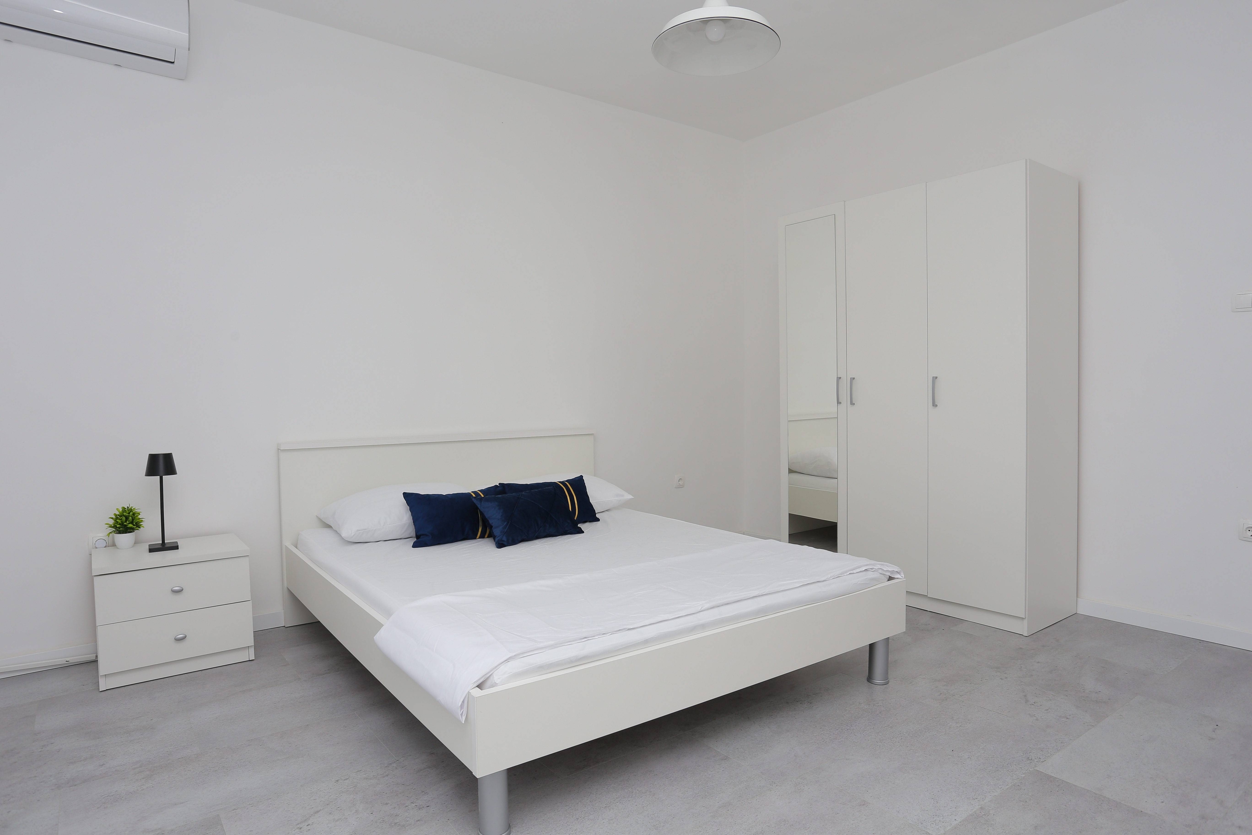 Apartament może przyjąć 6 gości. Łóżka znajdują się w sypialniach, których jest 2, oraz w pokoju dziennym, na powierzchni 67m2. Goście mają dostęp do balkonu, by korzystać z ciepłych, letnich wieczorów. Z apartamentu roztacza się widok na morze. Możliwość przygotowywania posiłków poprzez korzystanie ze wspólnego grilla. W kwaterze dozwolony jest pobyt zwierzęcia domowego, za dopłatą. WLICZONE W CENĘ: taksa pobytowa, sprzątanie końcowe, klimatyzacja, parking, internet. NIEOBOWIĄZKOWE KOSZTY DODATKOWE: zwierzęta domowe (10,00 € za nocleg). Dostępność dodatkowych usług w rezerwowanym terminie oraz ich cenę (jeśli nie jest podana) należy sprawdzić wcześniej. Za dodatowe usługi, które nie zostały uwzględnione w kalkulacji ceny, płaci się bezpośrednio właścicielowi obiektu, pod warunkiem śe gość korzysta z tych usług.