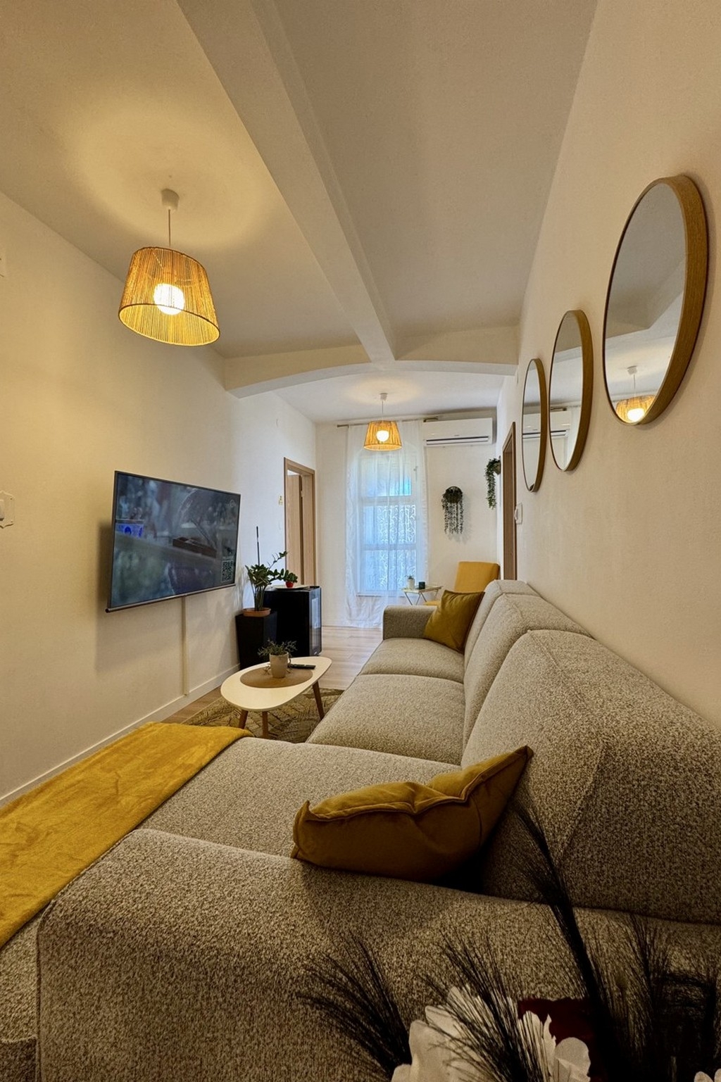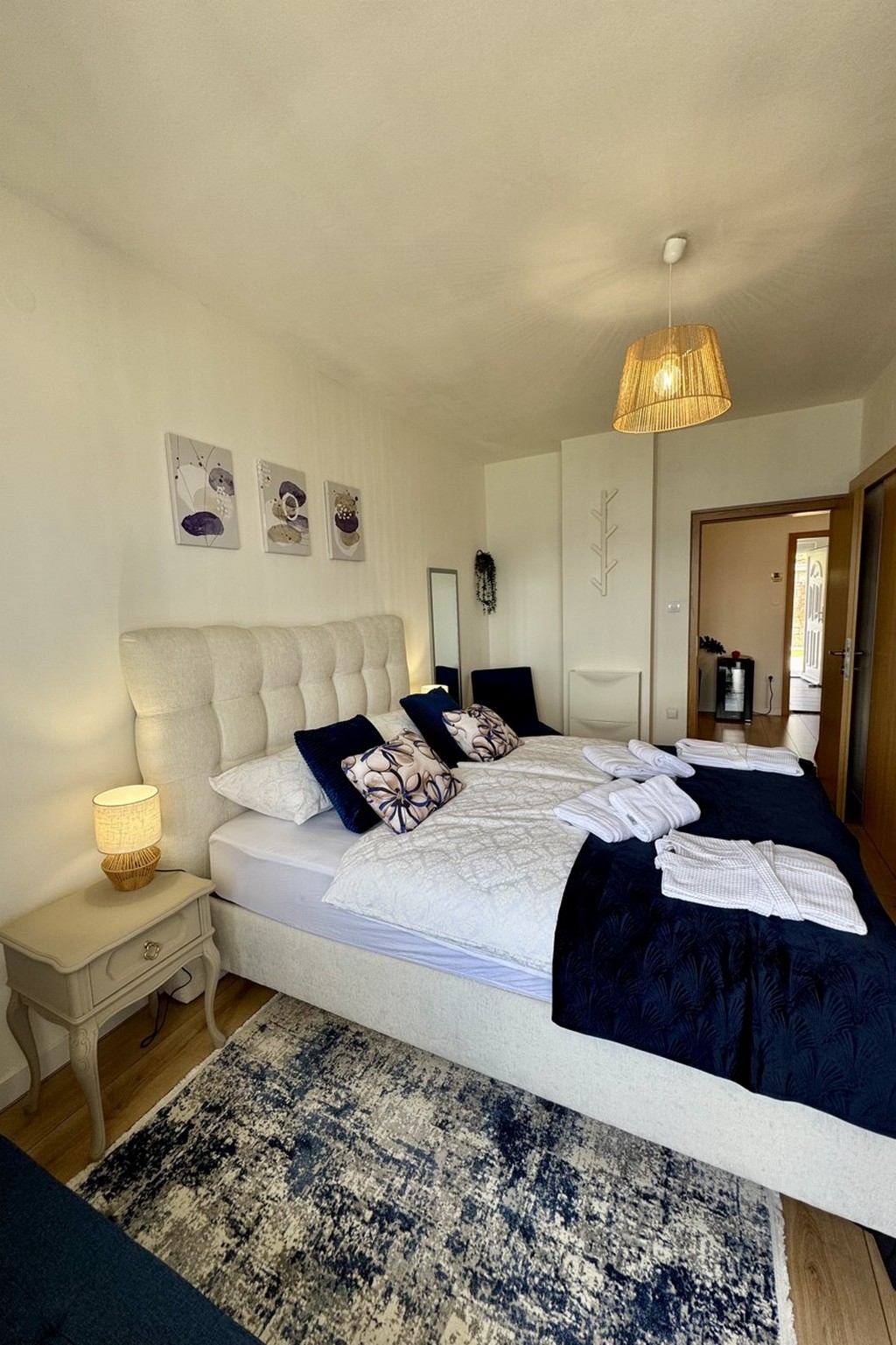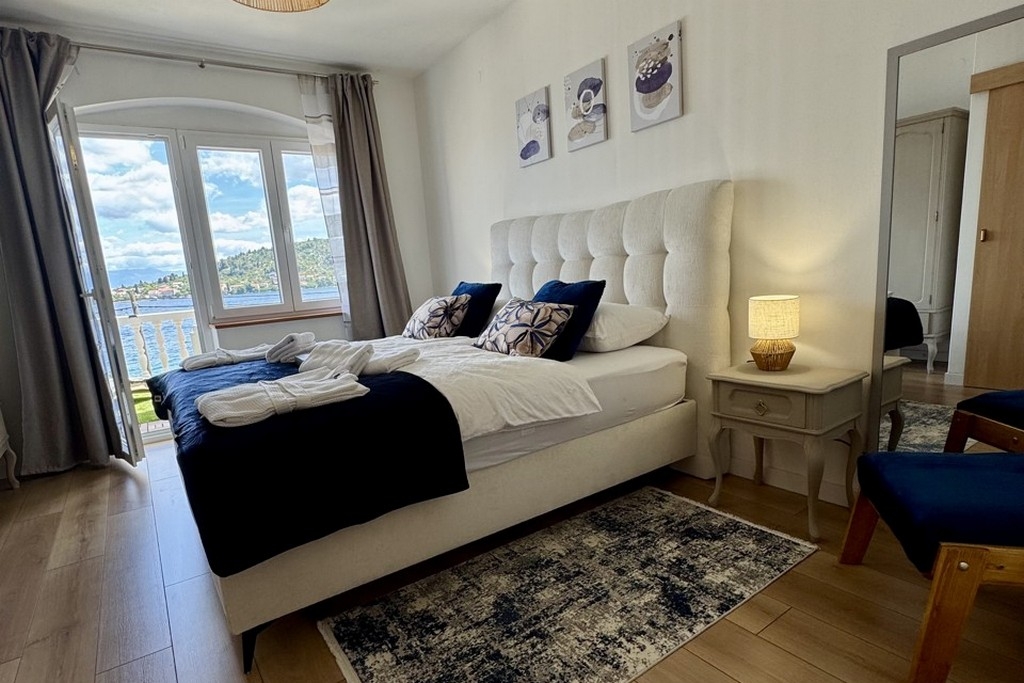 Apartament może przyjąć 4 gości. Łóżka znajdują się w sypialniach, których jest 2, na powierzchni 58m2. Goście mają dostęp do tarasu, by korzystać z ciepłych, letnich wieczorów. Z apartamentu roztacza się widok na morze. Możliwość przygotowywania posiłków poprzez korzystanie ze wspólnego grilla. W kwaterze dozwolony jest pobyt zwierzęcia domowego, za dopłatą. WLICZONE W CENĘ: taksa pobytowa, sprzątanie końcowe, klimatyzacja, parking, internet, łóżeczko dziecięce, żelazko, deska do prasowania, suszarka do włosów. NIEOBOWIĄZKOWE KOSZTY DODATKOWE: zwierzęta domowe (10,00 € za nocleg). Dostępność dodatkowych usług w rezerwowanym terminie oraz ich cenę (jeśli nie jest podana) należy sprawdzić wcześniej. Za dodatowe usługi, które nie zostały uwzględnione w kalkulacji ceny, płaci się bezpośrednio właścicielowi obiektu, pod warunkiem śe gość korzysta z tych usług. Zniżki od ceny podstawowej: bezpłatny dzień 14=13 (przy pobycie, trwającym co najmniej 14 dni, otrzymujecie jeden bezpłatny dzień na pobyt do 31.12.2026).