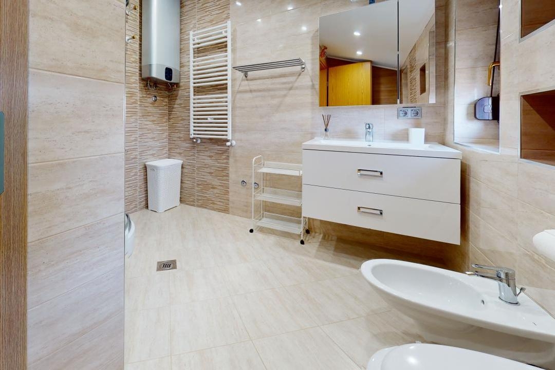 Apartament może przyjąć 6 gości. Łóżka znajdują się w sypialniach, których jest 2, oraz w pokoju dziennym, na powierzchni 96m2. Goście mają dostęp do tarasu, by korzystać z ciepłych, letnich wieczorów. Z apartamentu roztacza się widok na morze. Możliwość przygotowywania posiłków poprzez korzystanie ze wspólnego grilla. WLICZONE W CENĘ: taksa pobytowa, sprzątanie końcowe, klimatyzacja, centralne ogrzewanie, parking, internet, żelazko, suszarka do włosów. Dostępność dodatkowych usług w rezerwowanym terminie oraz ich cenę (jeśli nie jest podana) należy sprawdzić wcześniej. Za dodatowe usługi, które nie zostały uwzględnione w kalkulacji ceny, płaci się bezpośrednio właścicielowi obiektu, pod warunkiem śe gość korzysta z tych usług. Zniżki od ceny podstawowej: bezpłatny dzień 14=13 (przy pobycie, trwającym co najmniej 14 dni, otrzymujecie jeden bezpłatny dzień na pobyt do 31.12.2026).