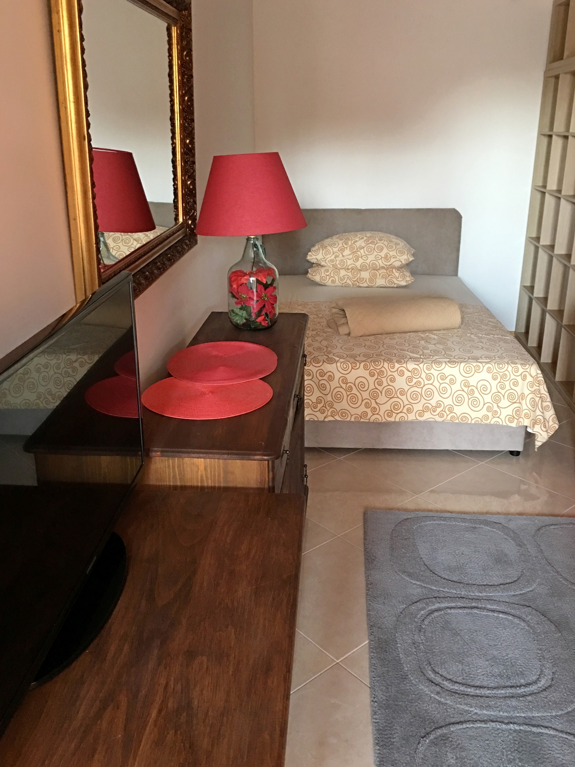 Apartament może przyjąć 4 gości. Łóżka znajdują się w sypialniach, których jest 2, na powierzchni 44m2. Goście mają dostęp do tarasu, by korzystać z ciepłych, letnich wieczorów. Z apartamentu roztacza się widok na morze. Możliwość przygotowywania posiłków poprzez korzystanie ze wspólnego grilla. W kwaterze dozwolony jest pobyt zwierzęcia domowego, za dopłatą. WLICZONE W CENĘ: taksa pobytowa, sprzątanie końcowe, klimatyzacja, parking, internet, miejsce do cumowania łodzi, żelazko, deska do prasowania, suszarka do włosów. NIEOBOWIĄZKOWE KOSZTY DODATKOWE: łódź (15,00 € za nocleg), zwierzęta domowe (5,00 € za nocleg). Dostępność dodatkowych usług w rezerwowanym terminie oraz ich cenę (jeśli nie jest podana) należy sprawdzić wcześniej. Za dodatowe usługi, które nie zostały uwzględnione w kalkulacji ceny, płaci się bezpośrednio właścicielowi obiektu, pod warunkiem śe gość korzysta z tych usług.
