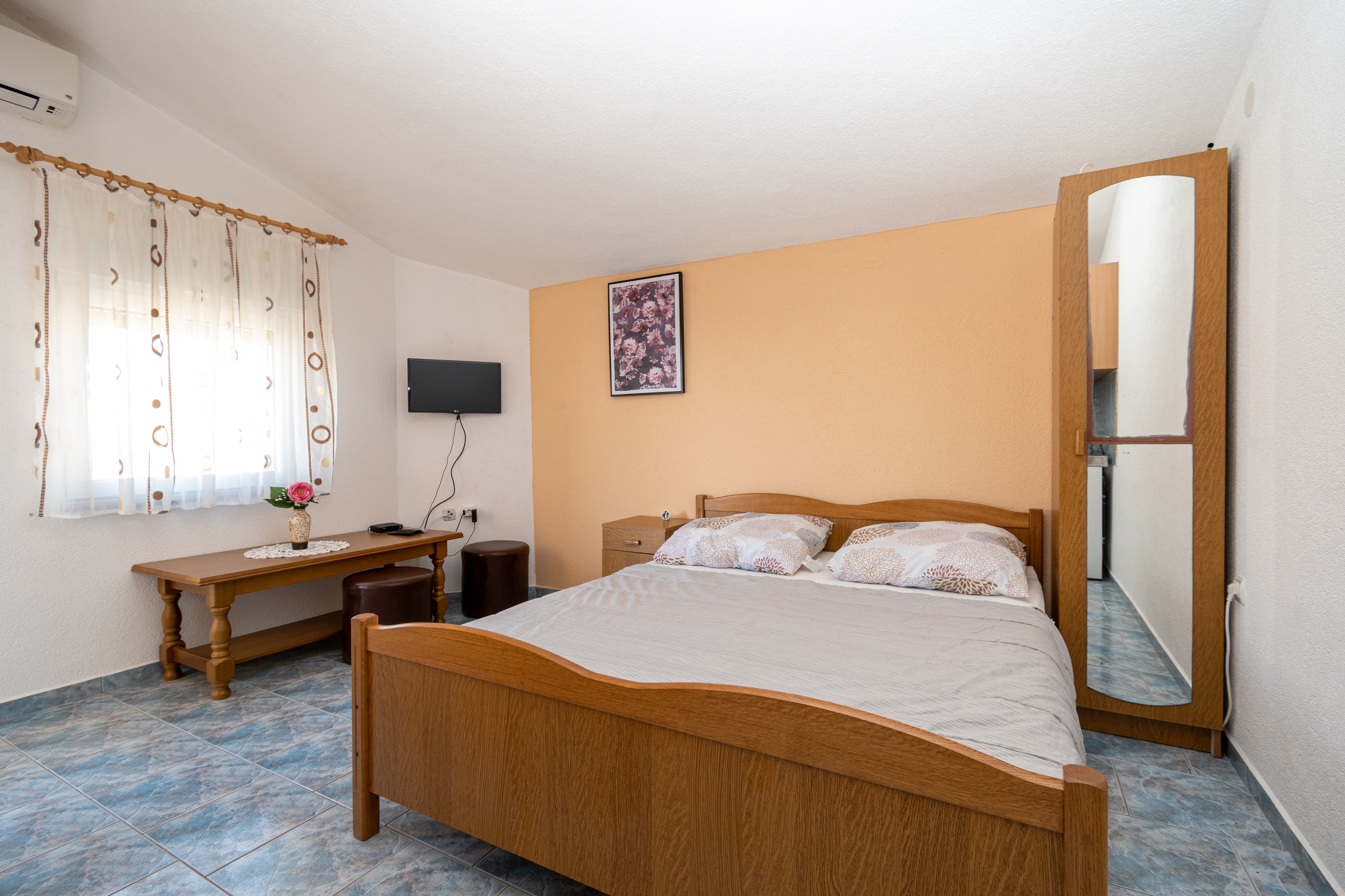 Obiekt 20177 w mieście Vir, Vir - Północna Dalmacja ma kwatery typu Apartament (2), Studio (4) i oddalona jest 230 m od morza. Plaża najbliższa obiektowi jest żwirowa. Dom jest podzielony na kilka kwater, więc będą w nim w czasie Państwa pobytu prawdopodobnie przebywać także inni goście. Gospodarze będą przebywać w obiekcie w czasie Państwa urlopu. Właściciel nie ma obowiązku przyjąć dodatkowych niezgłoszonych osób ani zwierząt domowych, dlatego też trzeba je wcześniej zgłosić.ZAWARTOŚĆ Podwórko (300m2), Parking (Liczba miejsc parkingowych: 8, Odległość od obiektu: Na podwórku), Grill: wspólny, WiFi Internet LOKALIZACJA I DOSTĘP Obiekt znajduje się przy głównej drodze Pomiędzy obiektem i plażą znajduje się lokalna droga Możliwość dojazdu samochodem: Tak Obiekt znajduje się w relatywnie cichej okolicy ODLEGŁOŚCI Morze: 230 m Plaża: 230 m Centrum: 1,9 km Sklep: 550 m Kantor: 1,8 km Bankomat: 800 m Stacja benzynowa: 2,5 km