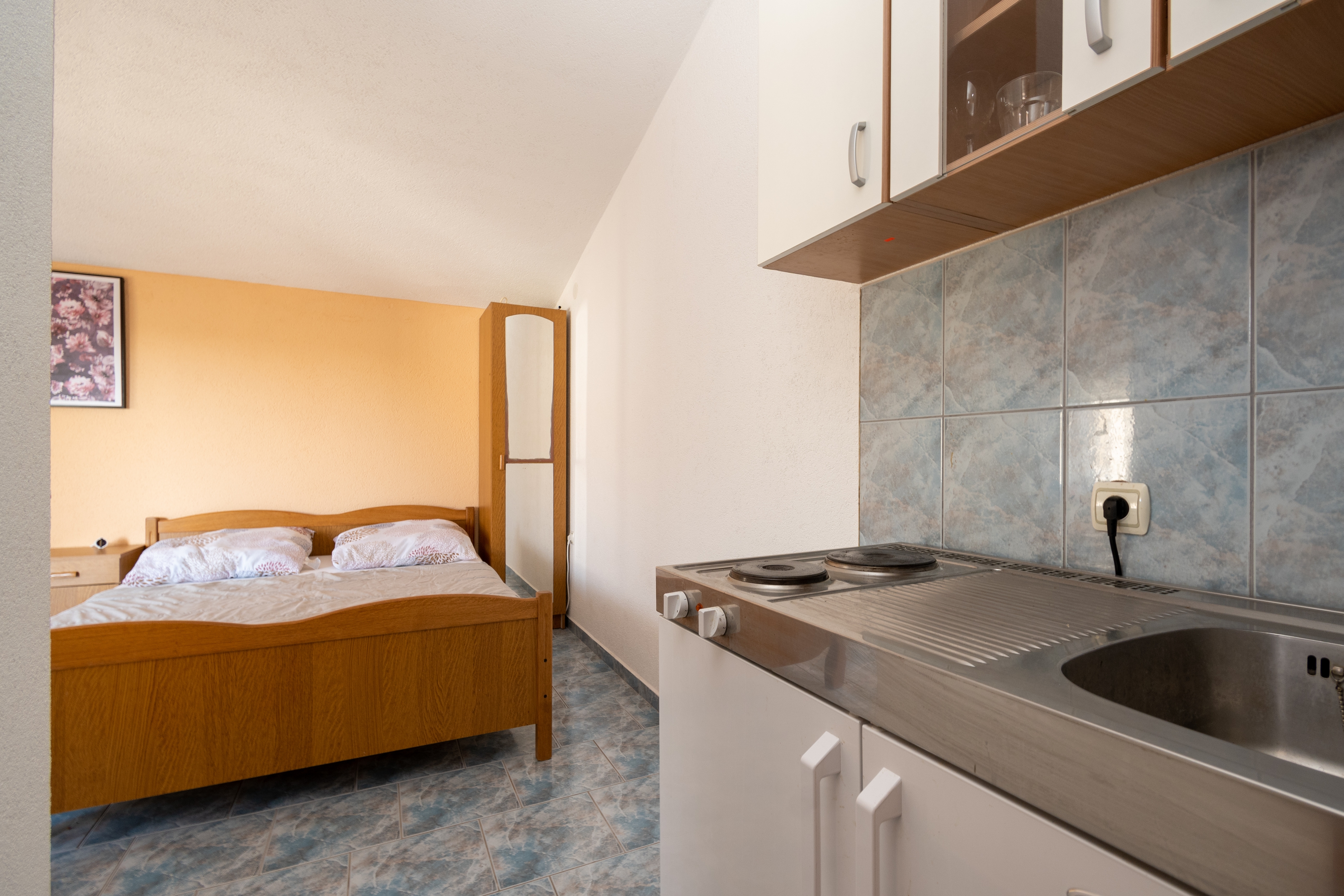 Studio może przyjąć 2 gości. Łóżka znajdują się w sypialniach, których jest 1, na powierzchni 18m2. Goście mają dostęp do balkonu, by korzystać z ciepłych, letnich wieczorów. Możliwość przygotowywania posiłków poprzez korzystanie ze wspólnego grilla. WLICZONE W CENĘ: taksa pobytowa, sprzątanie końcowe, parking, internet. NIEOBOWIĄZKOWE KOSZTY DODATKOWE: klimatyzacja (10,00 € za nocleg). Dostępność dodatkowych usług w rezerwowanym terminie oraz ich cenę (jeśli nie jest podana) należy sprawdzić wcześniej. Za dodatowe usługi, które nie zostały uwzględnione w kalkulacji ceny, płaci się bezpośrednio właścicielowi obiektu, pod warunkiem śe gość korzysta z tych usług.