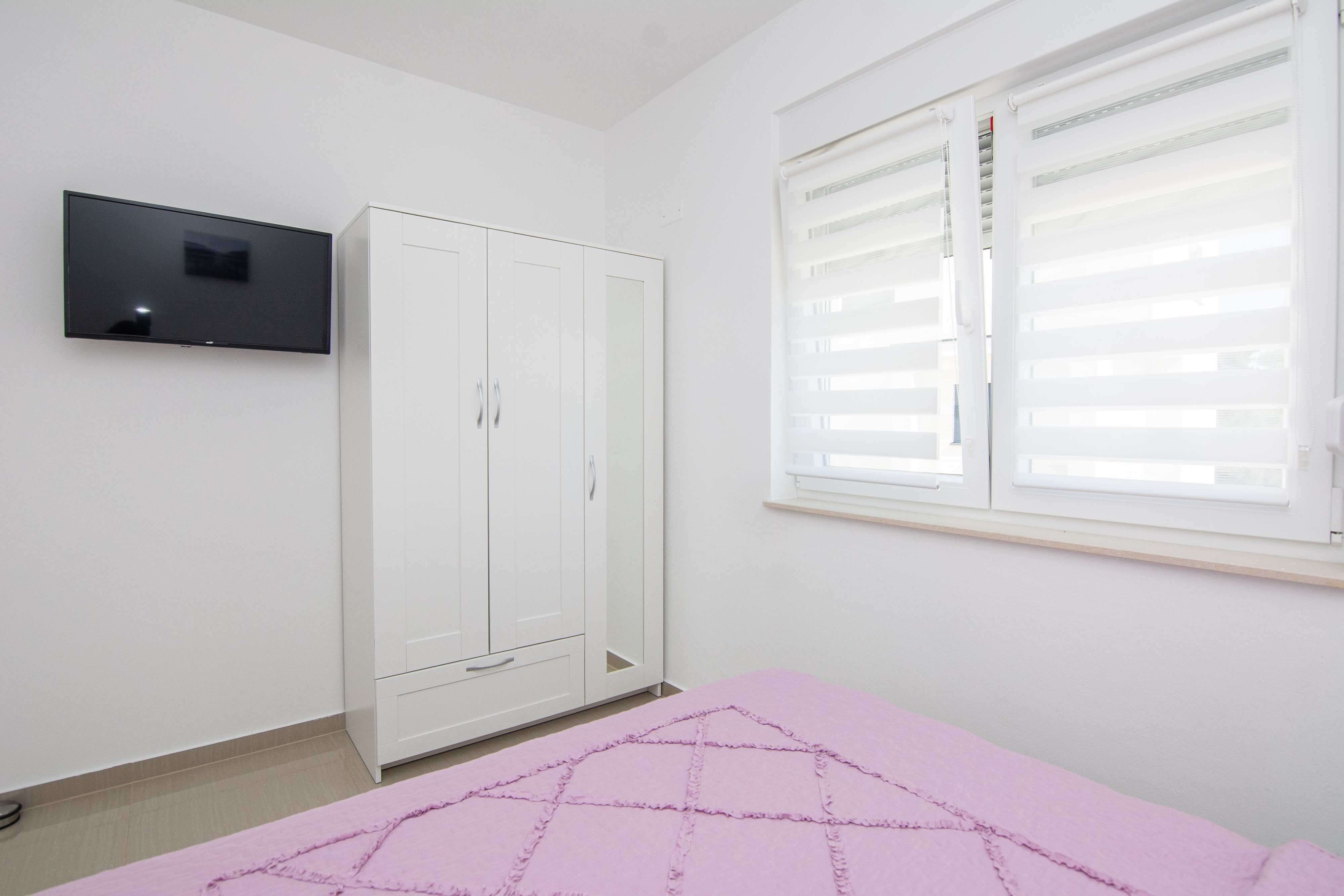 Apartament może przyjąć 8 gości. Łóżka znajdują się w sypialniach, których jest 3, oraz w pokoju dziennym, na powierzchni 90m2. Goście mają dostęp do balkonu, by korzystać z ciepłych, letnich wieczorów. W rezerwowanej kwaterze na miejscu jest pobierana kaucja (jej wysokość jest podana na stronie). WLICZONE W CENĘ: taksa pobytowa, sprzątanie końcowe, klimatyzacja, parking, internet, żelazko, deska do prasowania, suszarka do włosów. OBOWIĄZKOWE KOSZTY DODATKOWE: depozyt (200,00 € jednorazowo), dopłata za krótki termin (procent dopłaty w zalezności od liczby noclegów: 30% - 1, 20% - 2, 10% - 3). Dostępność dodatkowych usług w rezerwowanym terminie oraz ich cenę (jeśli nie jest podana) należy sprawdzić wcześniej. Za dodatowe usługi, które nie zostały uwzględnione w kalkulacji ceny, płaci się bezpośrednio właścicielowi obiektu, pod warunkiem śe gość korzysta z tych usług.