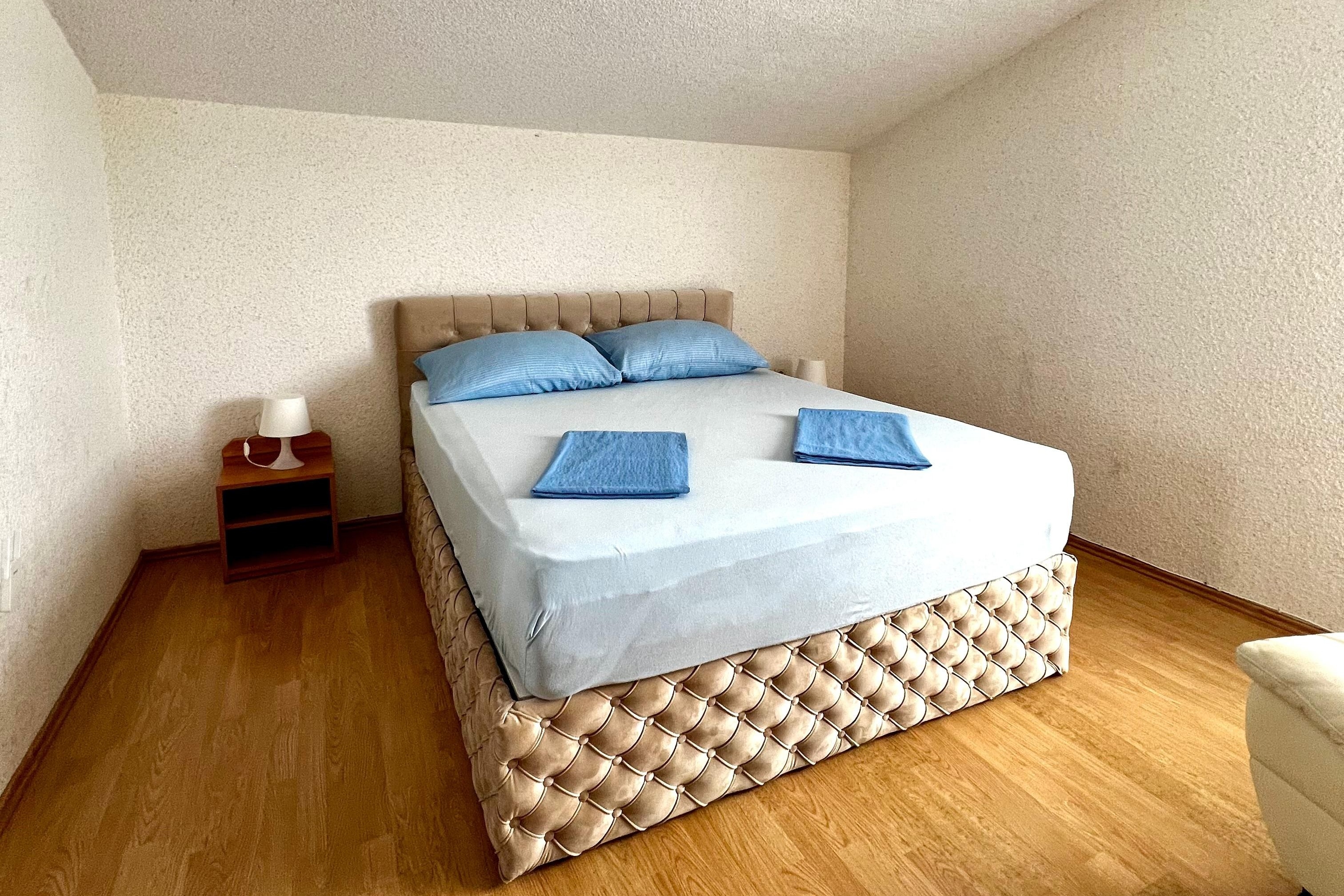 Apartament może przyjąć 6 gości. Łóżka znajdują się w sypialniach, których jest 2, oraz w pokoju dziennym, na powierzchni 130m2. Goście mają dostęp do tarasu, by korzystać z ciepłych, letnich wieczorów. Z apartamentu roztacza się widok na morze. Możliwość przygotowywania posiłków poprzez korzystanie ze wspólnego grilla. WLICZONE W CENĘ: taksa pobytowa, sprzątanie końcowe, klimatyzacja, parking, internet, pranie bielizny, łóżeczko dziecięce, suszarka do włosów. OBOWIĄZKOWE KOSZTY DODATKOWE: dopłata za krótki termin (procent dopłaty w zalezności od liczby noclegów: 30% - 1, 20% - 2, 10% - 3). Dostępność dodatkowych usług w rezerwowanym terminie oraz ich cenę (jeśli nie jest podana) należy sprawdzić wcześniej. Za dodatowe usługi, które nie zostały uwzględnione w kalkulacji ceny, płaci się bezpośrednio właścicielowi obiektu, pod warunkiem śe gość korzysta z tych usług.