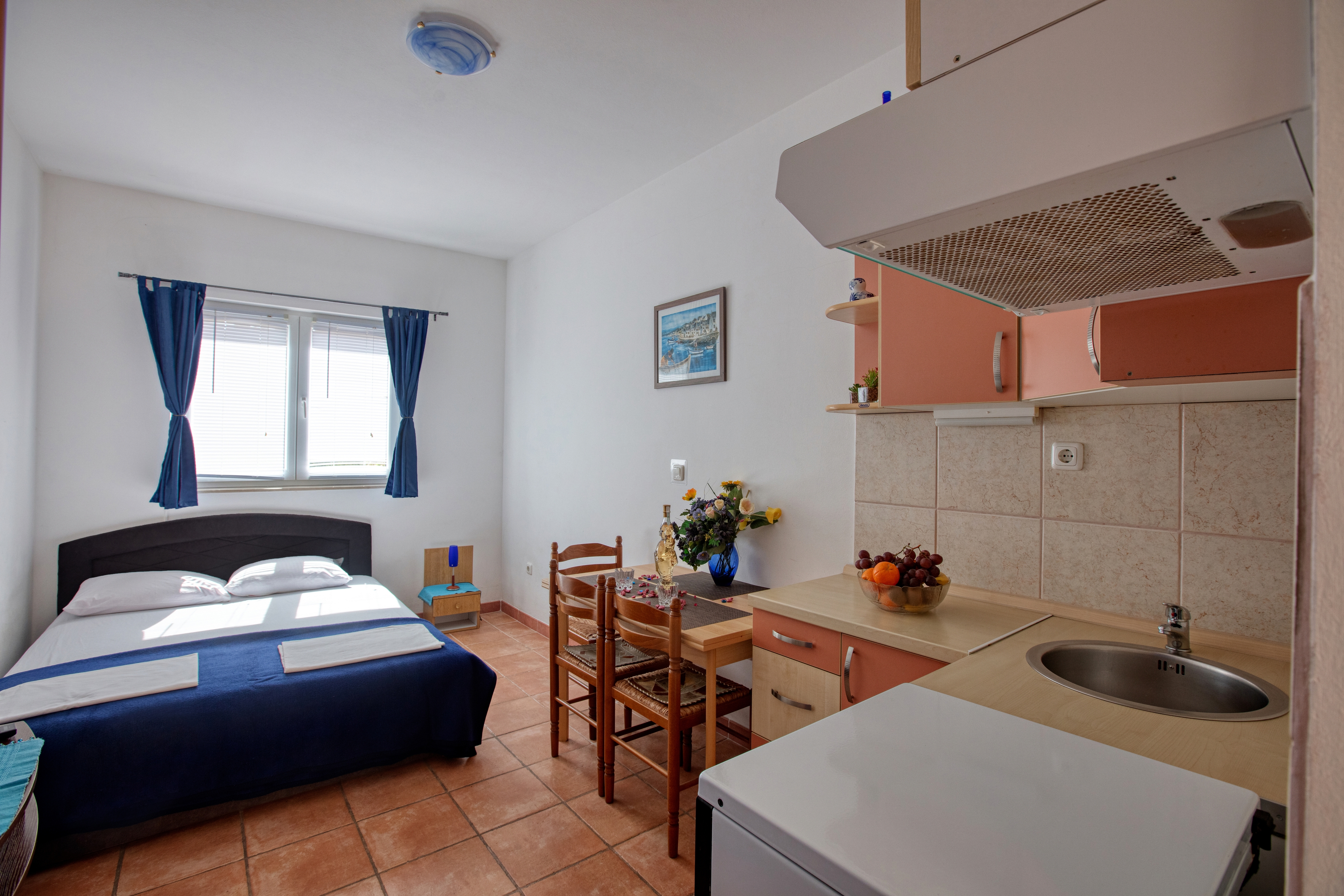Studio może przyjąć 2 gości. Łóżka znajdują się w sypialniach, których jest 1, na powierzchni 23m2. Goście mają dostęp do tarasu, by korzystać z ciepłych, letnich wieczorów. Możliwość przygotowywania posiłków poprzez korzystanie ze wspólnego grilla. W kwaterze dozwolony jest pobyt zwierzęcia domowego, za dopłatą. WLICZONE W CENĘ: taksa pobytowa, sprzątanie końcowe, klimatyzacja, parking, internet, łóżeczko dziecięce, żelazko, deska do prasowania, suszarka do włosów. NIEOBOWIĄZKOWE KOSZTY DODATKOWE: pranie bielizny (10,00 € pranie), zwierzęta domowe (10,00 € za nocleg). Dostępność dodatkowych usług w rezerwowanym terminie oraz ich cenę (jeśli nie jest podana) należy sprawdzić wcześniej. Za dodatowe usługi, które nie zostały uwzględnione w kalkulacji ceny, płaci się bezpośrednio właścicielowi obiektu, pod warunkiem śe gość korzysta z tych usług.