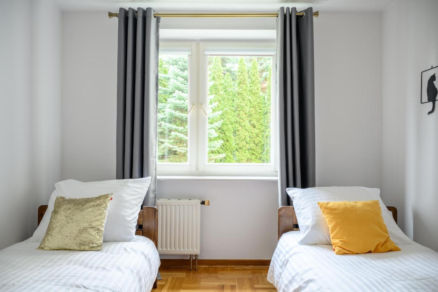 Apartament z 2 sypialniami. This spacious apartment includes 1 living room, 2 separate bedrooms and 1 bathroom with a bath and free toiletries. In the fully equipped kitchen, guests will find a stovetop, a refrigerator, a dishwasher and kitchenware. The apartment has a washing machine, a private entrance, soundproof walls as well as a terrace with garden views. The unit has 4 beds. Apartament - 6 osobowy. Powierzchnia pokoju ok.: 70 mkw.