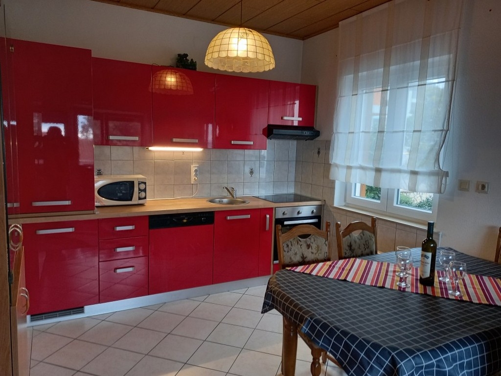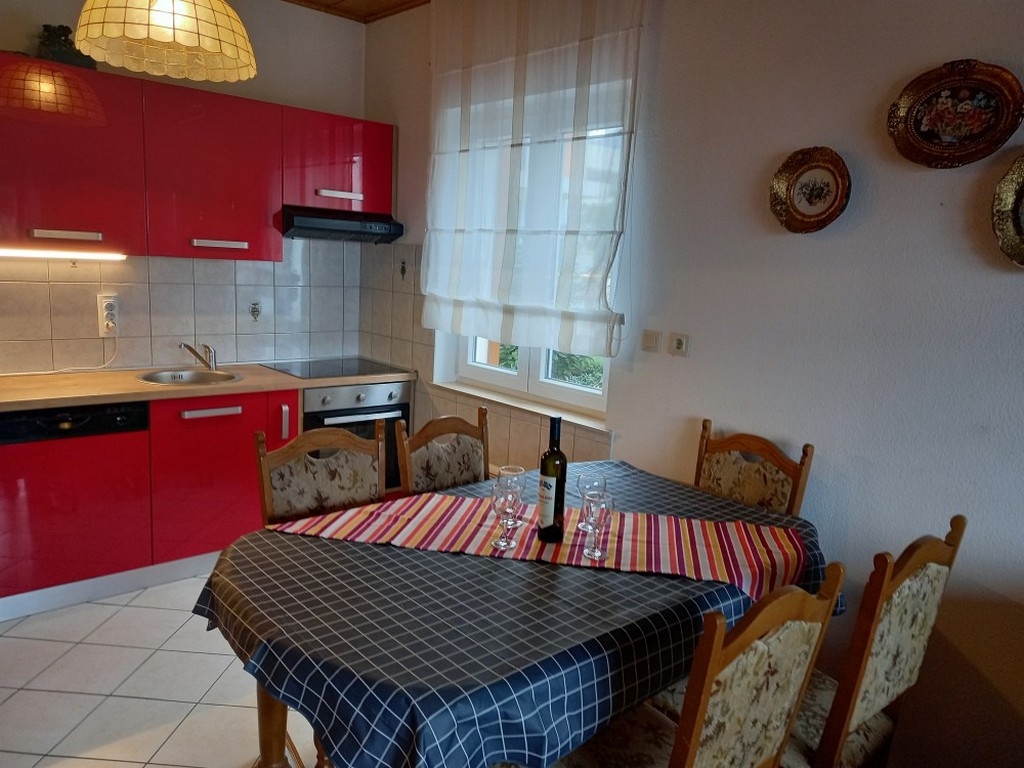 Apartament może przyjąć 5 gości. Łóżka znajdują się w sypialniach, których jest 2, oraz w pokoju dziennym, na powierzchni 54m2. Goście mają dostęp do tarasu, by korzystać z ciepłych, letnich wieczorów. Z apartamentu roztacza się widok na morze. Możliwość przygotowywania posiłków poprzez korzystanie ze wspólnego grilla. WLICZONE W CENĘ: taksa pobytowa, sprzątanie końcowe, klimatyzacja, parking, internet, żelazko, deska do prasowania, suszarka do włosów. OBOWIĄZKOWE KOSZTY DODATKOWE: dopłata za krótki termin (procent dopłaty w zalezności od liczby noclegów: 30% - 1, 20% - 2, 10% - 3). NIEOBOWIĄZKOWE KOSZTY DODATKOWE: dostawka (27,00 € za nocleg). Dostępność dodatkowych usług w rezerwowanym terminie oraz ich cenę (jeśli nie jest podana) należy sprawdzić wcześniej. Za dodatowe usługi, które nie zostały uwzględnione w kalkulacji ceny, płaci się bezpośrednio właścicielowi obiektu, pod warunkiem śe gość korzysta z tych usług.