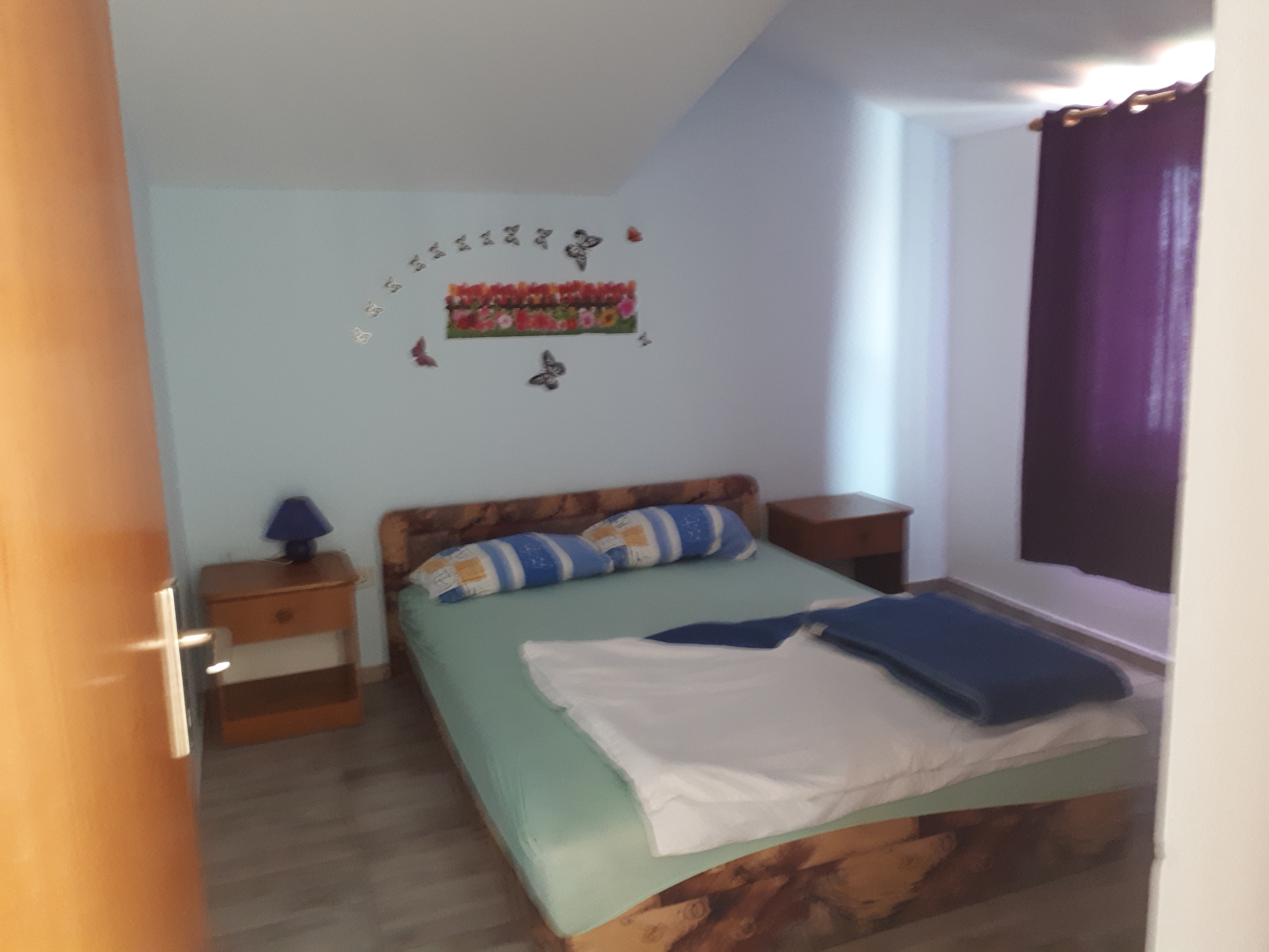 Apartament może przyjąć 6 gości. Łóżka znajdują się w sypialniach, których jest 2, oraz w pokoju dziennym, na powierzchni 50m2. Goście mają dostęp do tarasu, by korzystać z ciepłych, letnich wieczorów. Z apartamentu roztacza się widok na morze. Możliwość przygotowywania posiłków poprzez korzystanie ze wspólnego grilla. W kwaterze dozwolony jest pobyt zwierzęcia domowego, za dopłatą. WLICZONE W CENĘ: taksa pobytowa, sprzątanie końcowe, klimatyzacja, parking, internet, łóżeczko dziecięce, żelazko, deska do prasowania, suszarka do włosów. OBOWIĄZKOWE KOSZTY DODATKOWE: dopłata za krótki termin (procent dopłaty w zalezności od liczby noclegów: 30% - 1, 20% - 2, 10% - 3). NIEOBOWIĄZKOWE KOSZTY DODATKOWE: zwierzęta domowe (10,00 € za nocleg). Dostępność dodatkowych usług w rezerwowanym terminie oraz ich cenę (jeśli nie jest podana) należy sprawdzić wcześniej. Za dodatowe usługi, które nie zostały uwzględnione w kalkulacji ceny, płaci się bezpośrednio właścicielowi obiektu, pod warunkiem śe gość korzysta z tych usług.