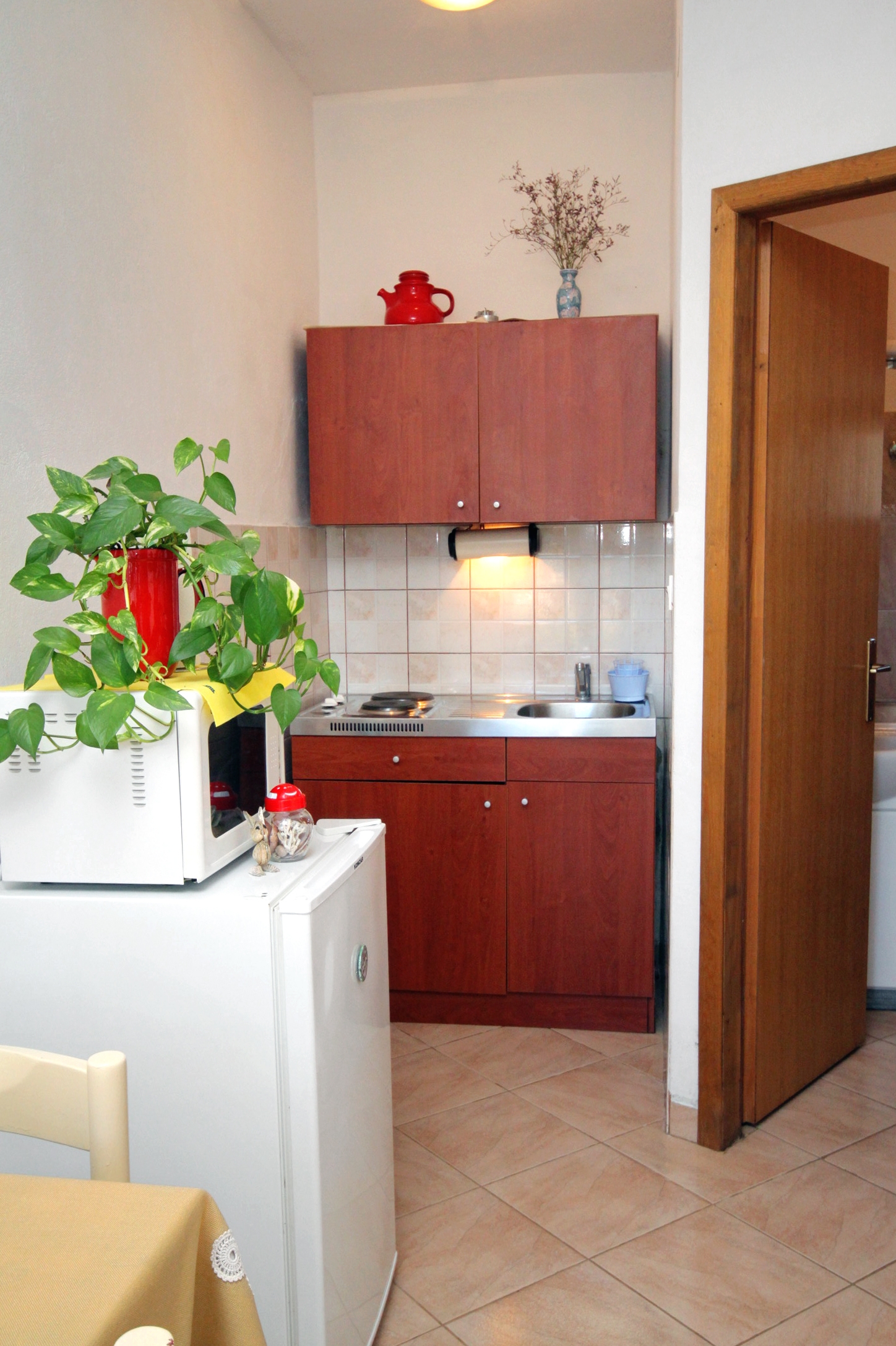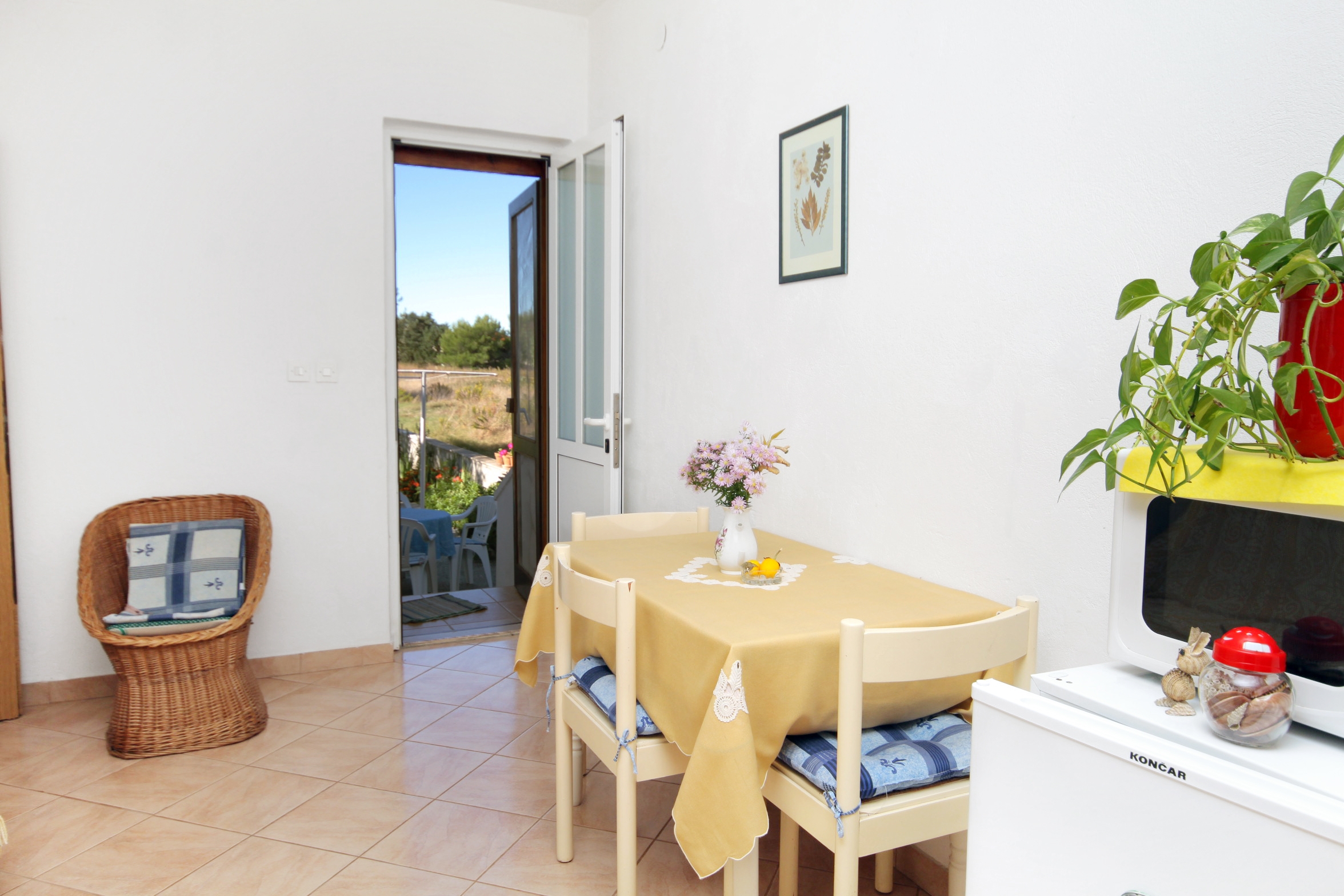 Apartament może przyjąć 4 gości. Łóżka znajdują się w sypialniach, których jest 1, oraz w pokoju dziennym, na powierzchni 29m2. Goście mają dostęp do tarasu, by korzystać z ciepłych, letnich wieczorów. Możliwość przygotowywania posiłków poprzez korzystanie ze wspólnego grilla. WLICZONE W CENĘ: taksa pobytowa, sprzątanie końcowe, klimatyzacja, parking, internet, łódź, deska do prasowania, suszarka do włosów. OBOWIĄZKOWE KOSZTY DODATKOWE: dopłata za krótki termin (procent dopłaty w zalezności od liczby noclegów: 30% - 1, 20% - 2, 10% - 3). NIEOBOWIĄZKOWE KOSZTY DODATKOWE: miejsce do cumowania łodzi (15,00 € za nocleg). Dostępność dodatkowych usług w rezerwowanym terminie oraz ich cenę (jeśli nie jest podana) należy sprawdzić wcześniej. Za dodatowe usługi, które nie zostały uwzględnione w kalkulacji ceny, płaci się bezpośrednio właścicielowi obiektu, pod warunkiem śe gość korzysta z tych usług.