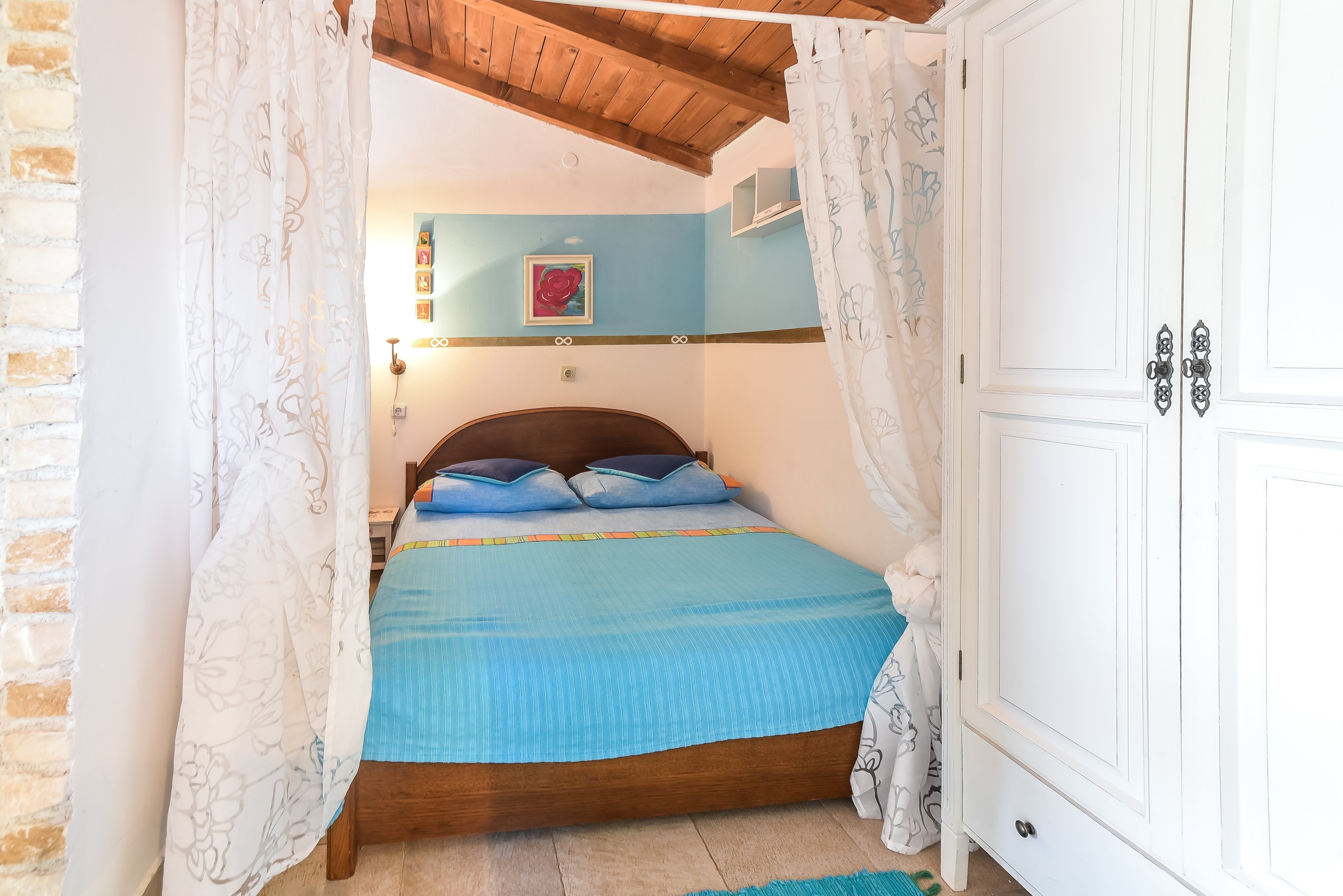 Studio może przyjąć 2 gości. Łóżka znajdują się w sypialniach, których jest 1, na powierzchni 22m2. Goście mają dostęp do tarasu, by korzystać z ciepłych, letnich wieczorów. Możliwość przygotowywania posiłków poprzez korzystanie ze wspólnego grilla. WLICZONE W CENĘ: taksa pobytowa, sprzątanie końcowe, parking, internet, łóżeczko dziecięce, żelazko, deska do prasowania, suszarka do włosów, parasol, 1 łóżeczko dziecięce (zawarte w cenie). OBOWIĄZKOWE KOSZTY DODATKOWE: dopłata za krótki termin (procent dopłaty w zalezności od liczby noclegów: 30% - 1, 20% - 2, 10% - 3). NIEOBOWIĄZKOWE KOSZTY DODATKOWE: klimatyzacja (10,00 € za nocleg), pranie bielizny (5,00 € pranie), miejsce do cumowania łodzi (5,00 € za nocleg). Dostępność dodatkowych usług w rezerwowanym terminie oraz ich cenę (jeśli nie jest podana) należy sprawdzić wcześniej. Za dodatowe usługi, które nie zostały uwzględnione w kalkulacji ceny, płaci się bezpośrednio właścicielowi obiektu, pod warunkiem śe gość korzysta z tych usług.